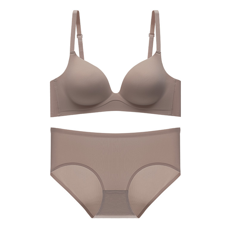 광택 있는 외부 확장형 A컵 브라, 와이어 없음, 작은 가슴을 모아주는 두꺼운 8CM 빵컵 속옷, 아름다운 등 라인 브라 세트