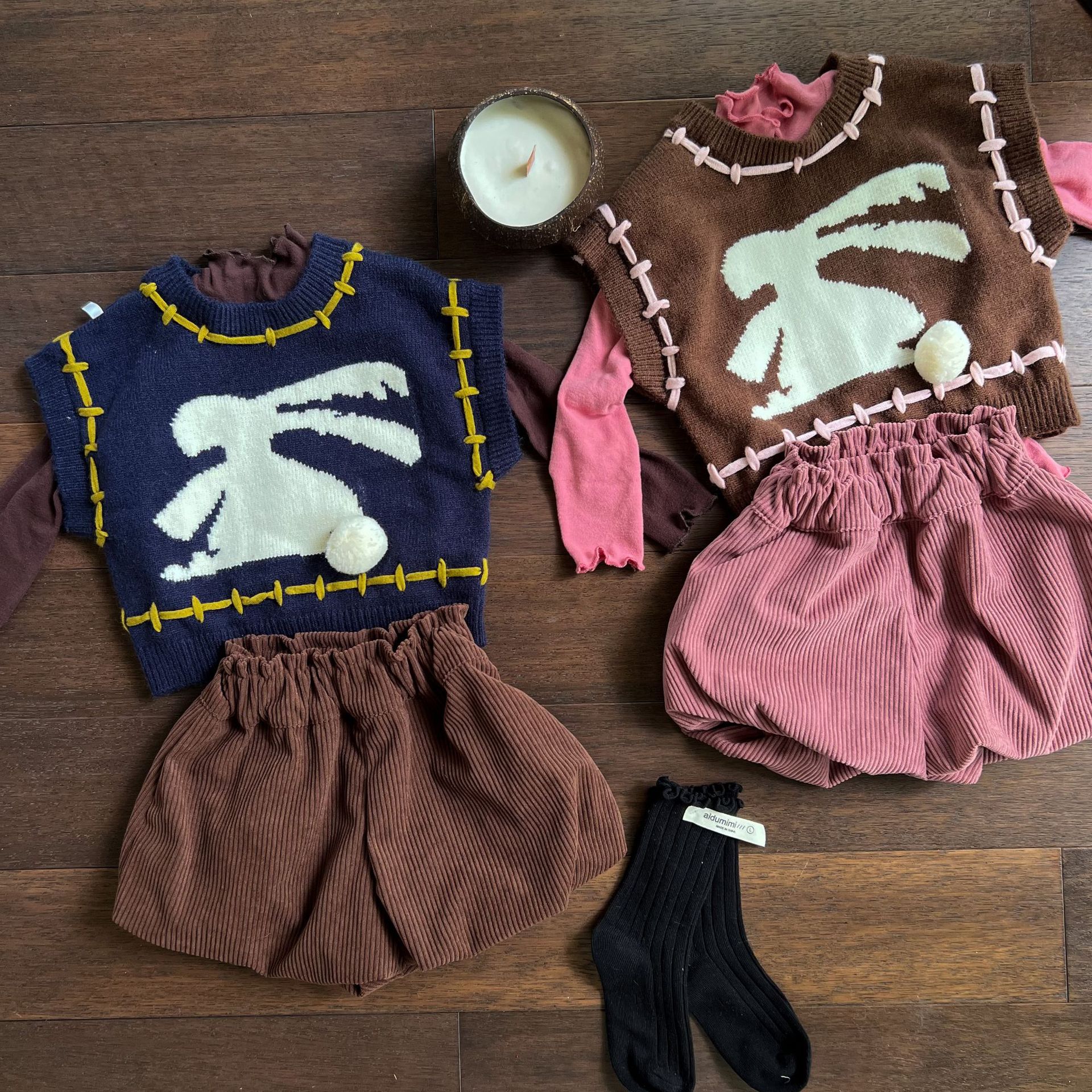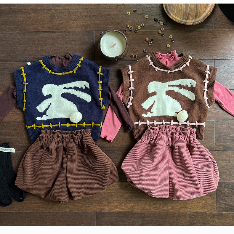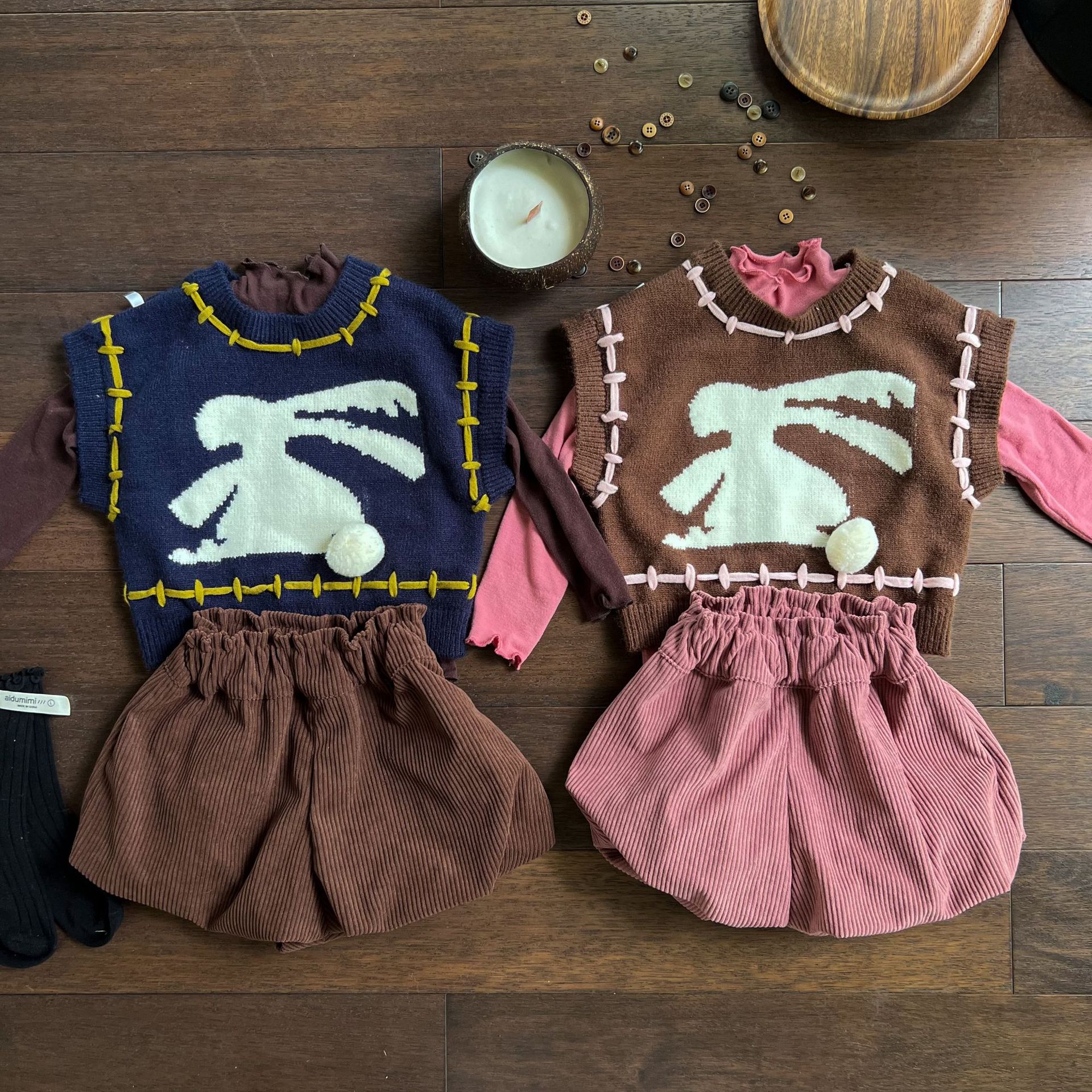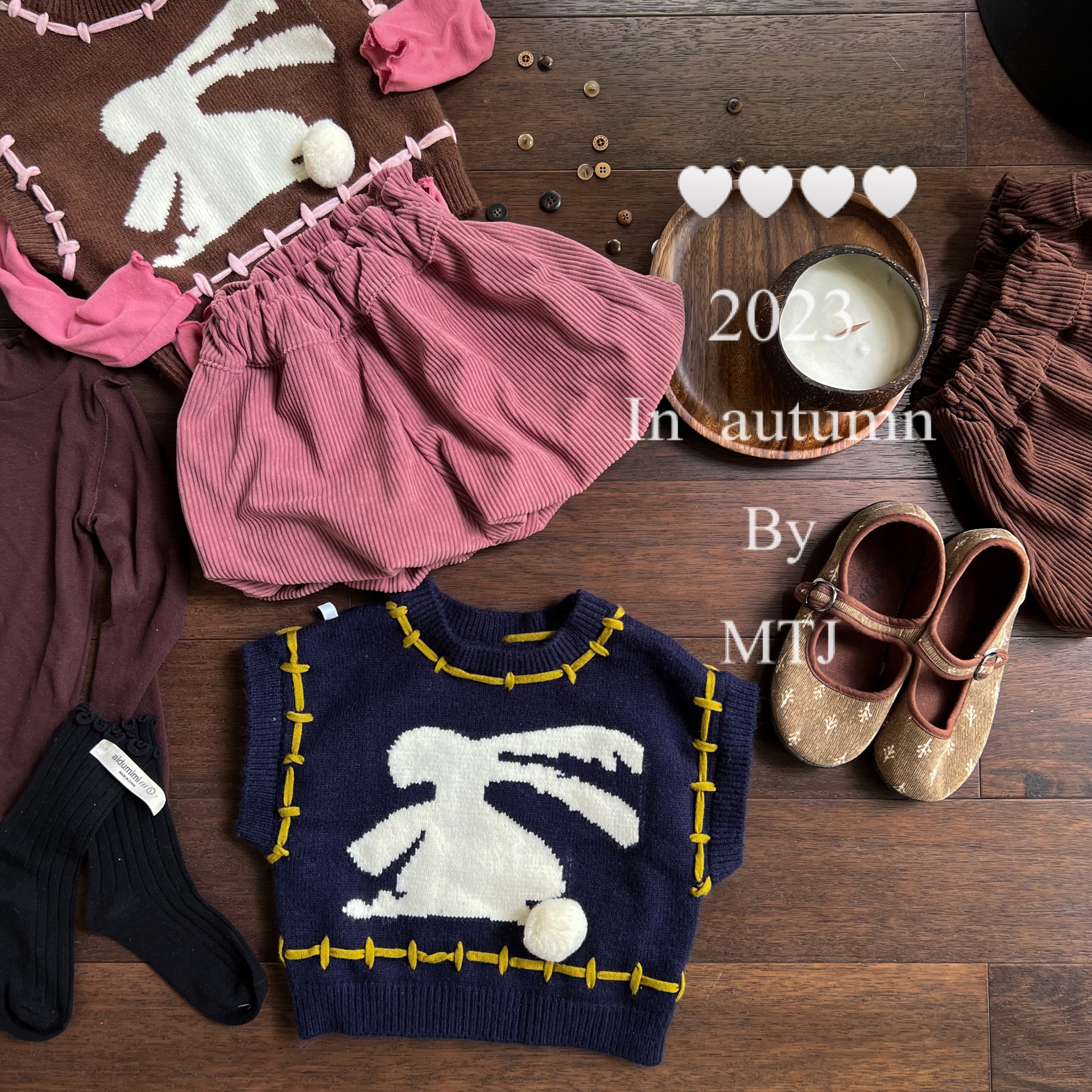밀 필드 시즌 2023 가을 새로운 한국 어린이 만화 토끼 조끼 소년과 소녀 귀여운 양모 조끼스토어 가기