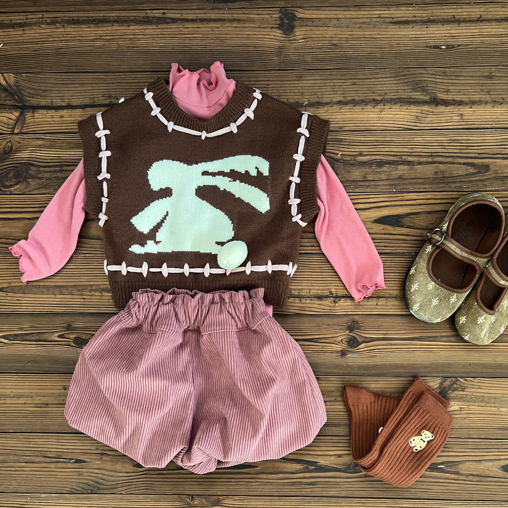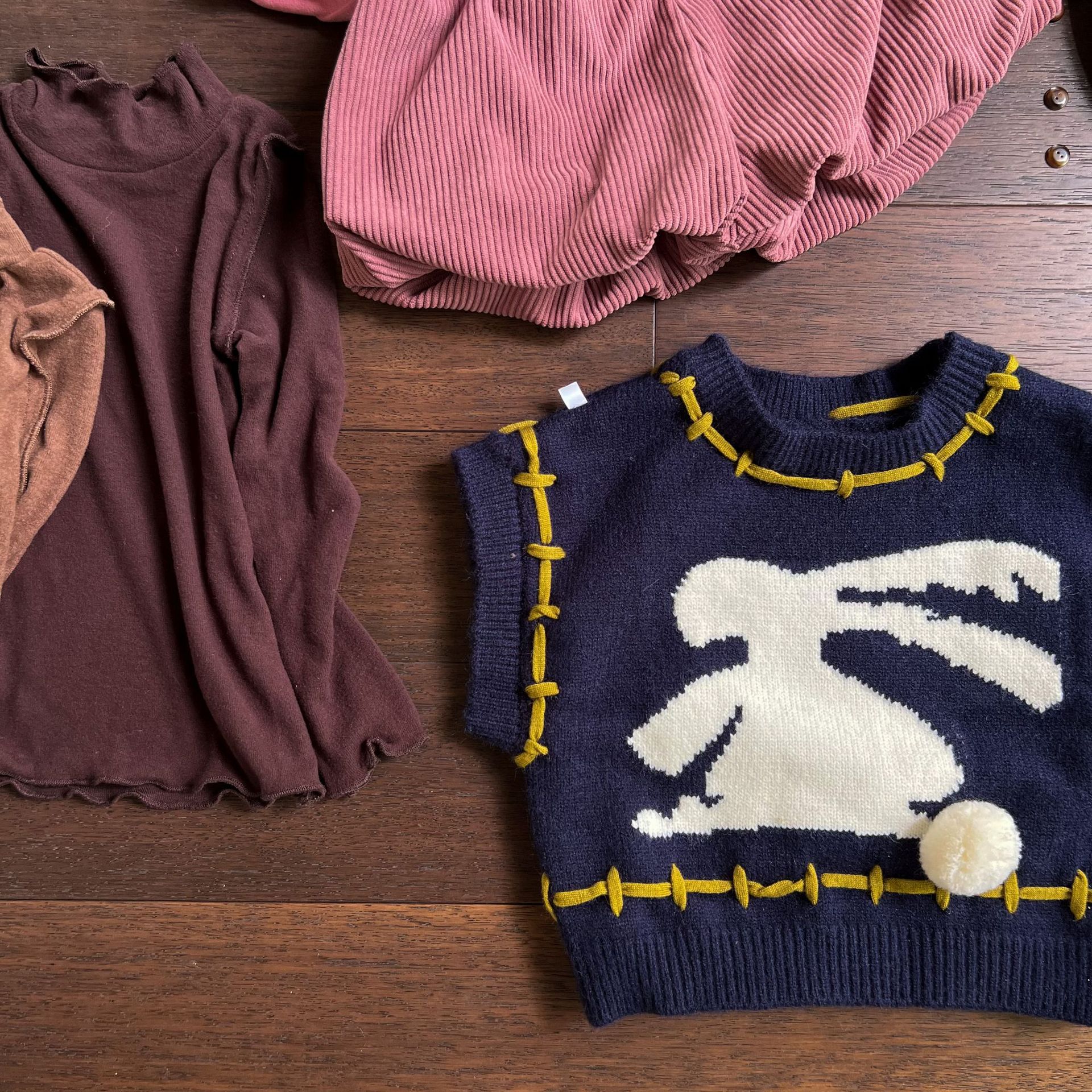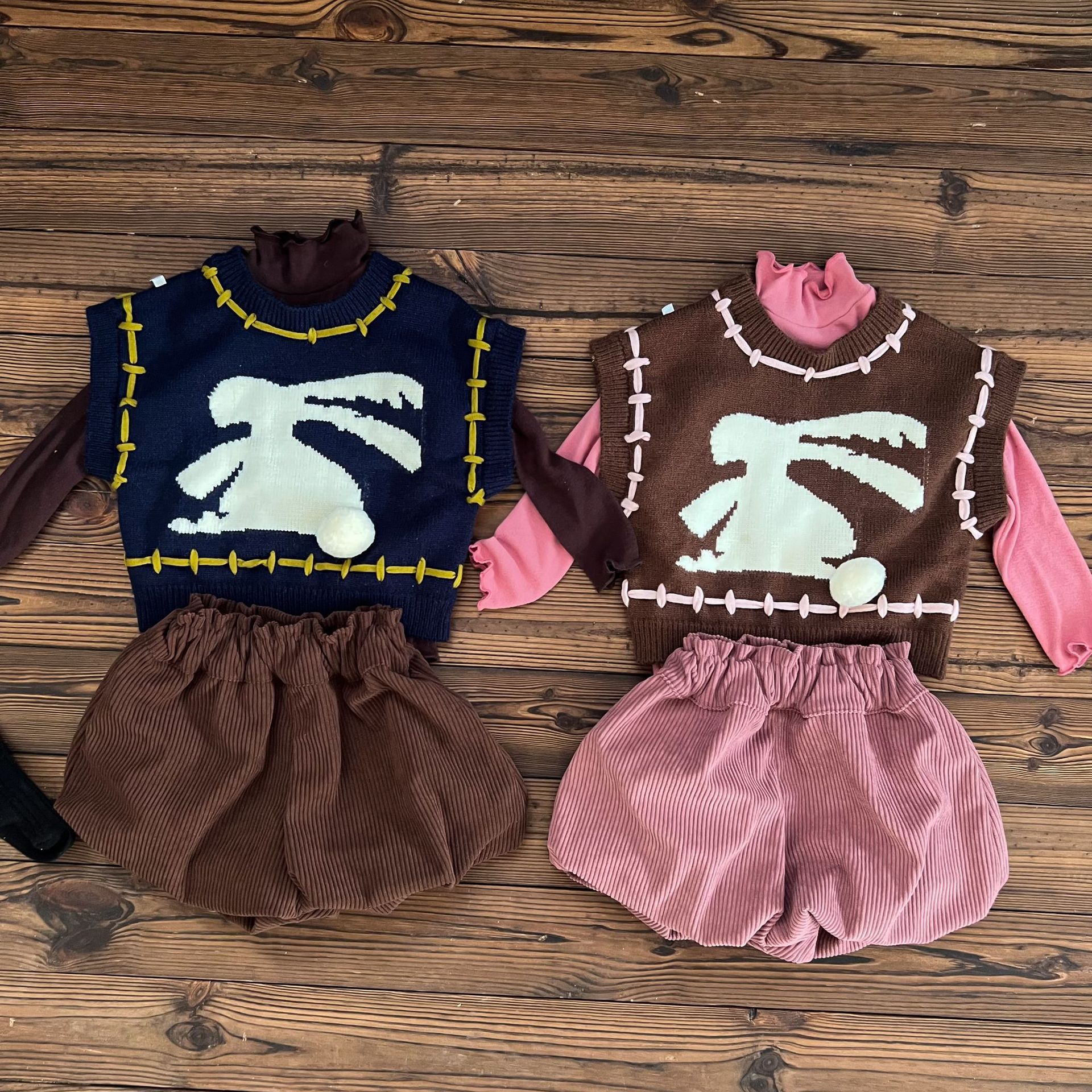 밀 필드 시즌 2023 가을 새로운 한국 어린이 만화 토끼 조끼 소년과 소녀 귀여운 양모 조끼스토어 가기