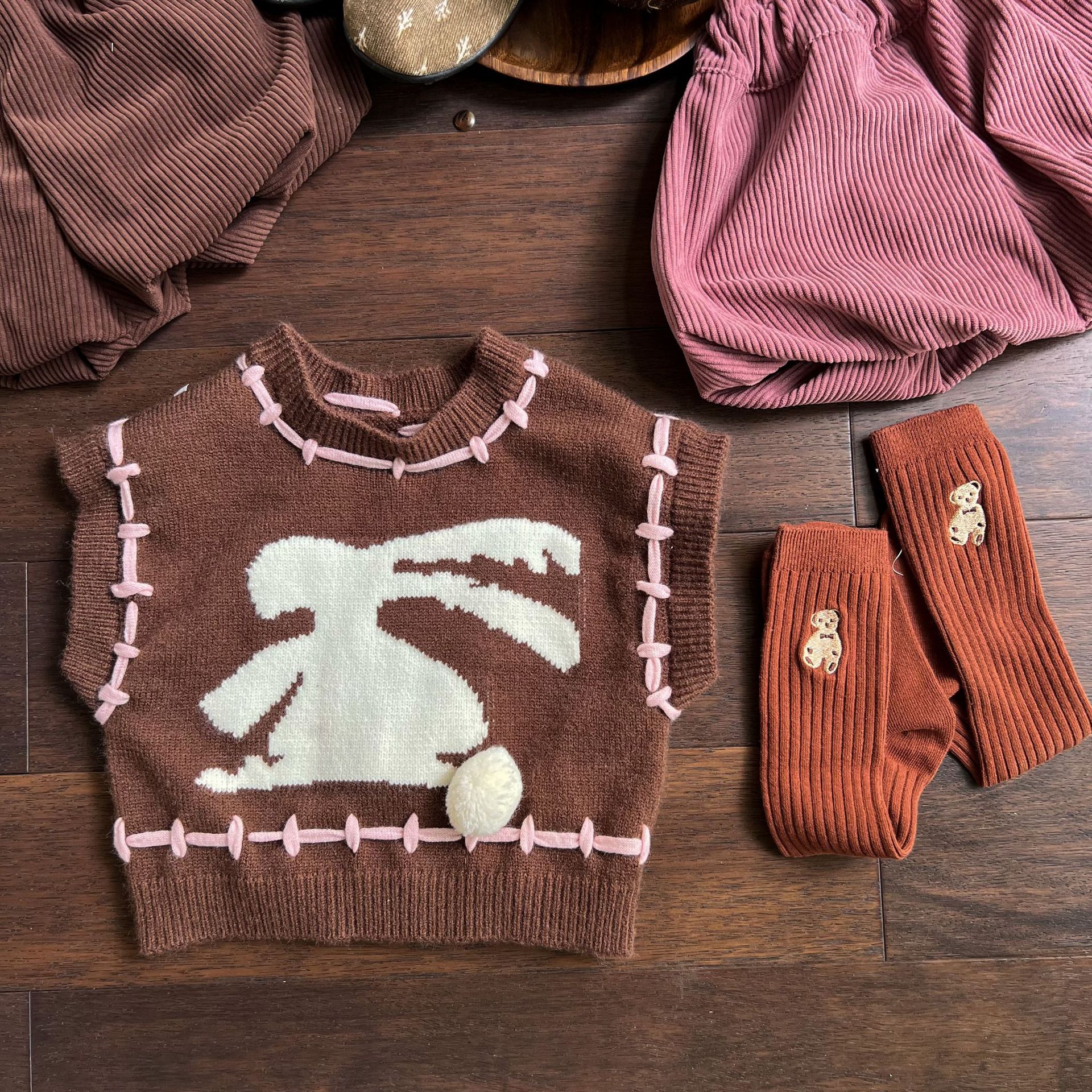 밀 필드 시즌 2023 가을 새로운 한국 어린이 만화 토끼 조끼 소년과 소녀 귀여운 양모 조끼