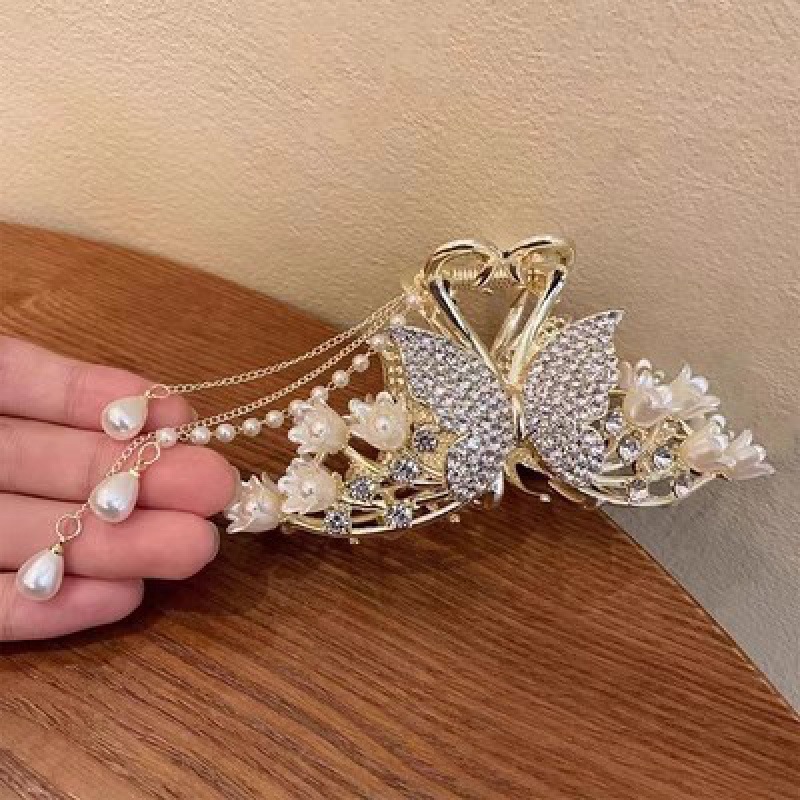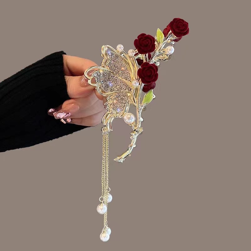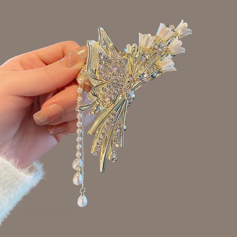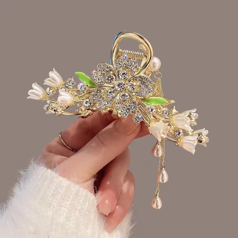 여성용 헤어핀 신상품 고대풍 프린지 메탈 꽃 모양 클립 대형 뒷머리 묶음용 우아한 샤크클립 헤어 액세서리스토어 가기