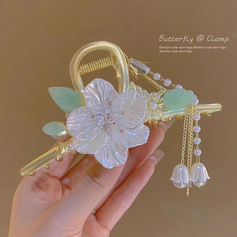 여성용 헤어핀 신상품 고대풍 프린지 메탈 꽃 모양 클립 대형 뒷머리 묶음용 우아한 샤크클립 헤어 액세서리