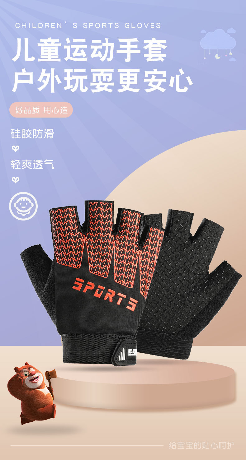 남녀 어린이 여름용 사이클링 장갑, 아이스 실크 통기성 어린이 스케이트보드 밸런스 바이크 라이딩 미끄럼 방지 반손가락 스포츠 장갑스토어 가기
