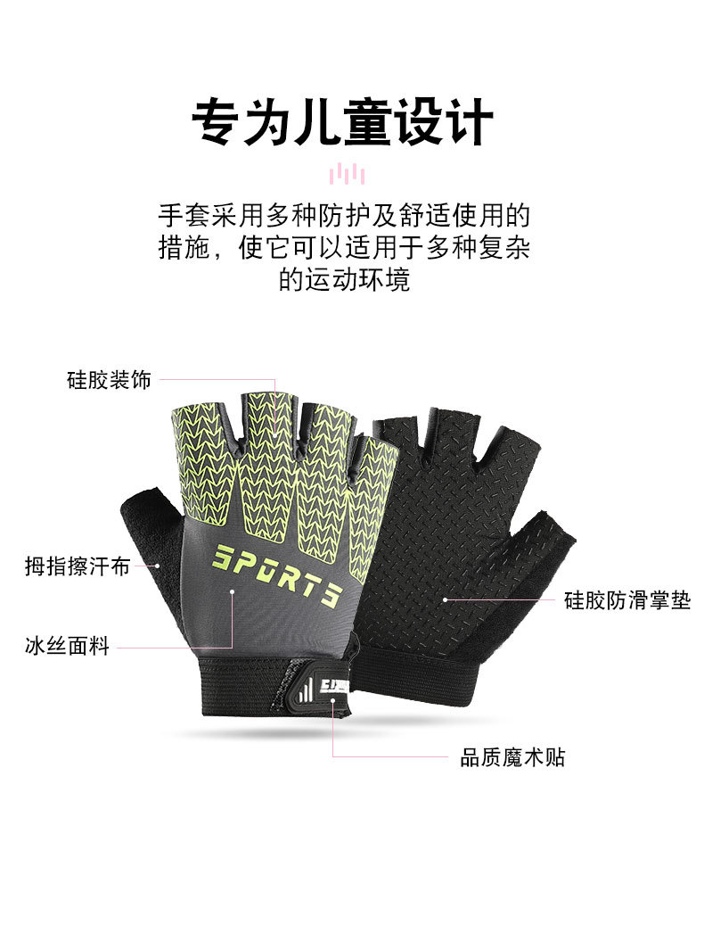 남녀 어린이 여름용 사이클링 장갑, 아이스 실크 통기성 어린이 스케이트보드 밸런스 바이크 라이딩 미끄럼 방지 반손가락 스포츠 장갑