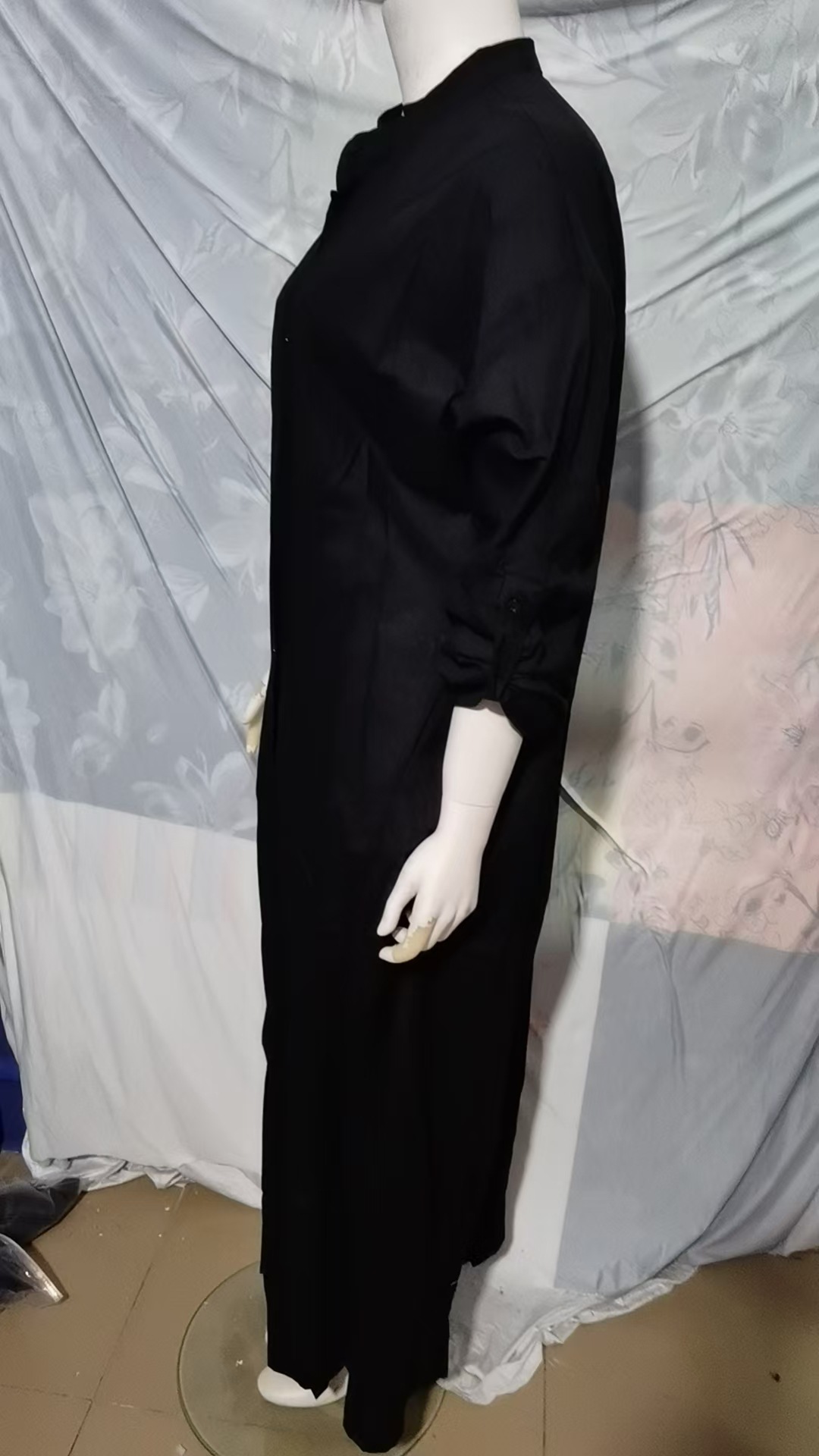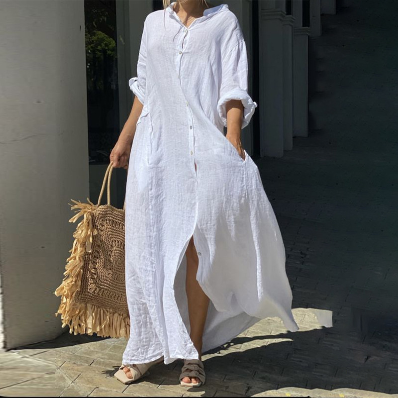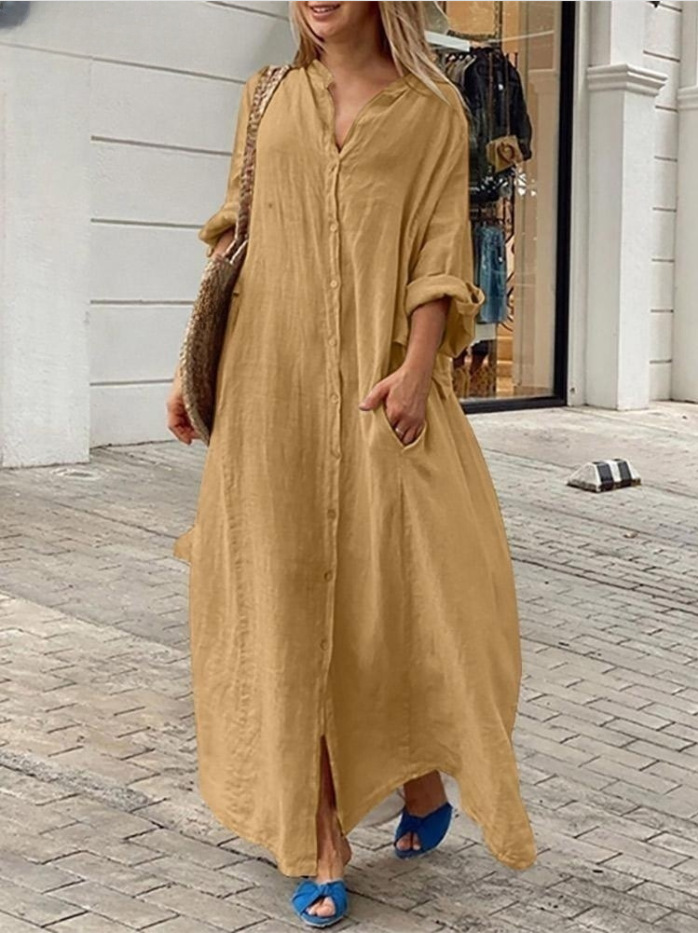 2023 유럽과 미국의 아마존 캐주얼 포켓 셔츠 칼라 긴 원피스 캐주얼 코튼 린넨 플러스 사이즈 원피스 원피스스토어 가기