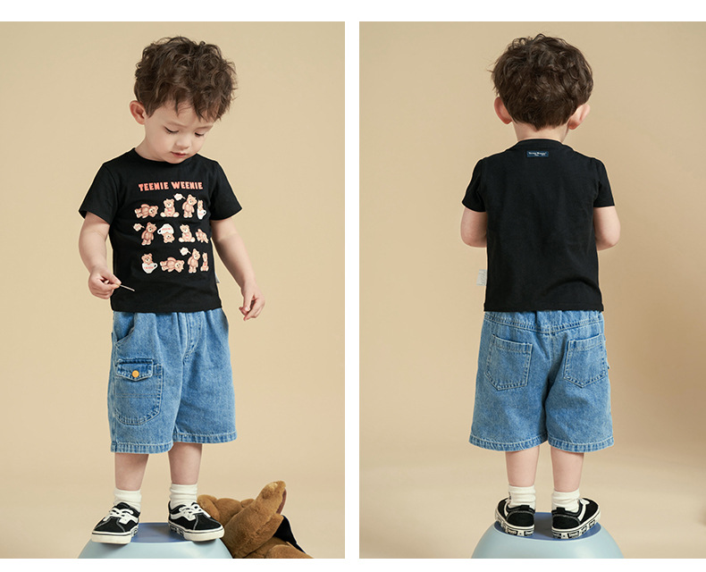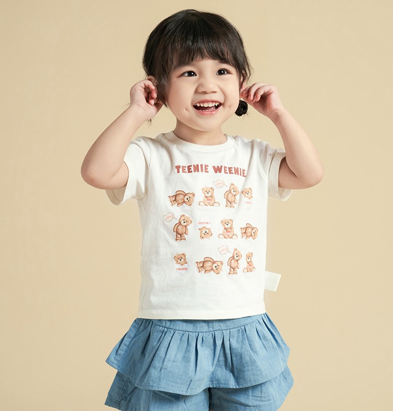 TW 베어 친자복 여름 신작 프린트 라운드 넥 반팔 티셔츠 TKRA226392K 귀여운 트렌디 브랜드스토어 가기