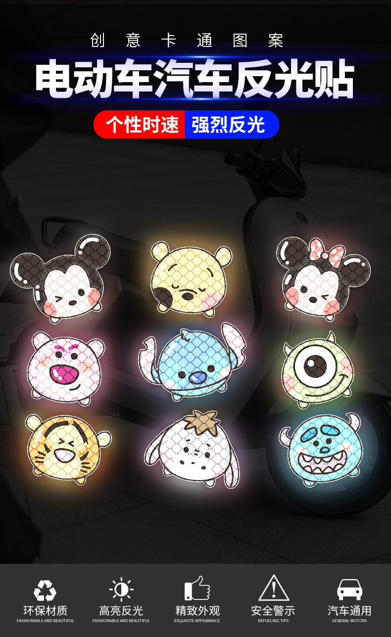 만화 오토바이 반사 스티커 전기 자동차 장식 바디 스크래치 커버 장식 스티커 귀여운 개인화 된 헬멧 스티커