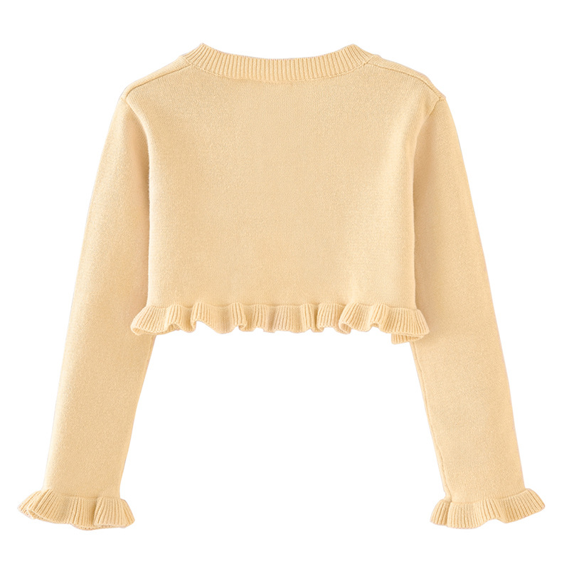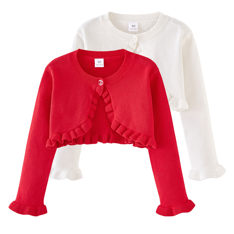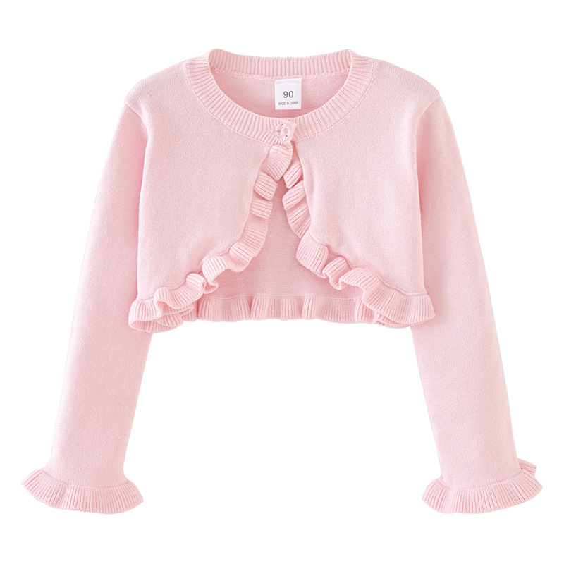 2026년 신상 봄가을 프릴 장식 아동 니트 가디건 숄 코트 면 소재 여아 스웨터 가디건 도매스토어 가기