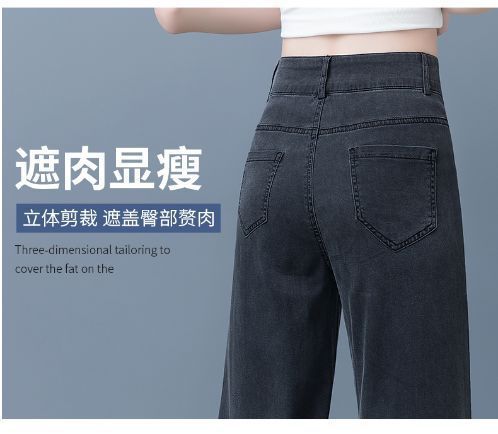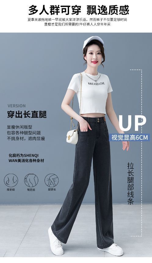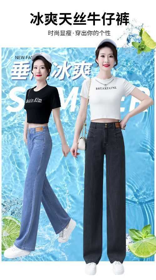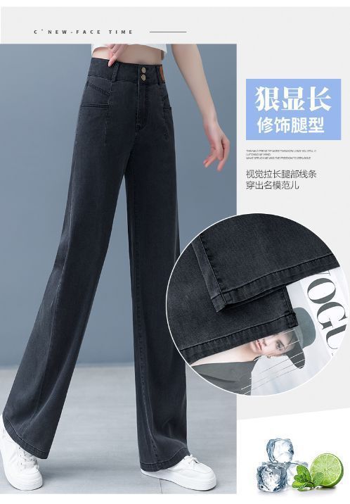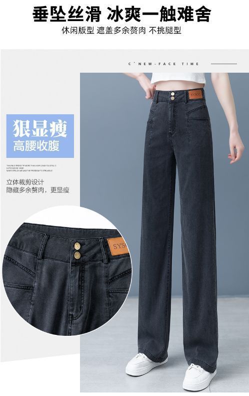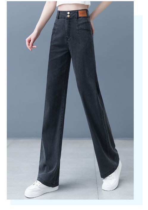 여성용 아이스 실크 와이드 레그 청바지 2026 새로운 하이 웨이스트 슬림 바지 여름 얇은 텐셀 드레이프 스트레이트 바지
