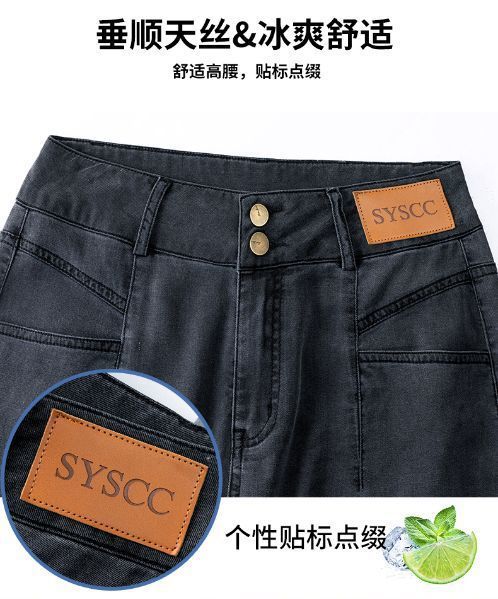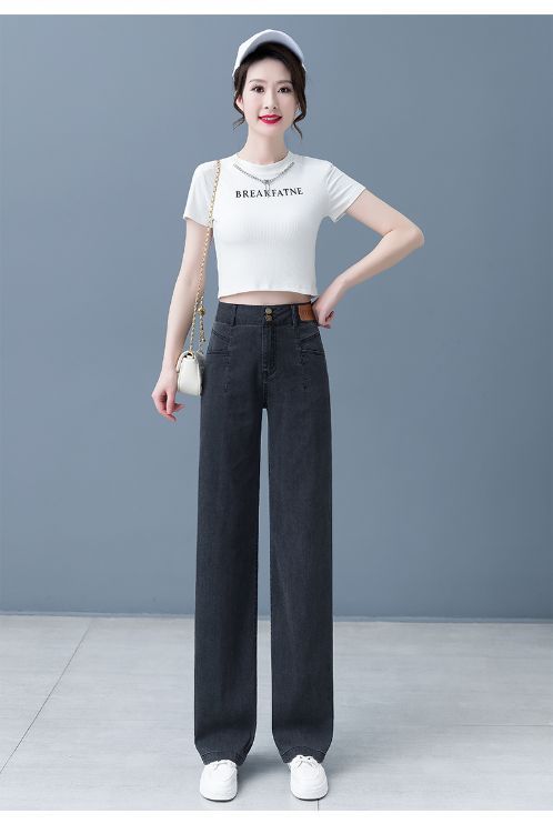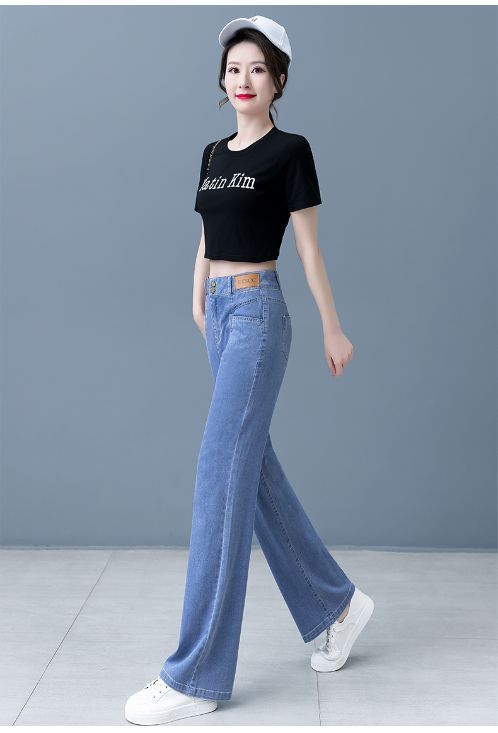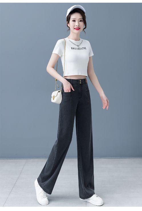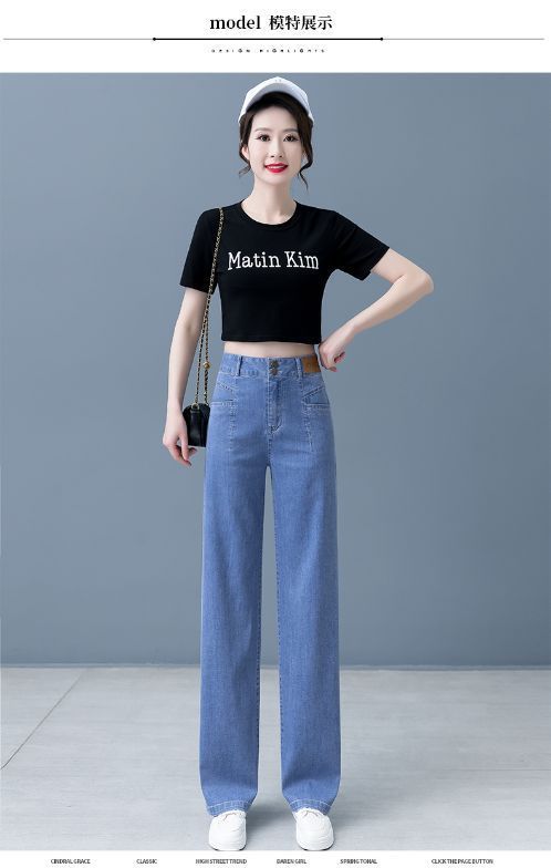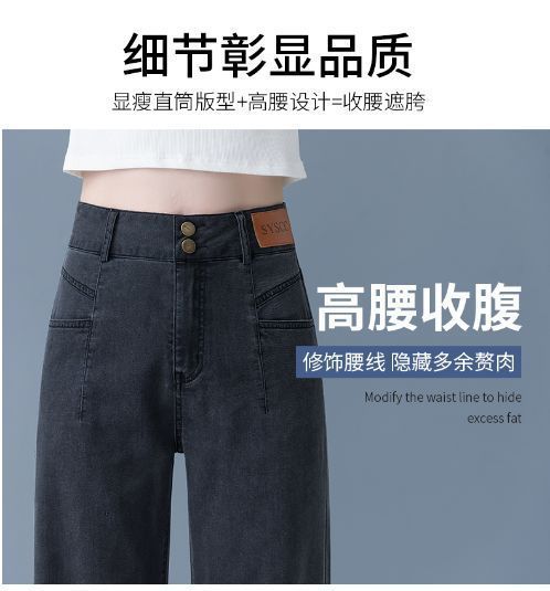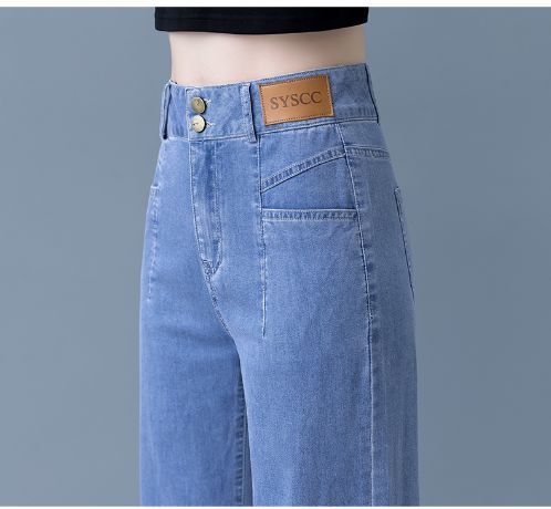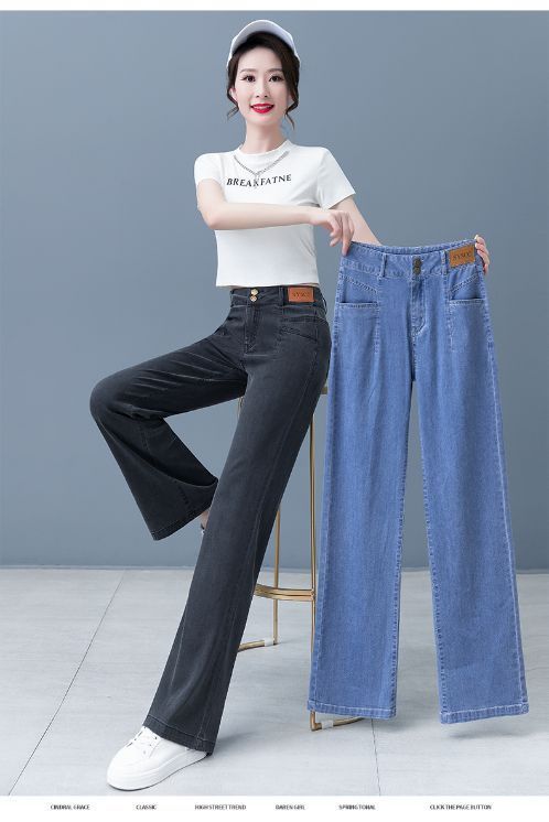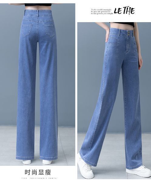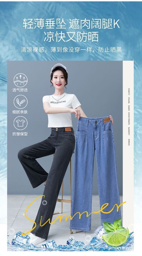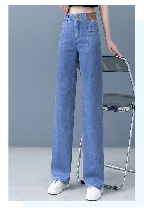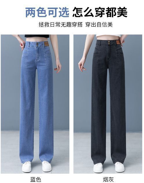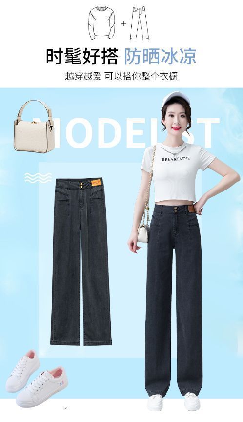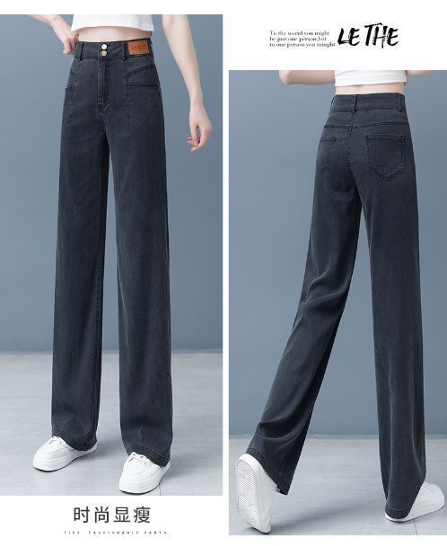 여성용 아이스 실크 와이드 레그 청바지 2026 새로운 하이 웨이스트 슬림 바지 여름 얇은 텐셀 드레이프 스트레이트 바지스토어 가기