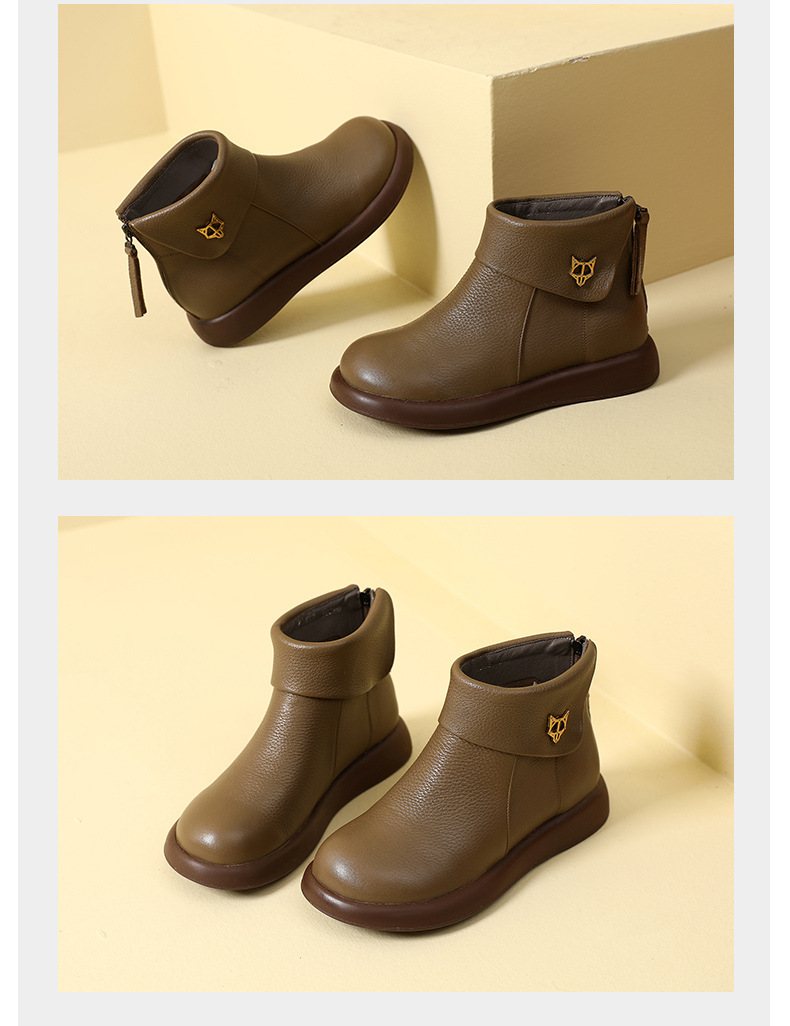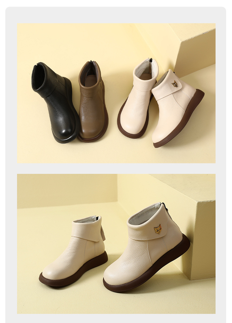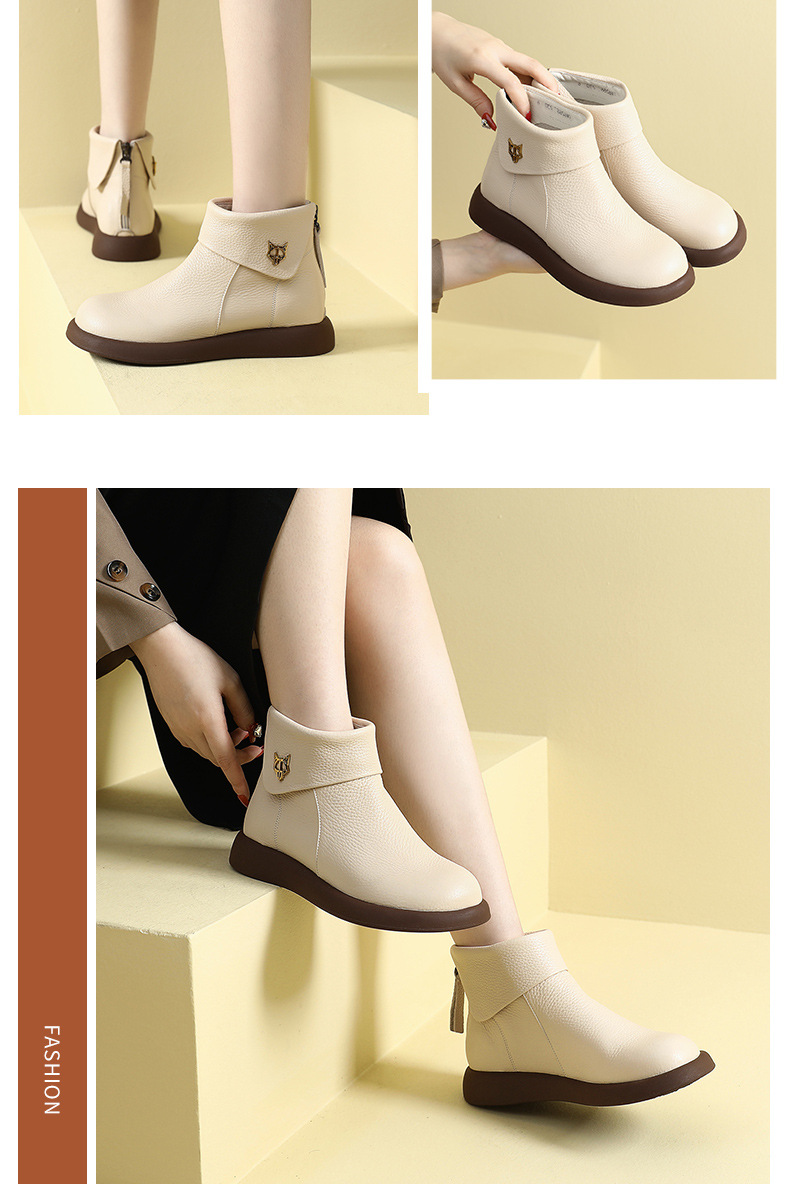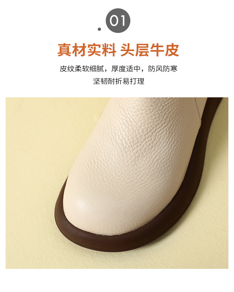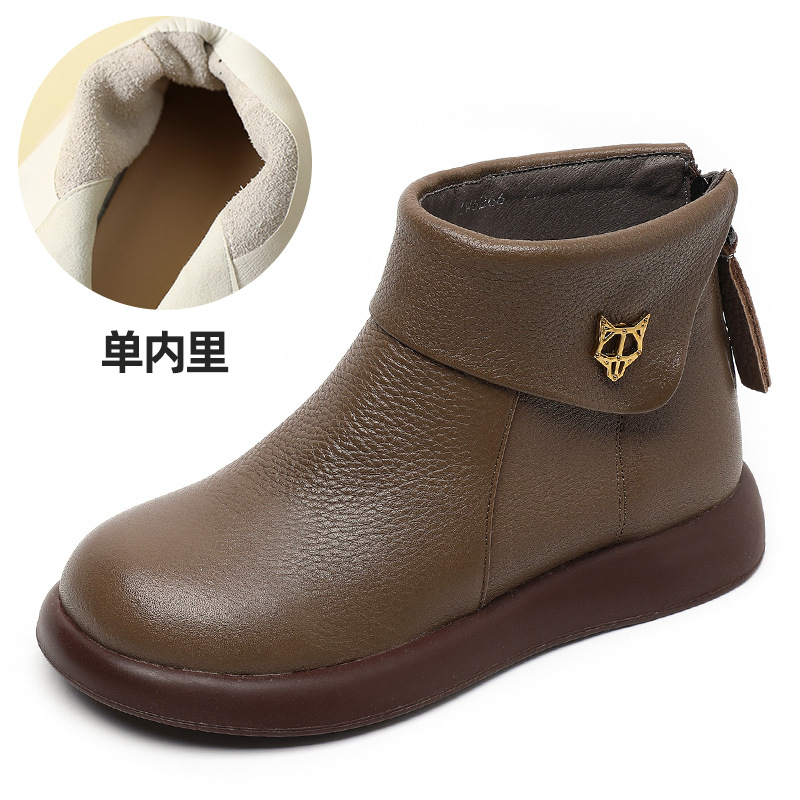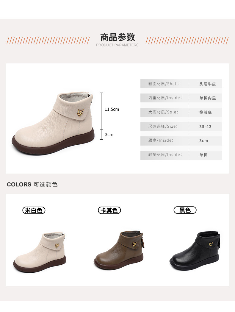 2023 가을과 겨울 새로운 1 층 소가죽 짧은 부츠 여성용 부드러운 가죽 부드러운 바닥 마틴 부츠 캐주얼 복고풍 라운드 헤드 대형 부츠스토어 가기