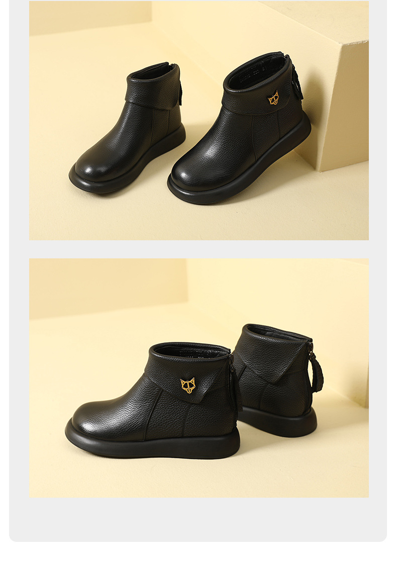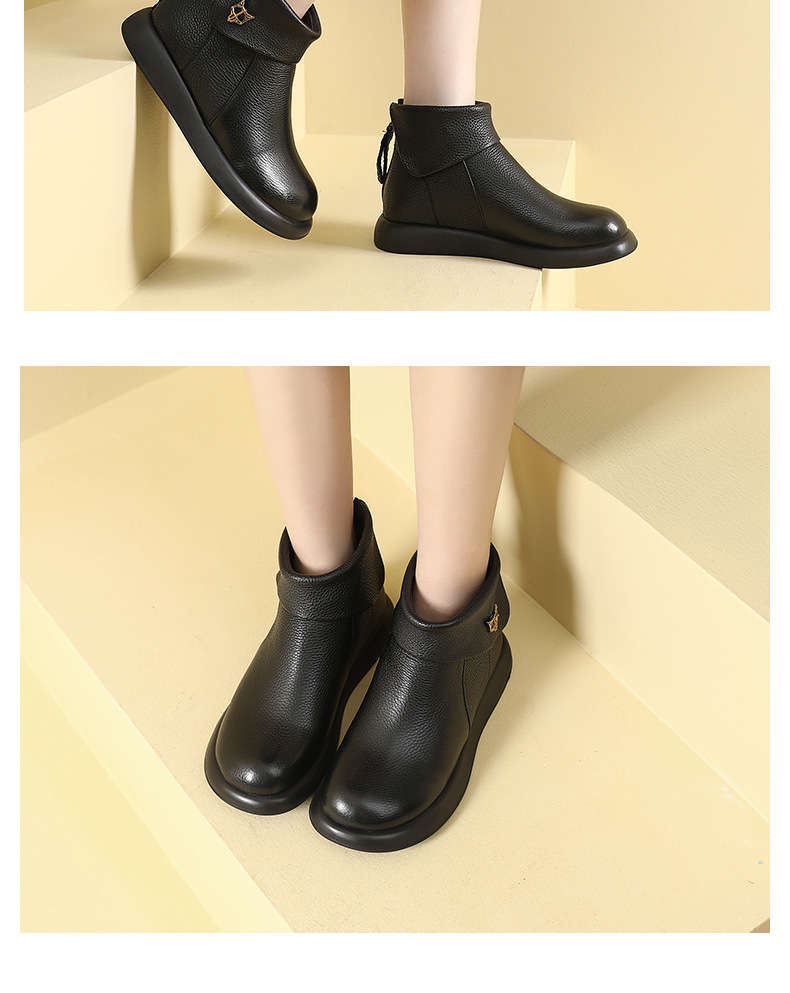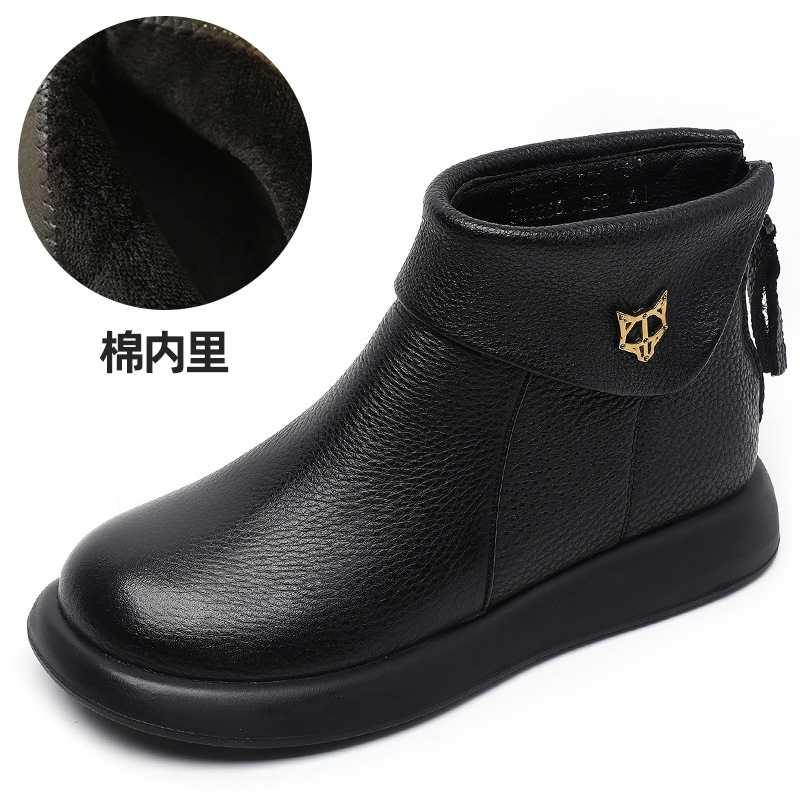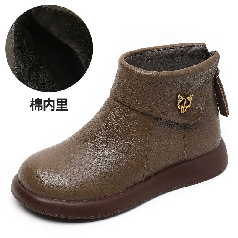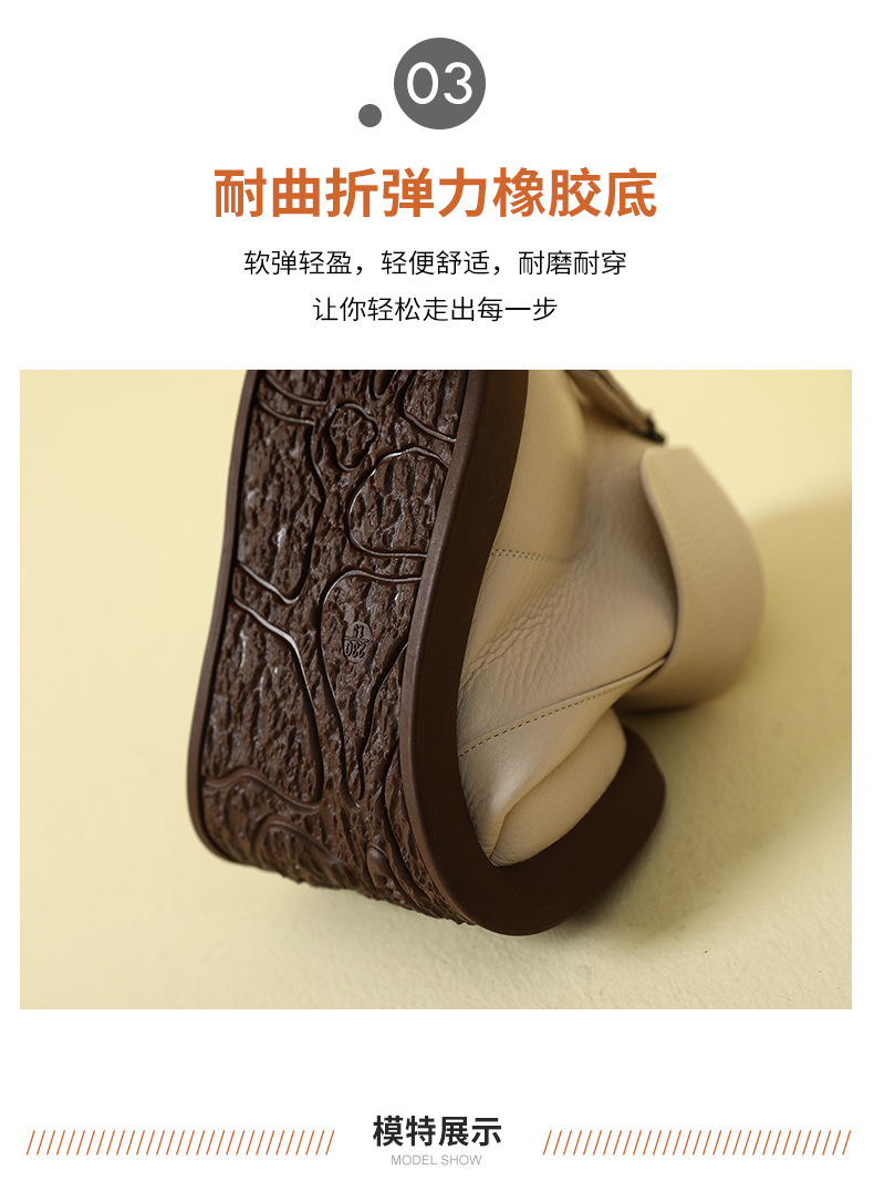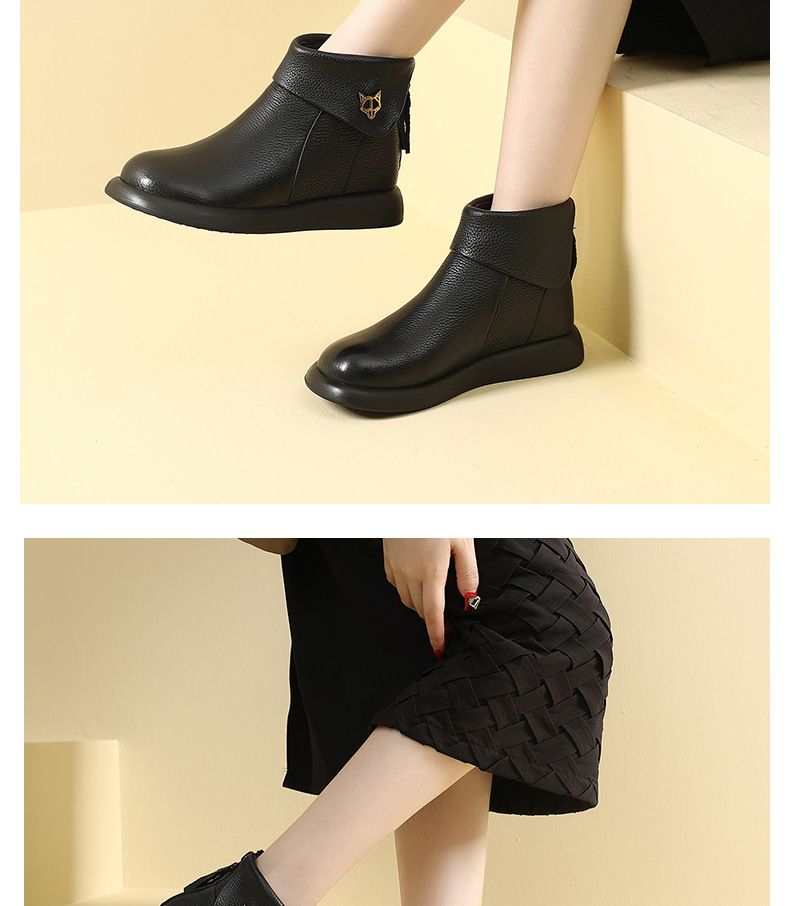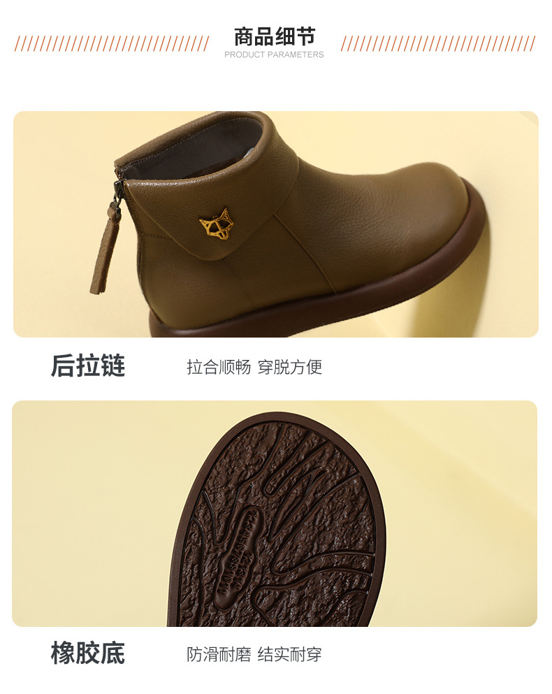 2023 가을과 겨울 새로운 1 층 소가죽 짧은 부츠 여성용 부드러운 가죽 부드러운 바닥 마틴 부츠 캐주얼 복고풍 라운드 헤드 대형 부츠스토어 가기