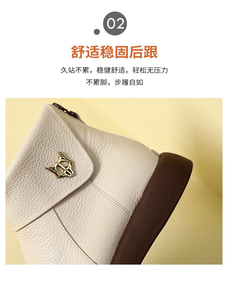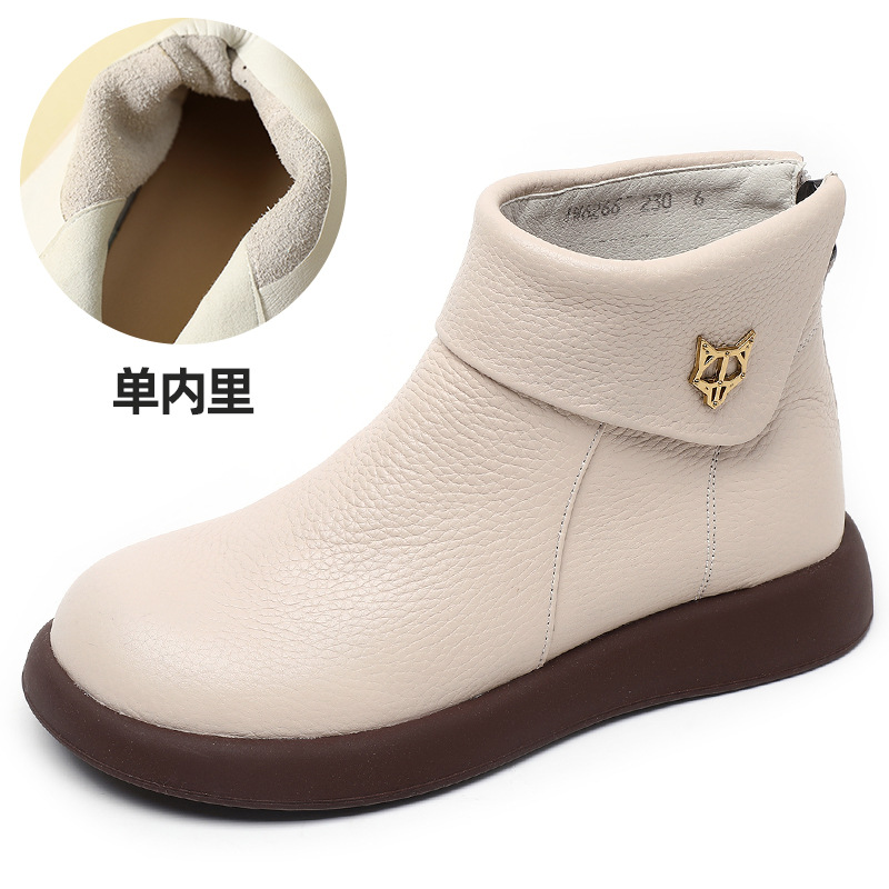 2023 가을과 겨울 새로운 1 층 소가죽 짧은 부츠 여성용 부드러운 가죽 부드러운 바닥 마틴 부츠 캐주얼 복고풍 라운드 헤드 대형 부츠