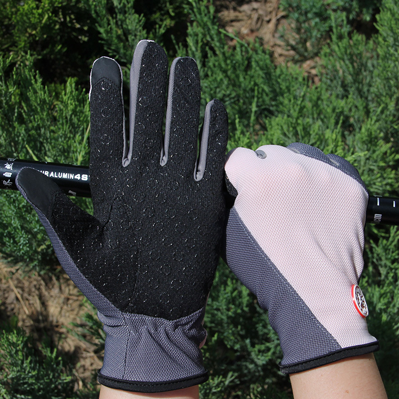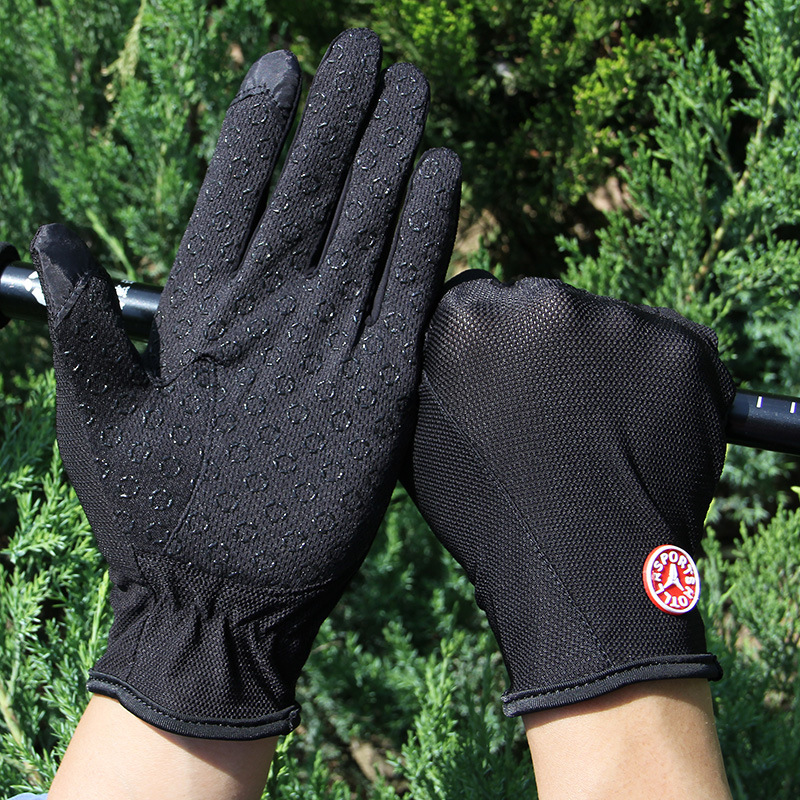 여름과 가을 야외 스포츠 등산 손가락 장갑 남성과 여성을위한 얇은 통기성 그물 미끄럼 방지 터치 스크린 운전 태양 보호
