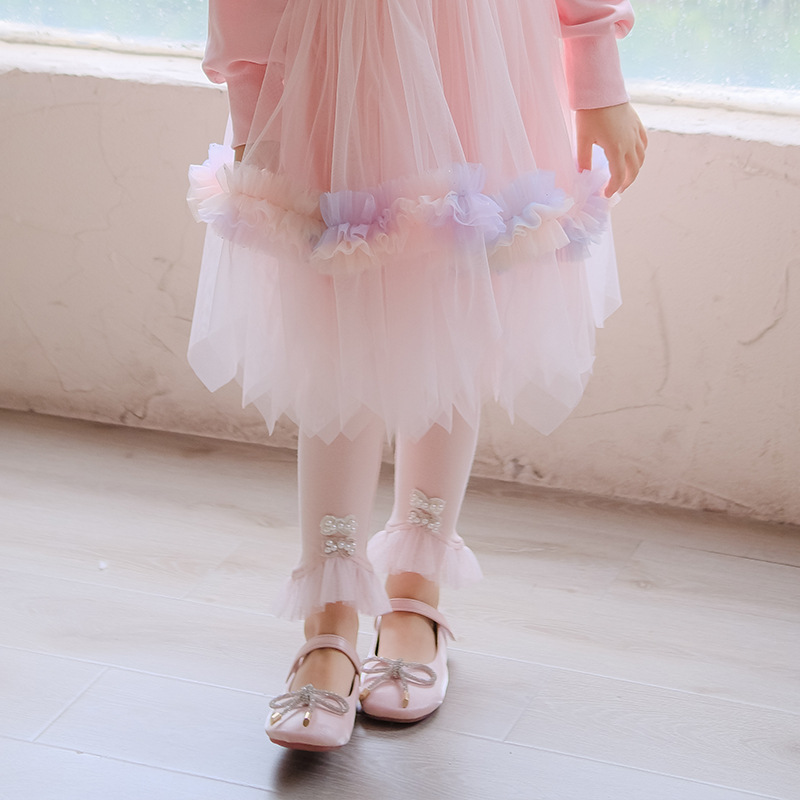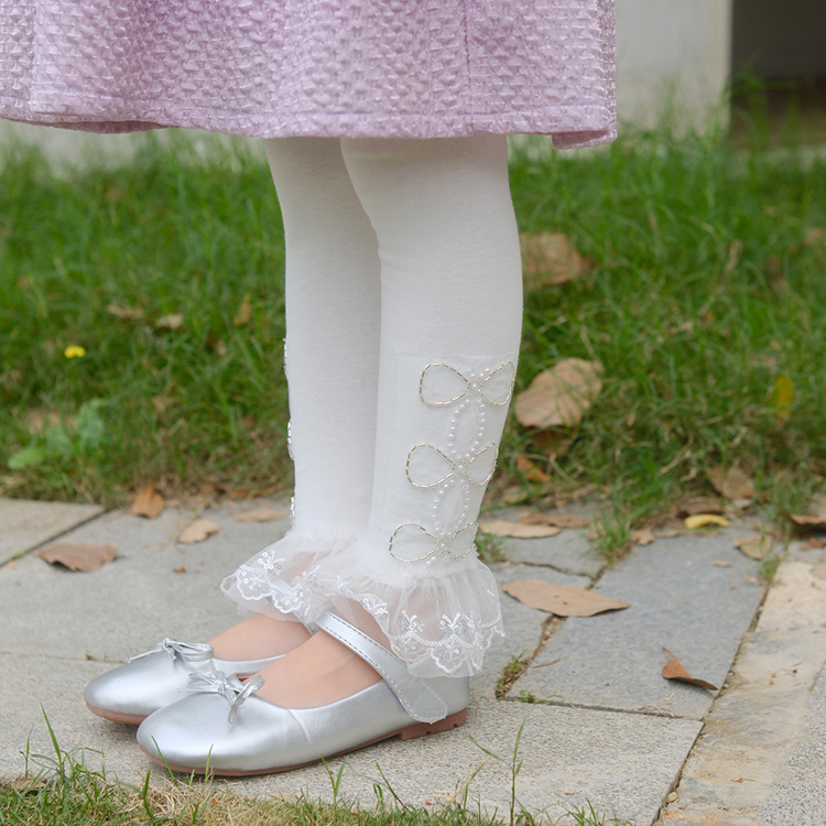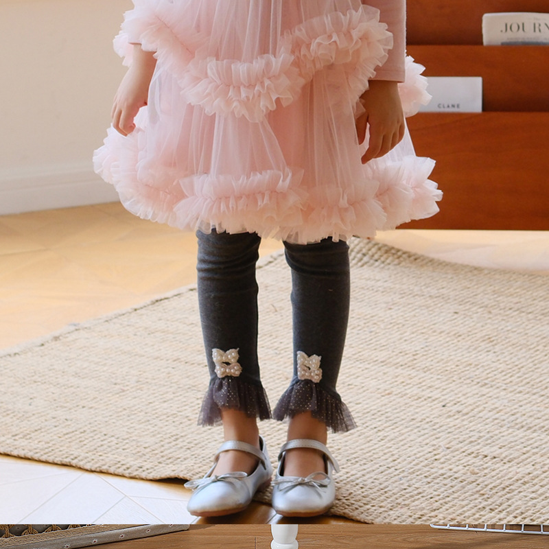 【【5 점】반품 불가】가을용 면 신축성 여아 레깅스 아기 소녀용 스팽글 레이스 바지