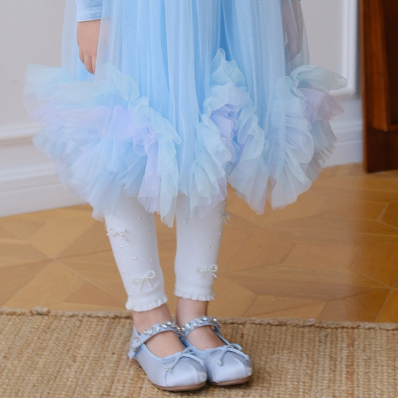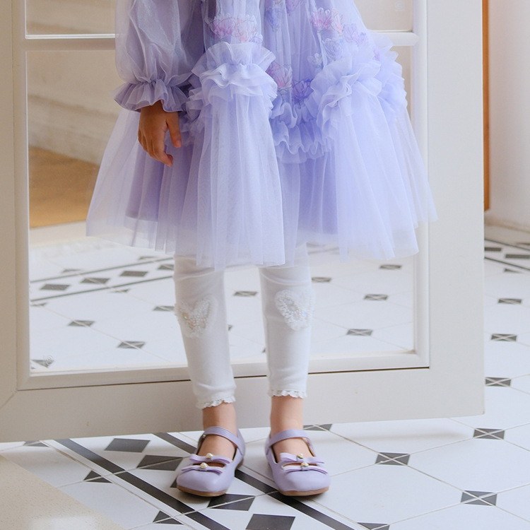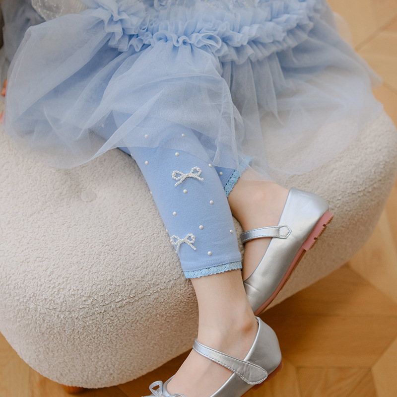 【【5 점】반품 불가】가을용 면 신축성 여아 레깅스 아기 소녀용 스팽글 레이스 바지스토어 가기