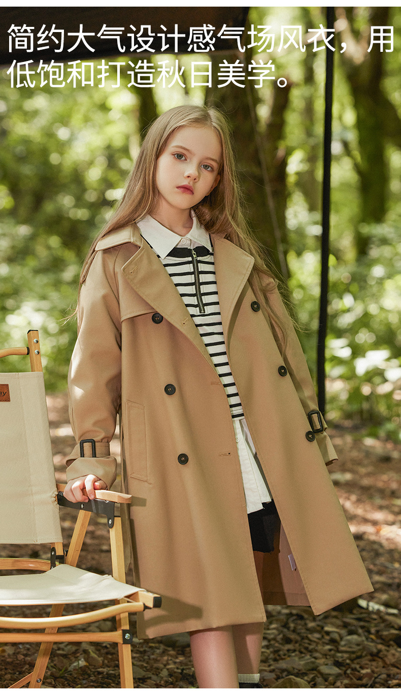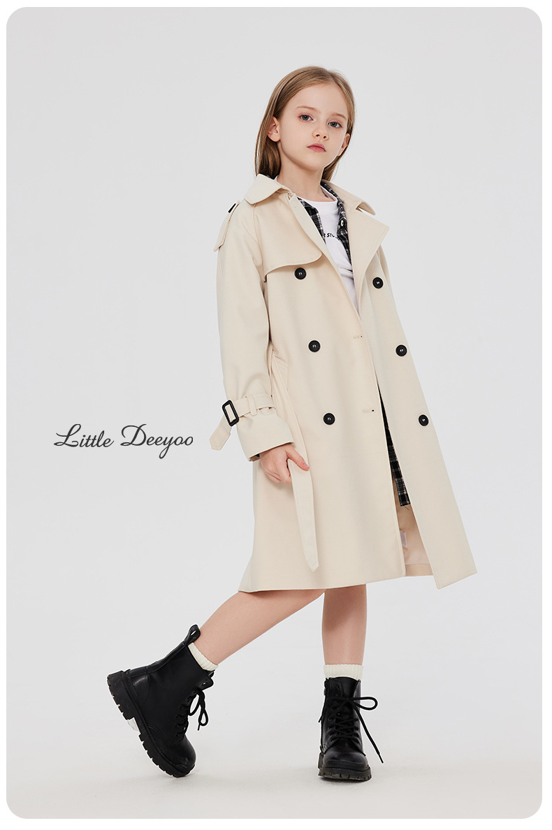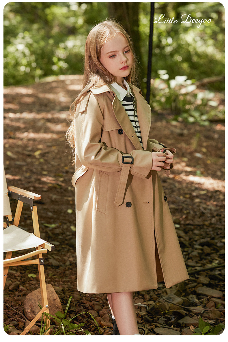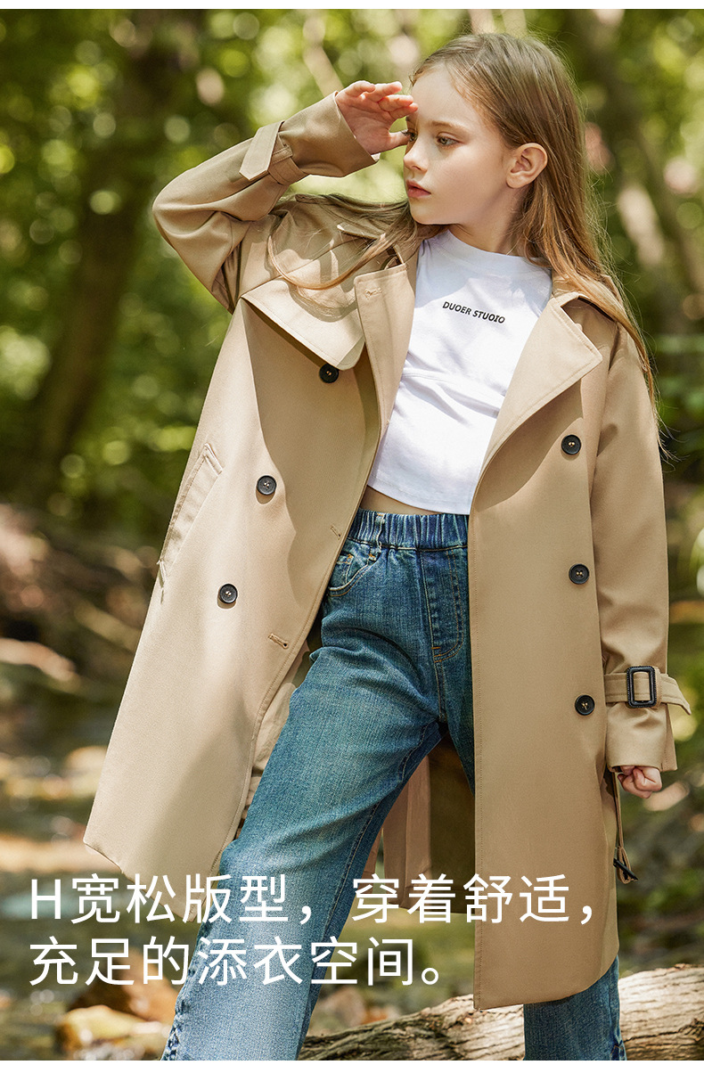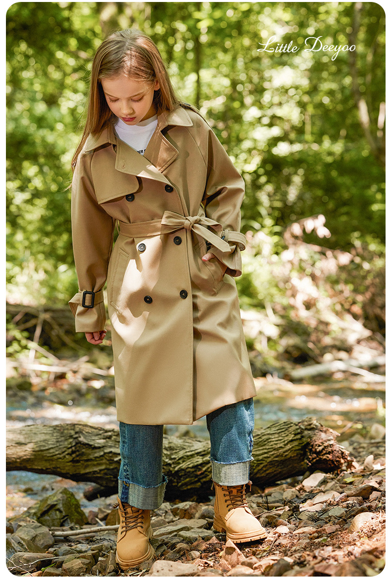 2025년 가을 신상품, 중대형 어린이용 영국풍 가을 코트, 여아용 더블 버튼 윈드브레이커, 중간 길이스토어 가기