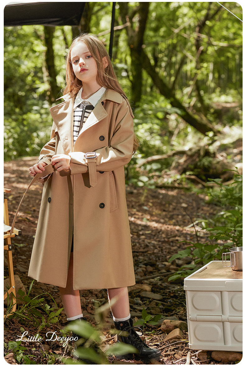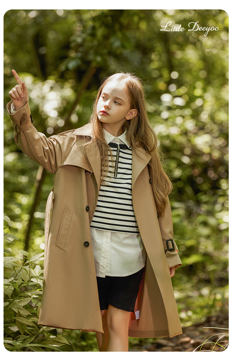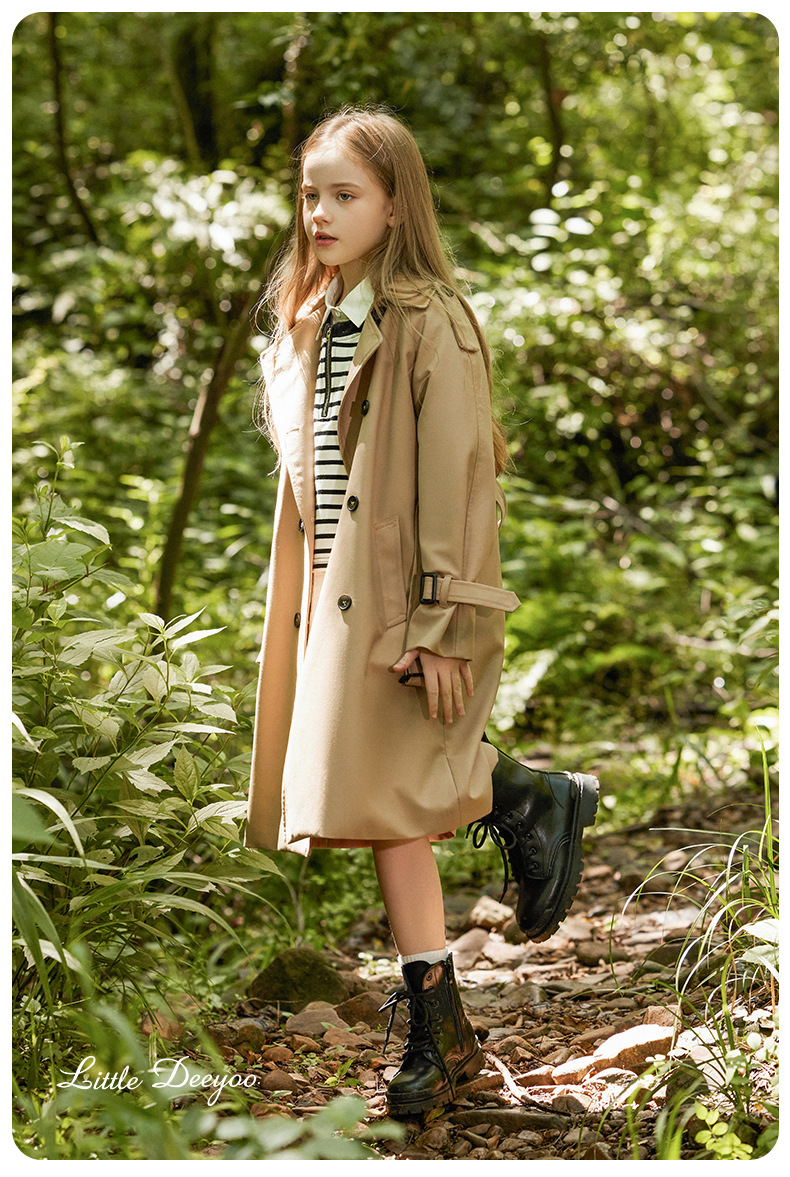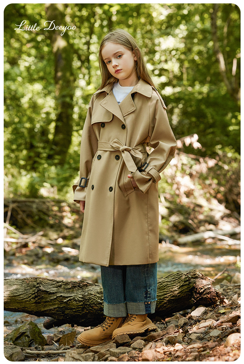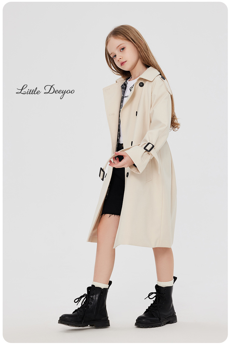 2025년 가을 신상품, 중대형 어린이용 영국풍 가을 코트, 여아용 더블 버튼 윈드브레이커, 중간 길이스토어 가기