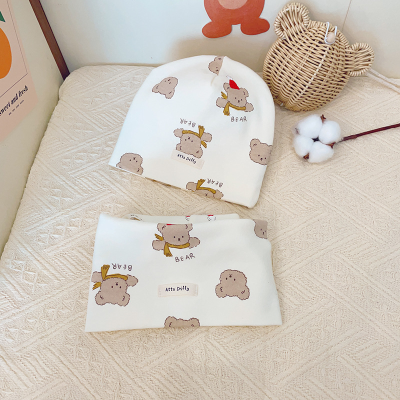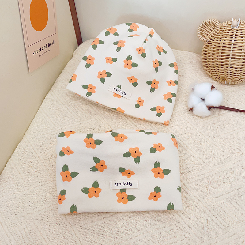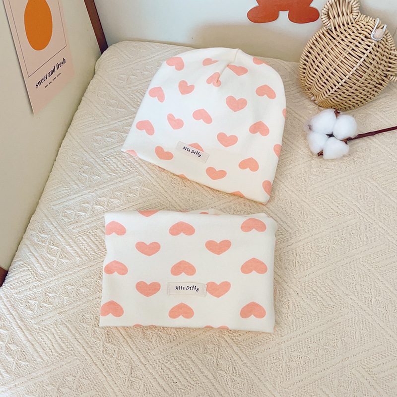 가을과 겨울 새로운 어린이 모자 스카프 2 피스 달콤한 인쇄 아기 니트 모자 스카프 세트