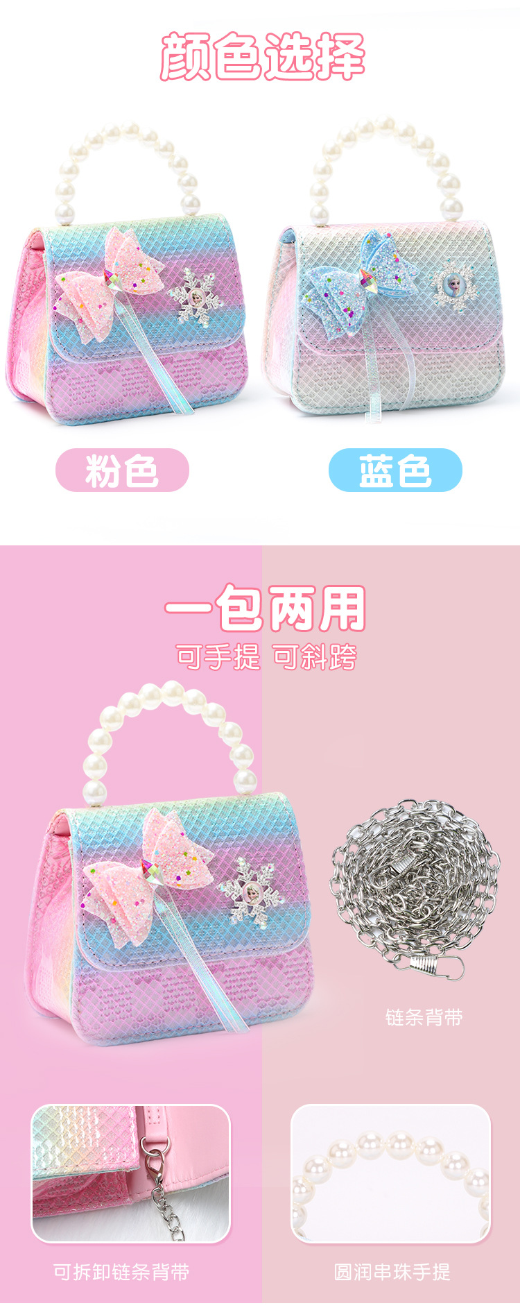 엘사 어린이 가방 크로스 바디 백 겨울왕국 소녀 공주 동전 지갑 Douyin Taobao 핫 세일