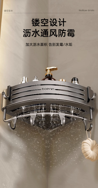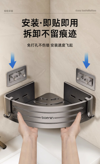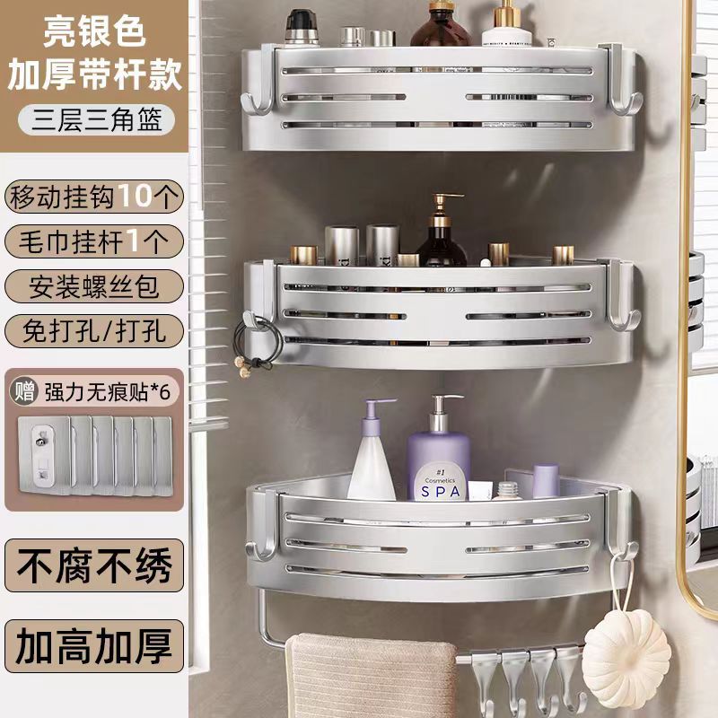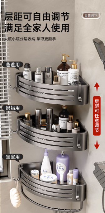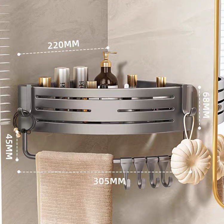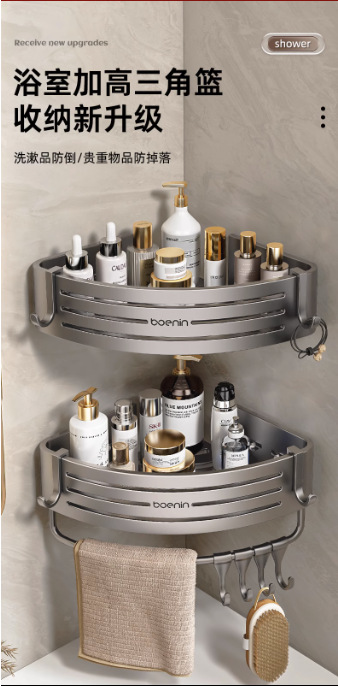 건 그레이 욕실 수납 랙 욕실 삼각형 선반 펀치 프리 벽걸이 화장실 화장실 세면대 보관 랙스토어 가기