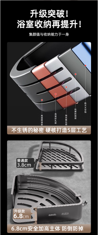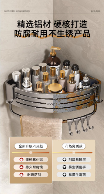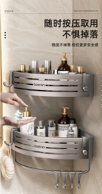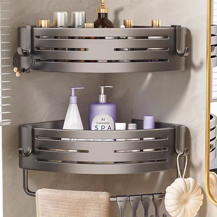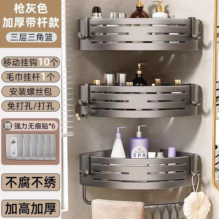 건 그레이 욕실 수납 랙 욕실 삼각형 선반 펀치 프리 벽걸이 화장실 화장실 세면대 보관 랙