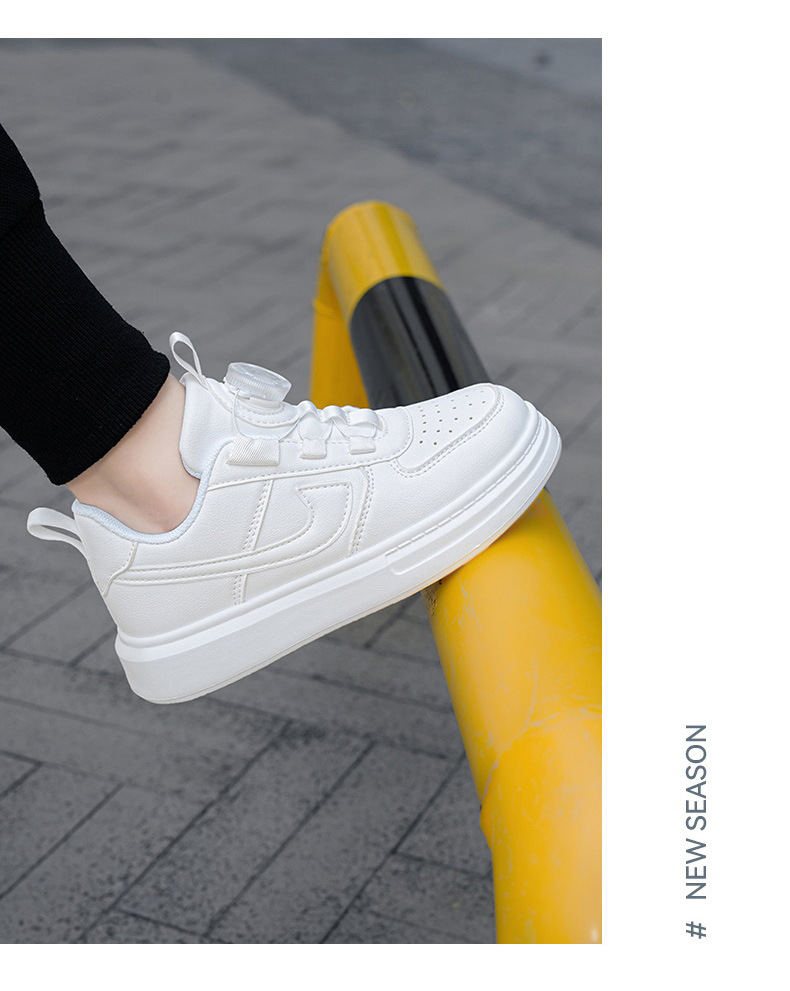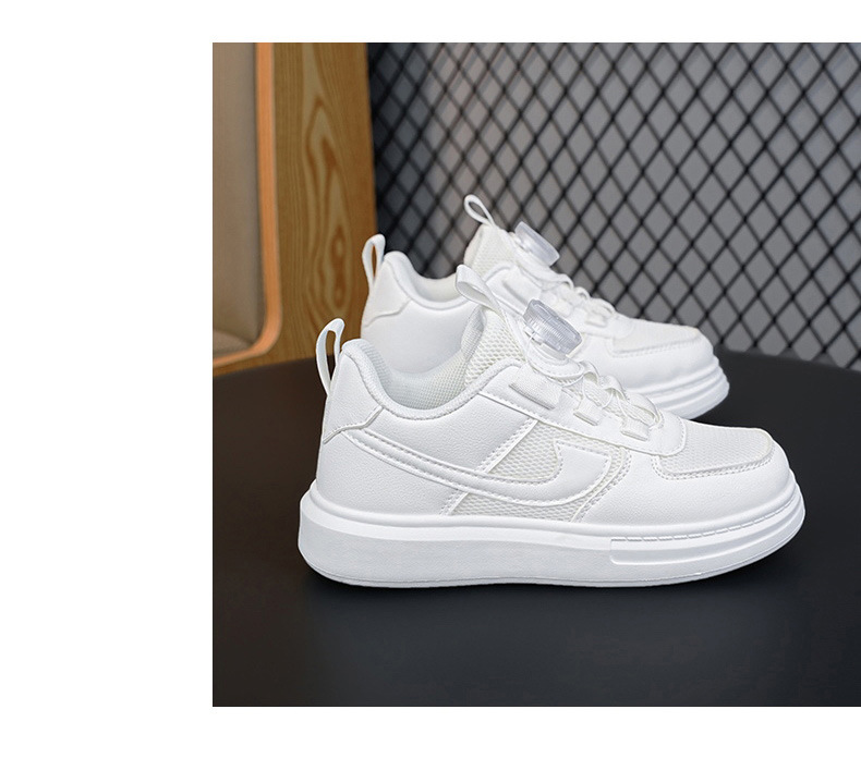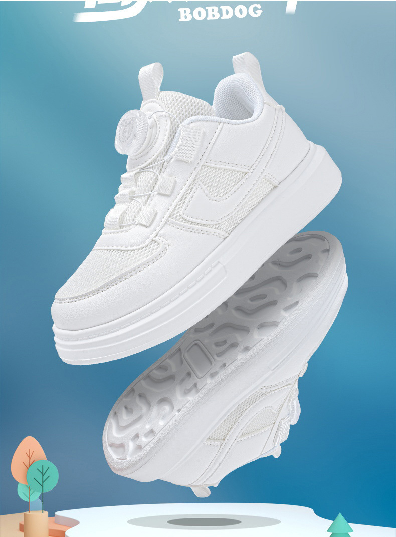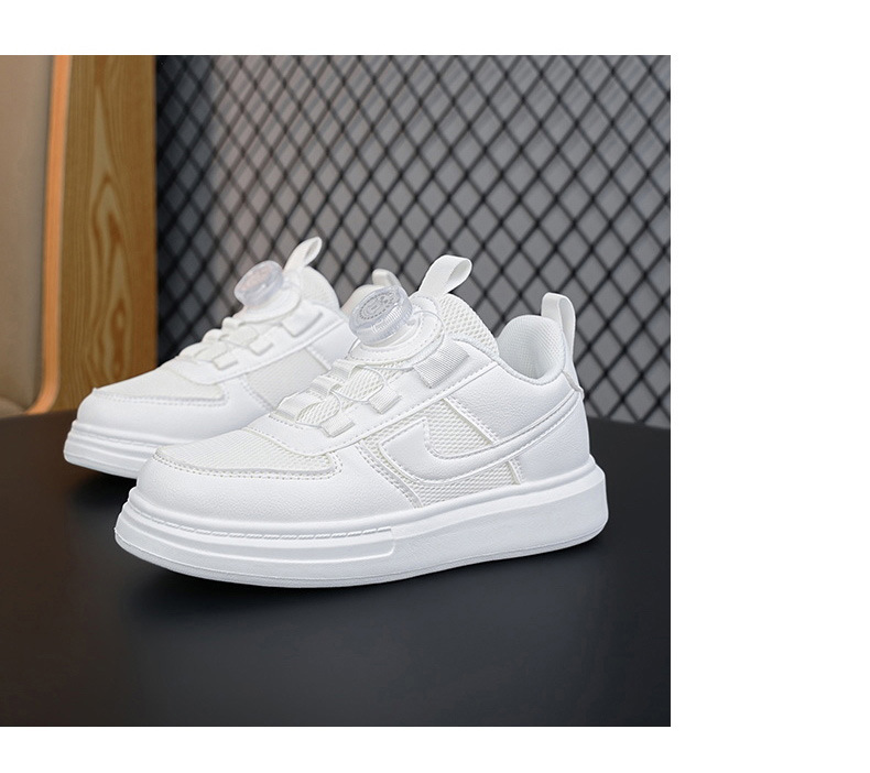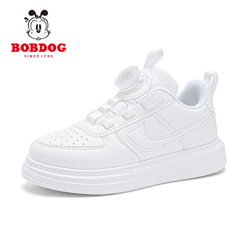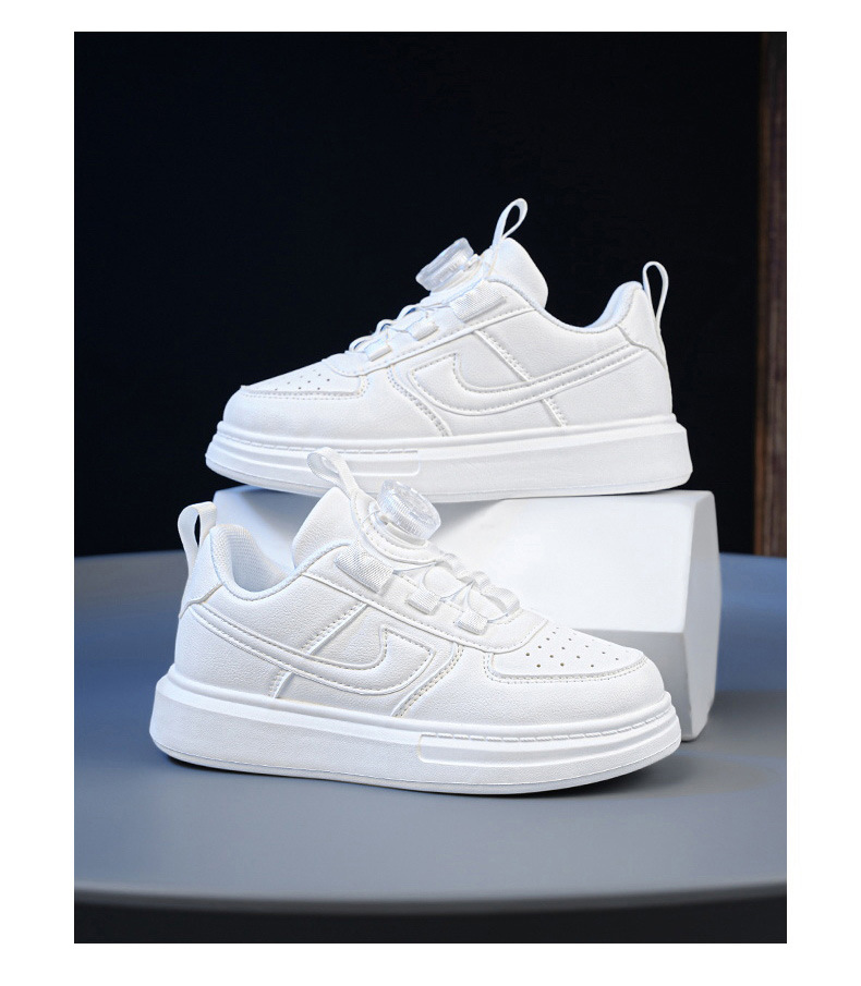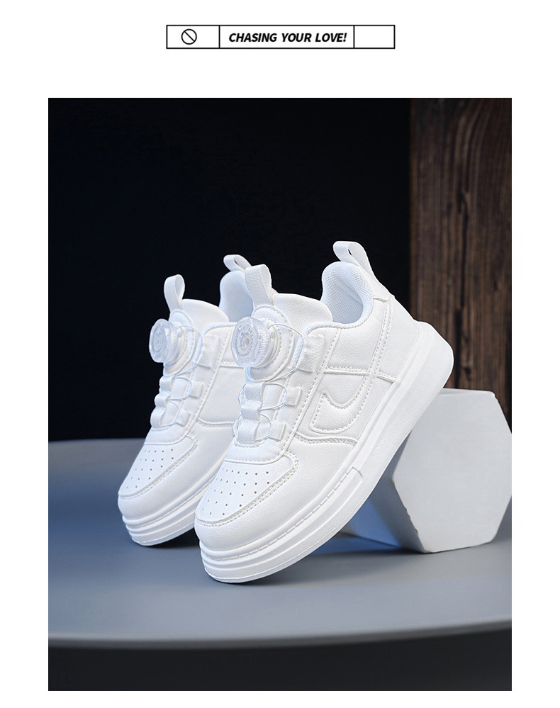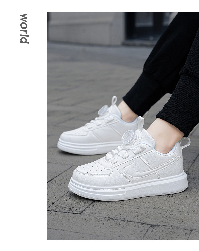 Babu 콩 소년 신발 가을 학생 패션 가죽 스포츠 흰색 신발 중형 및 대형 어린이 경량 보드 신발 회전 버클