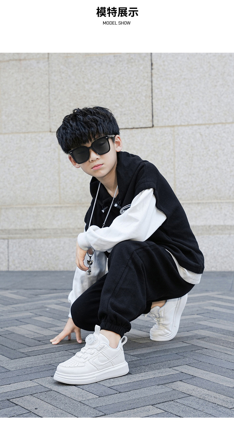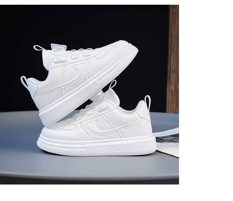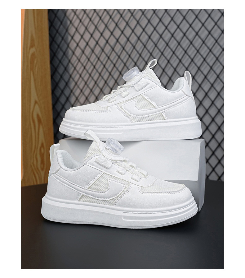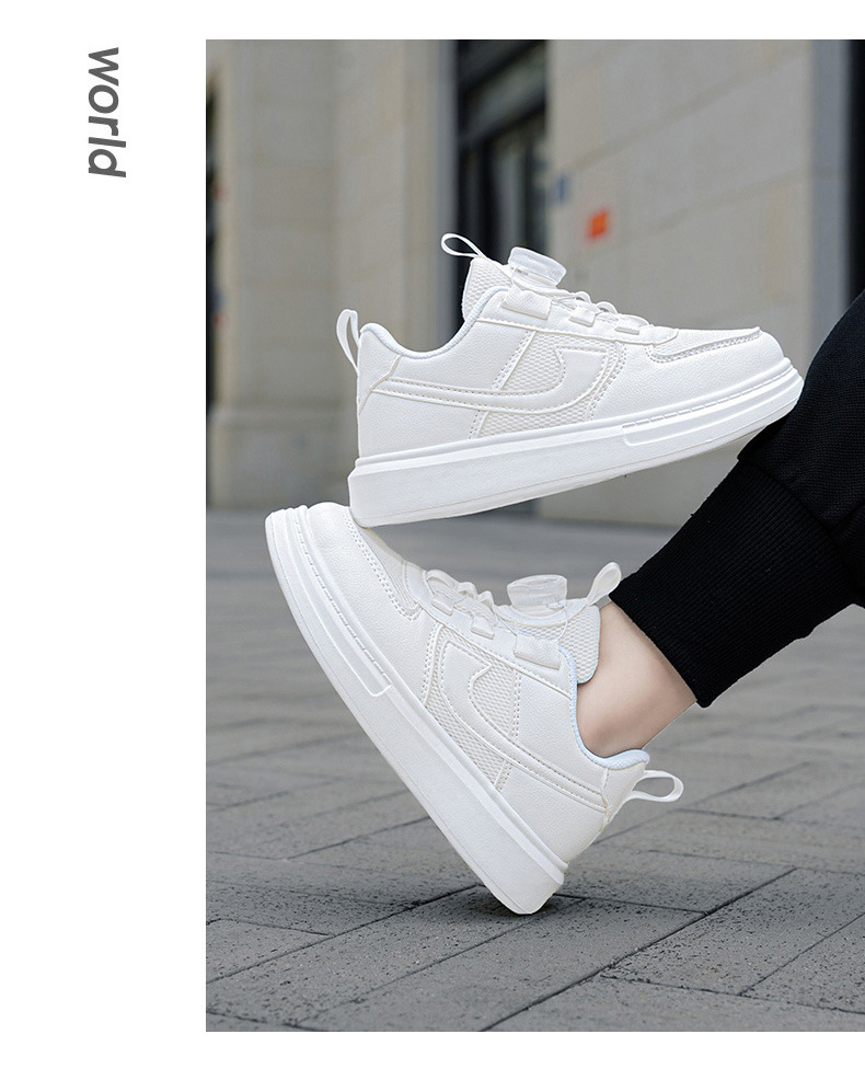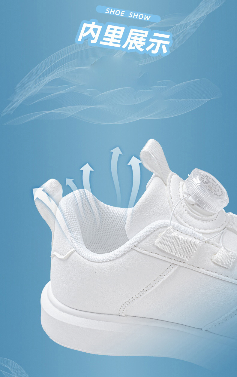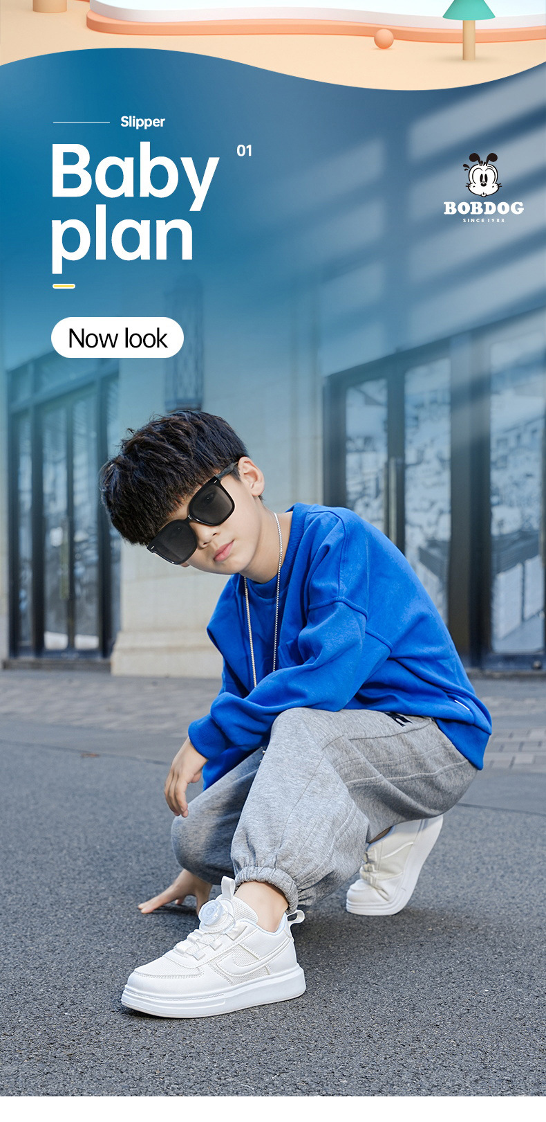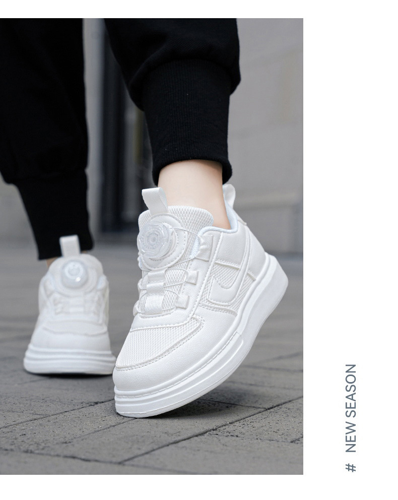 Babu 콩 소년 신발 가을 학생 패션 가죽 스포츠 흰색 신발 중형 및 대형 어린이 경량 보드 신발 회전 버클
