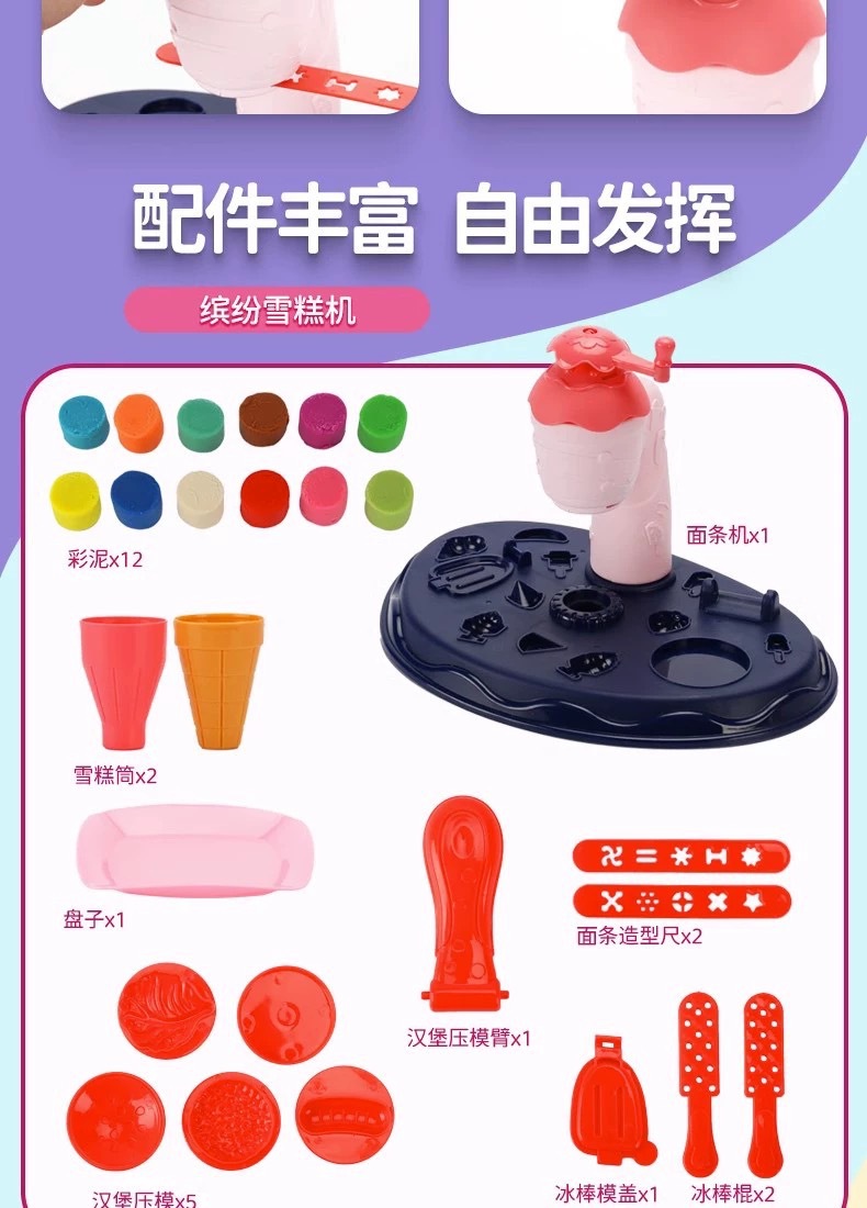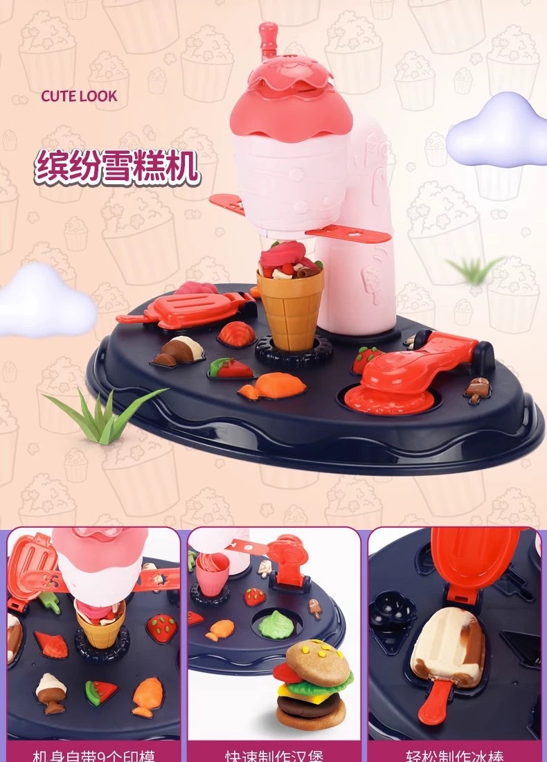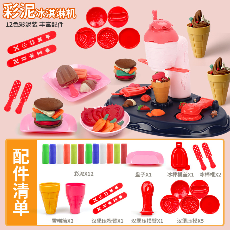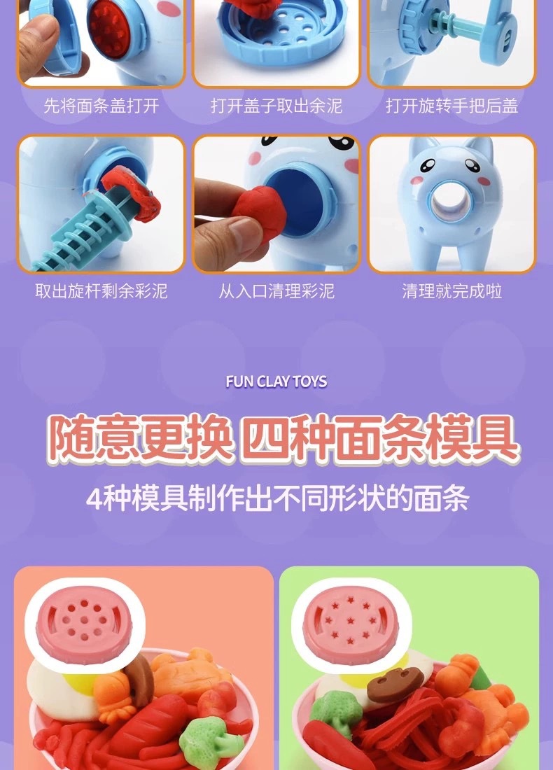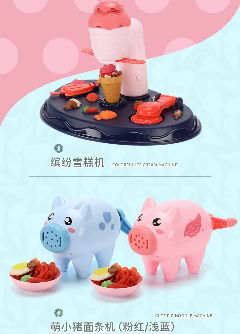 모에 돼지 국수 기계 어린이 놀이 집 장난감 주방 색상 진흙 세트 아이스크림 기계 플라스틱 점토 금형
