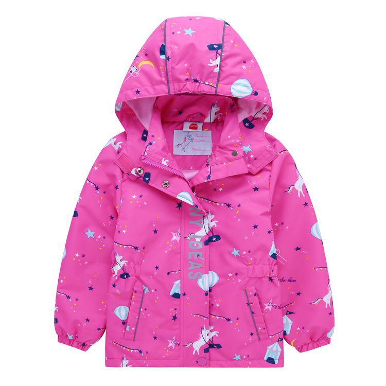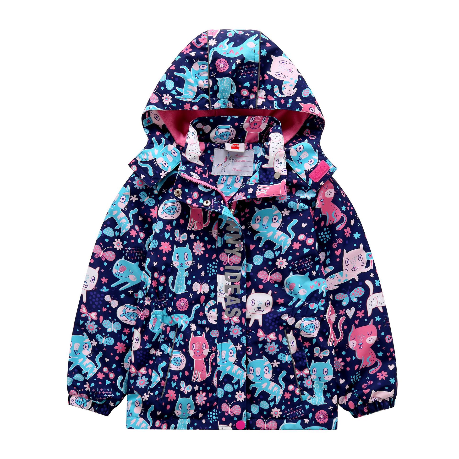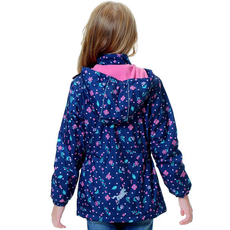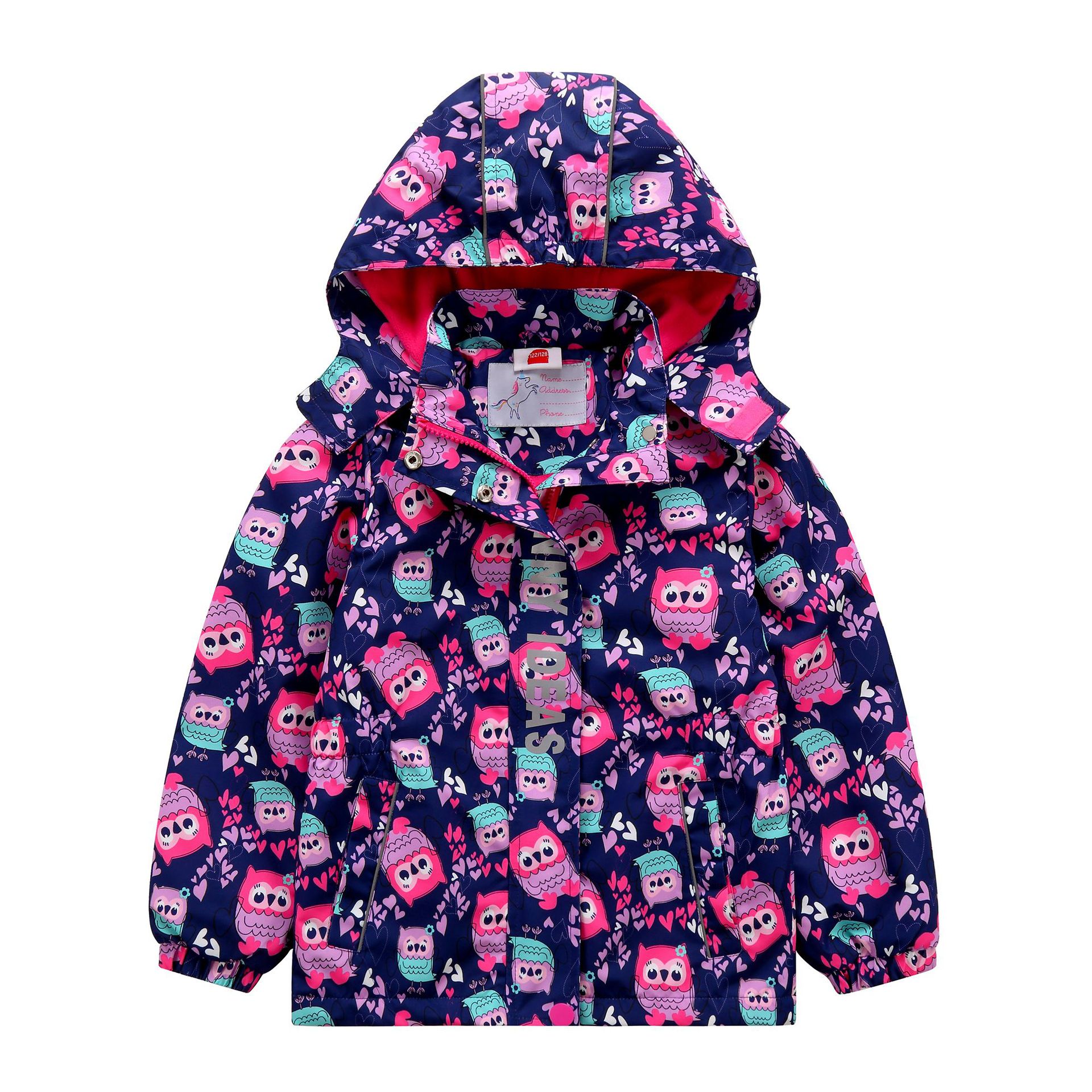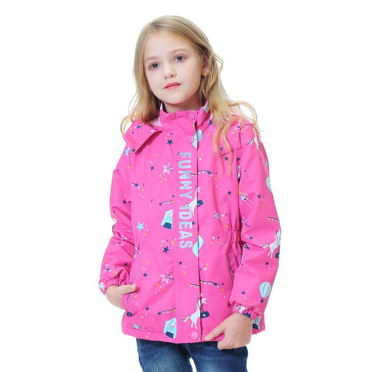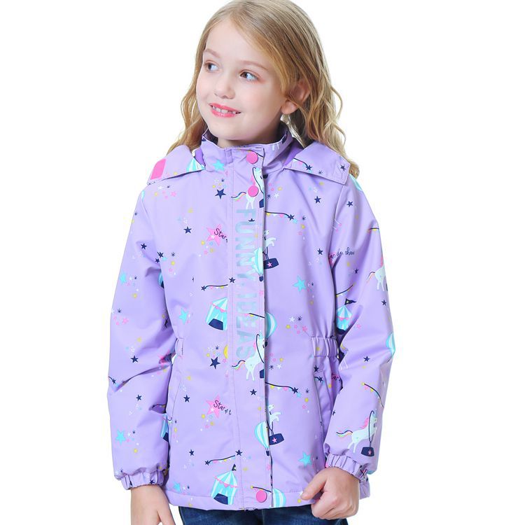 面料欧美外贸标准的防风防水厚实中带点柔软,不起球,易清洗。细节增加了很多亮点,后片是可以反光的可爱的小马,门襟是扣子和魔术贴相结合,美观又实用。门襟的英文字母也是可以反光的,衣身亮银色反光条。这些都能给宝宝在夜晚增加安全系数。女童稍微收腰。本厂都是做外贸出口订单的老工人,有着十几年的制衣经验,所以质量请放心。关键是价格是实惠,建议零售价169以上。尺寸是国内标准的,模特1.25米,穿的是122-128码。