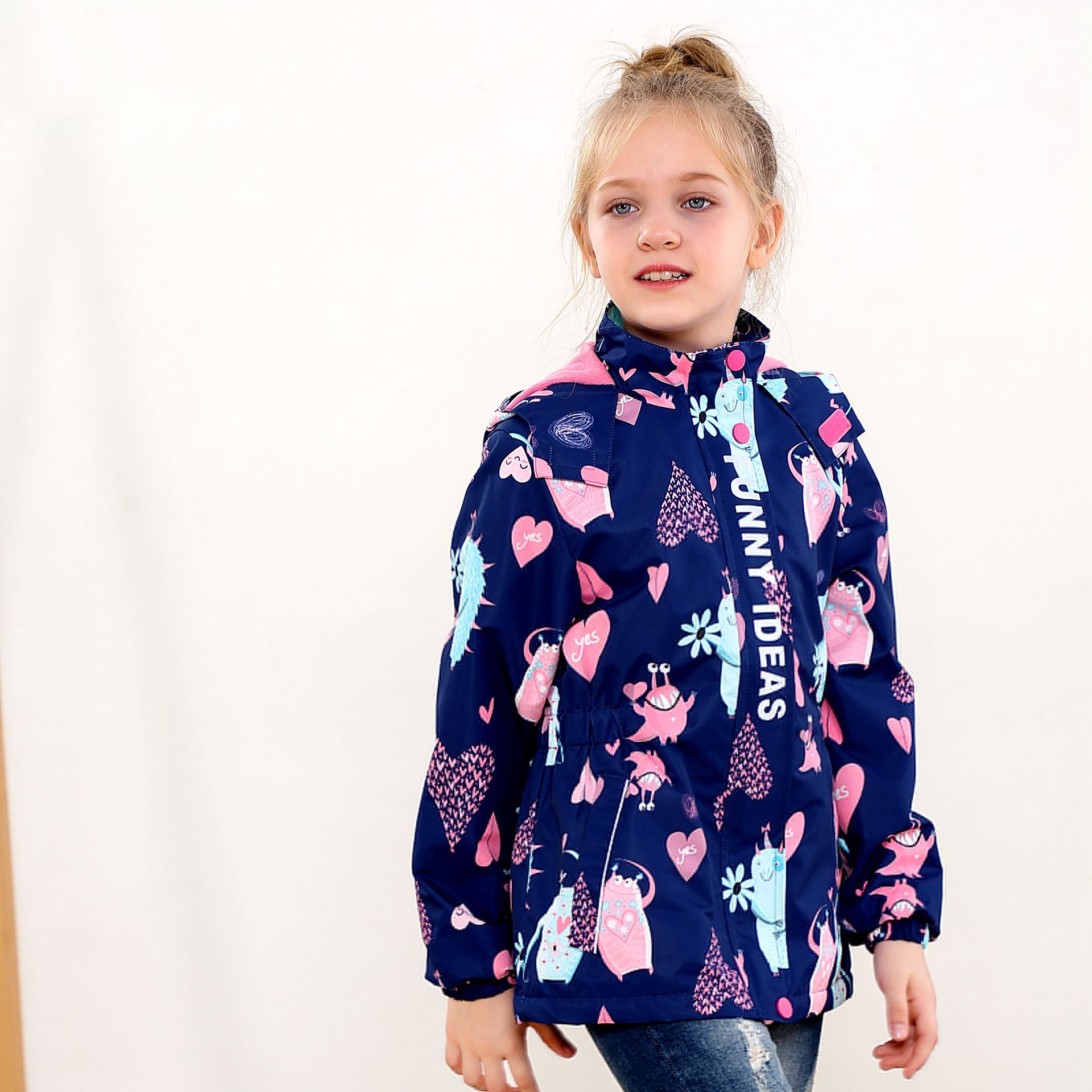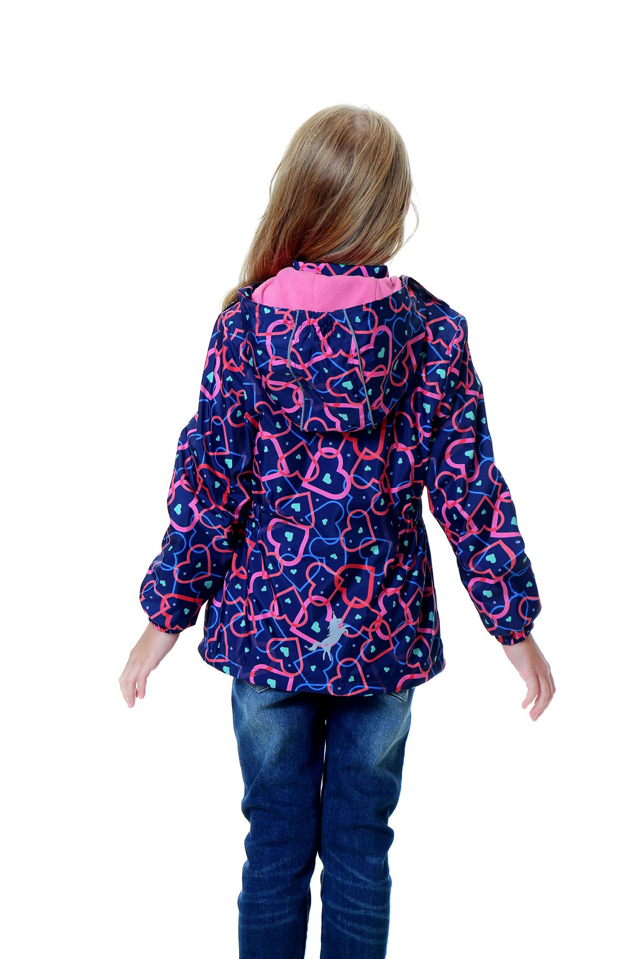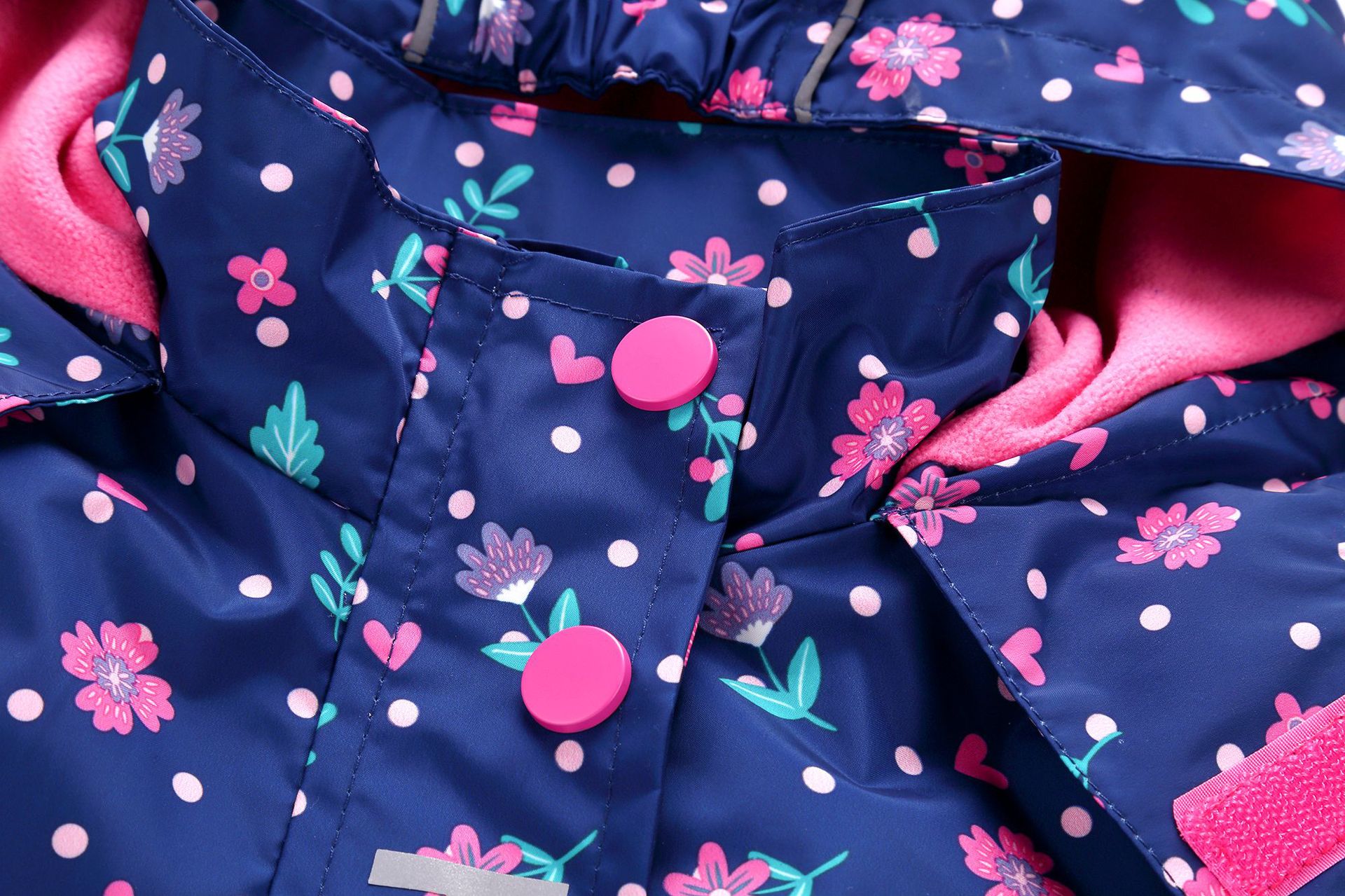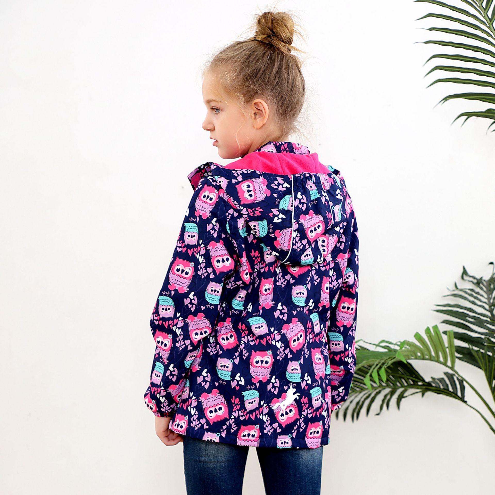 面料欧美外贸标准的防风防水厚实中带点柔软,不起球,易清洗。细节增加了很多亮点,后片是可以反光的可爱的小马,门襟是扣子和魔术贴相结合,美观又实用。门襟的英文字母也是可以反光的,衣身亮银色反光条。这些都能给宝宝在夜晚增加安全系数。女童稍微收腰。本厂都是做外贸出口订单的老工人,有着十几年的制衣经验,所以质量请放心。关键是价格是实惠,建议零售价169以上。尺寸是国内标准的,模特1.25米,穿的是122-128码。