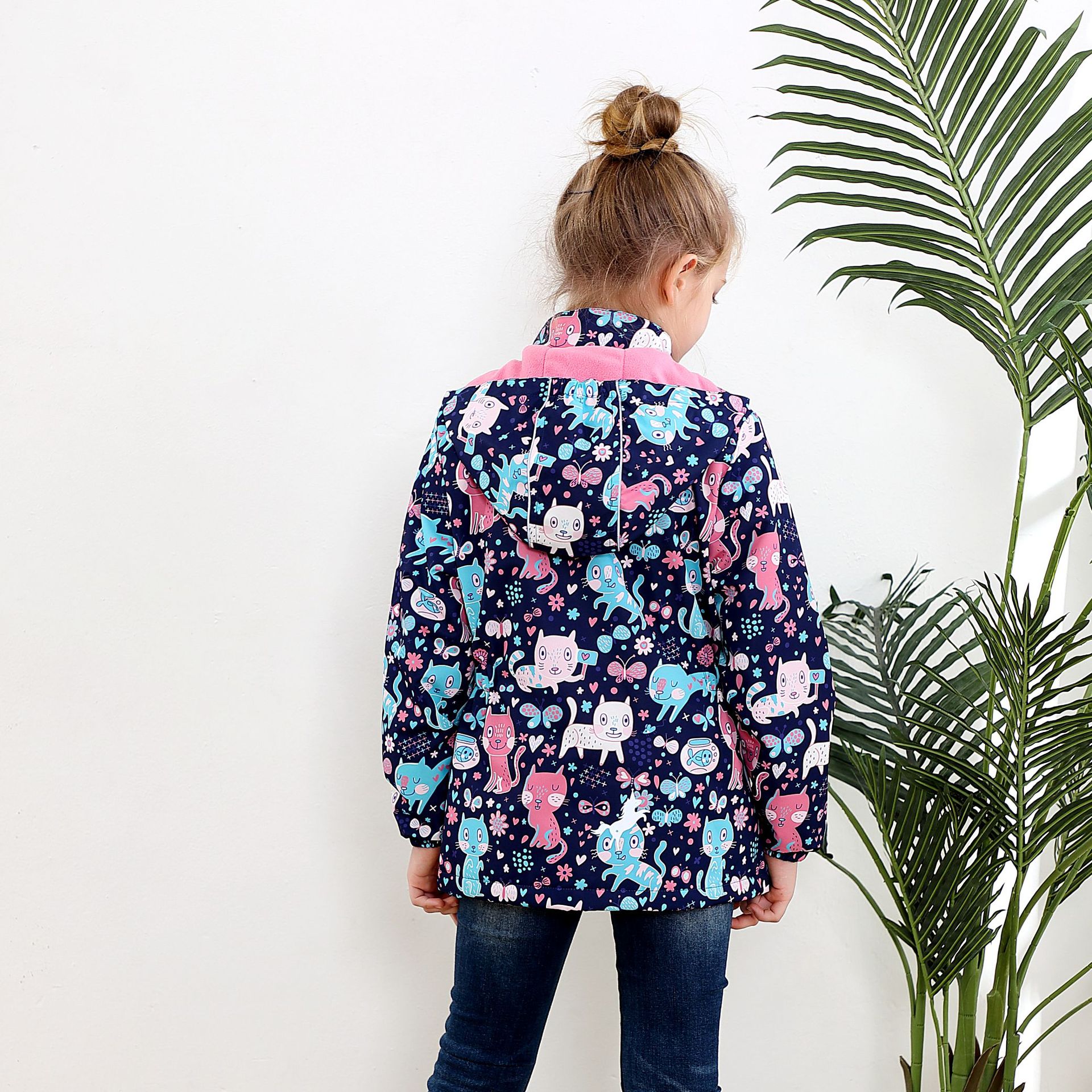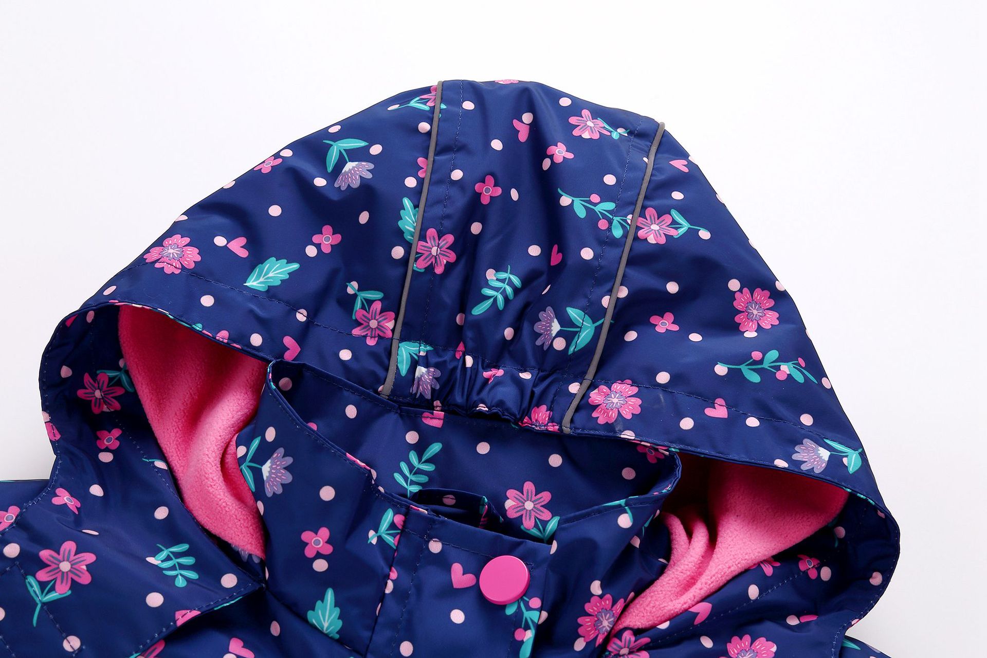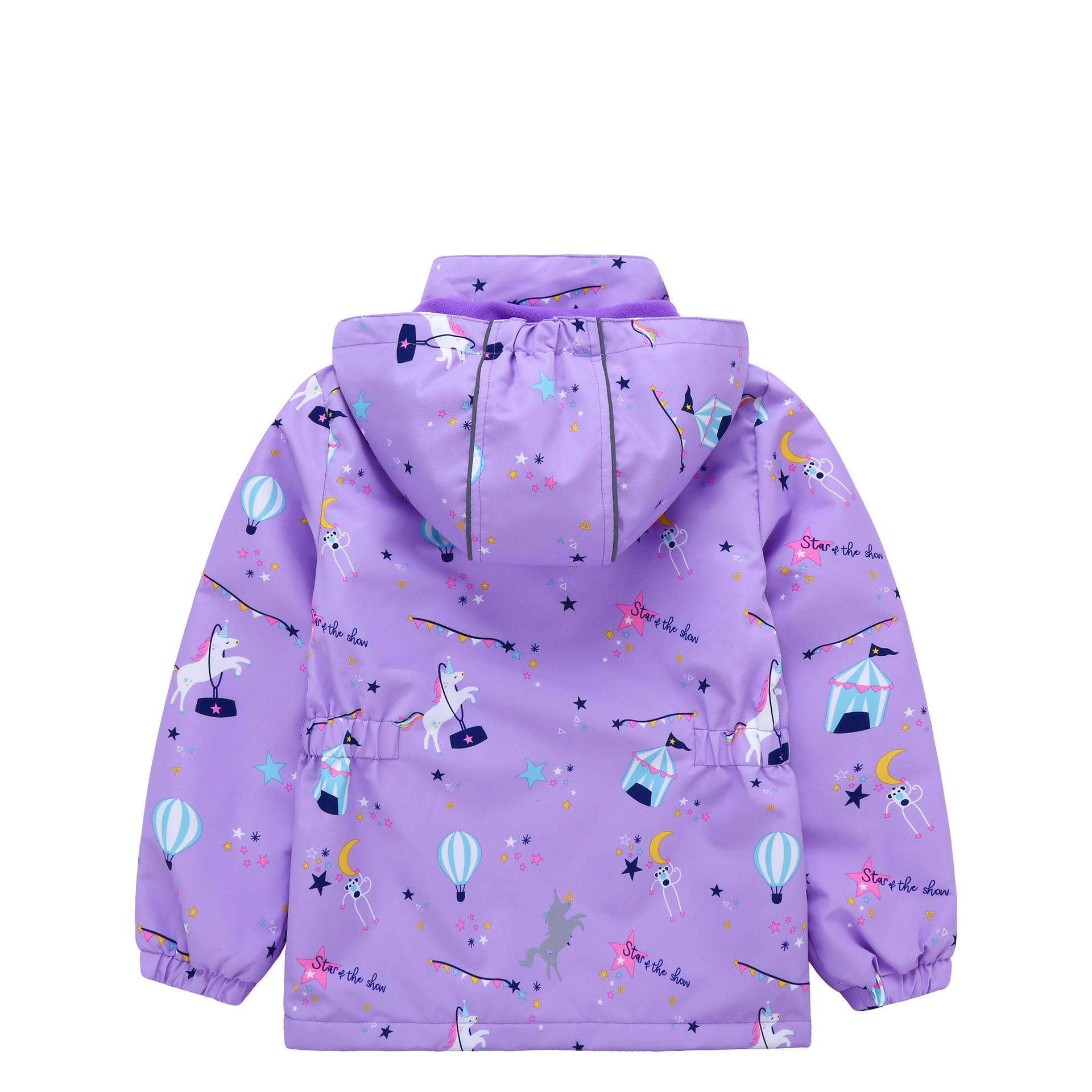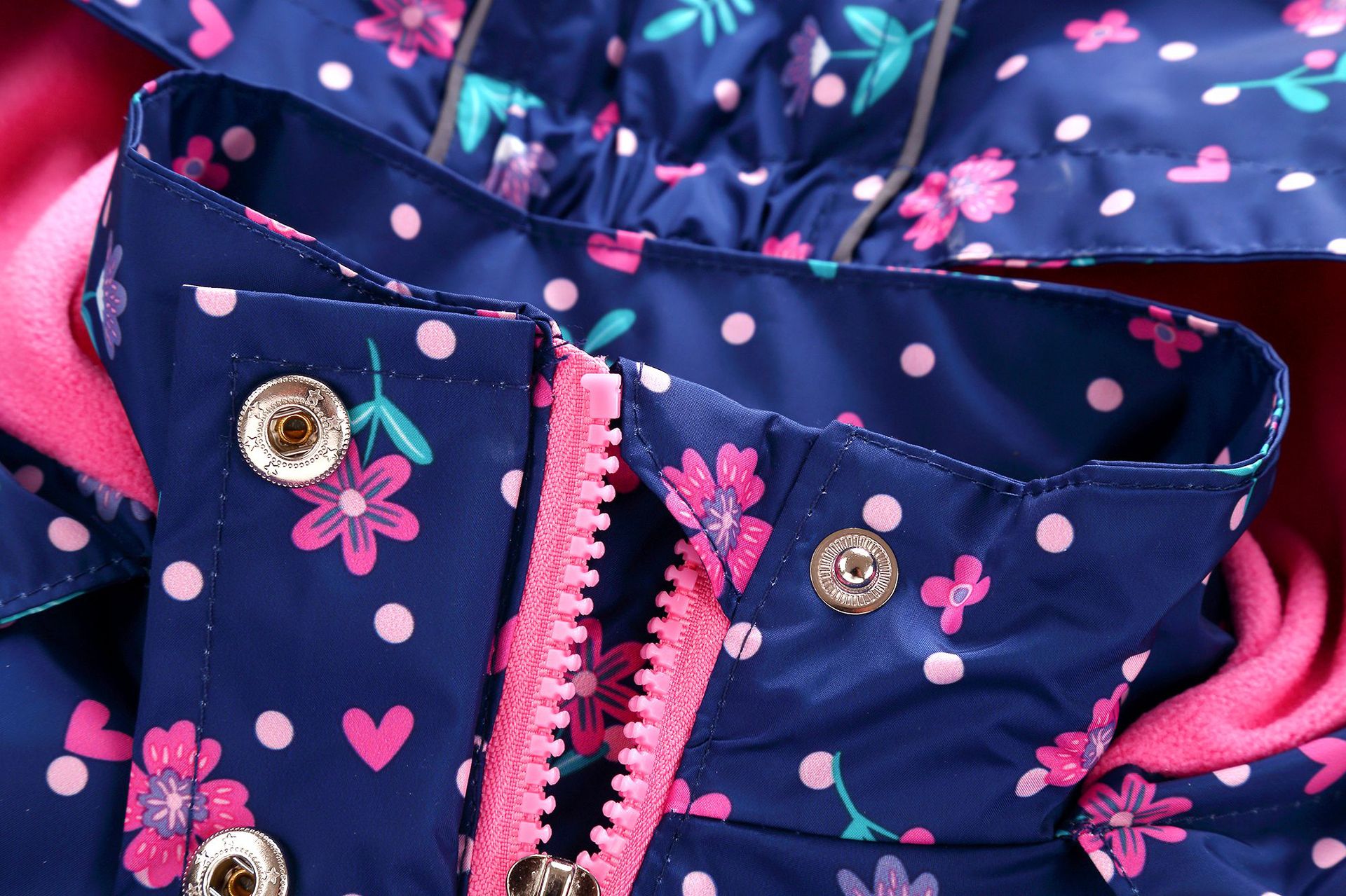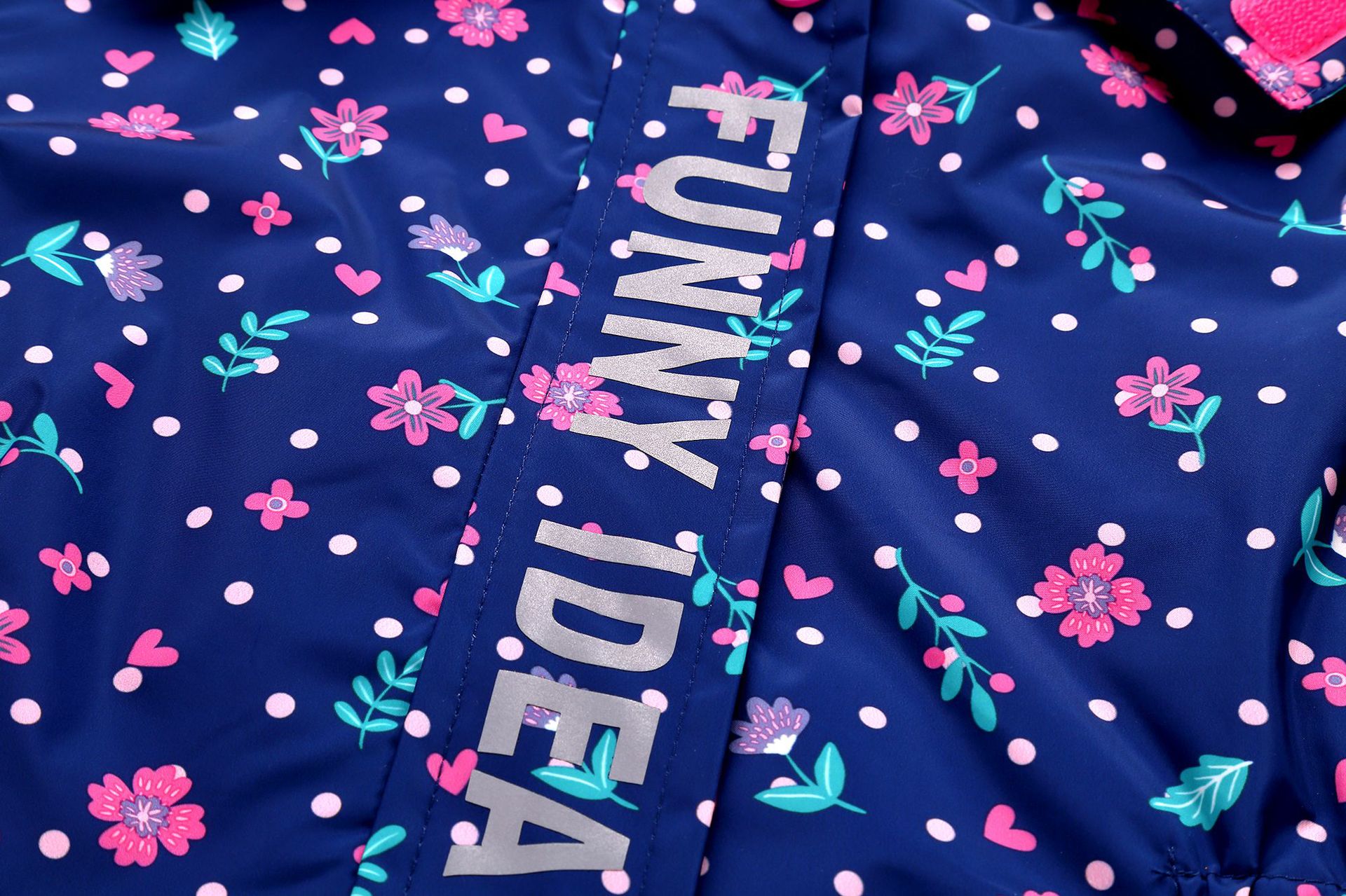 面料欧美外贸标准的防风防水厚实中带点柔软,不起球,易清洗。细节增加了很多亮点,后片是可以反光的可爱的小马,门襟是扣子和魔术贴相结合,美观又实用。门襟的英文字母也是可以反光的,衣身亮银色反光条。这些都能给宝宝在夜晚增加安全系数。女童稍微收腰。本厂都是做外贸出口订单的老工人,有着十几年的制衣经验,所以质量请放心。关键是价格是实惠,建议零售价169以上。尺寸是国内标准的,模特1.25米,穿的是122-128码。