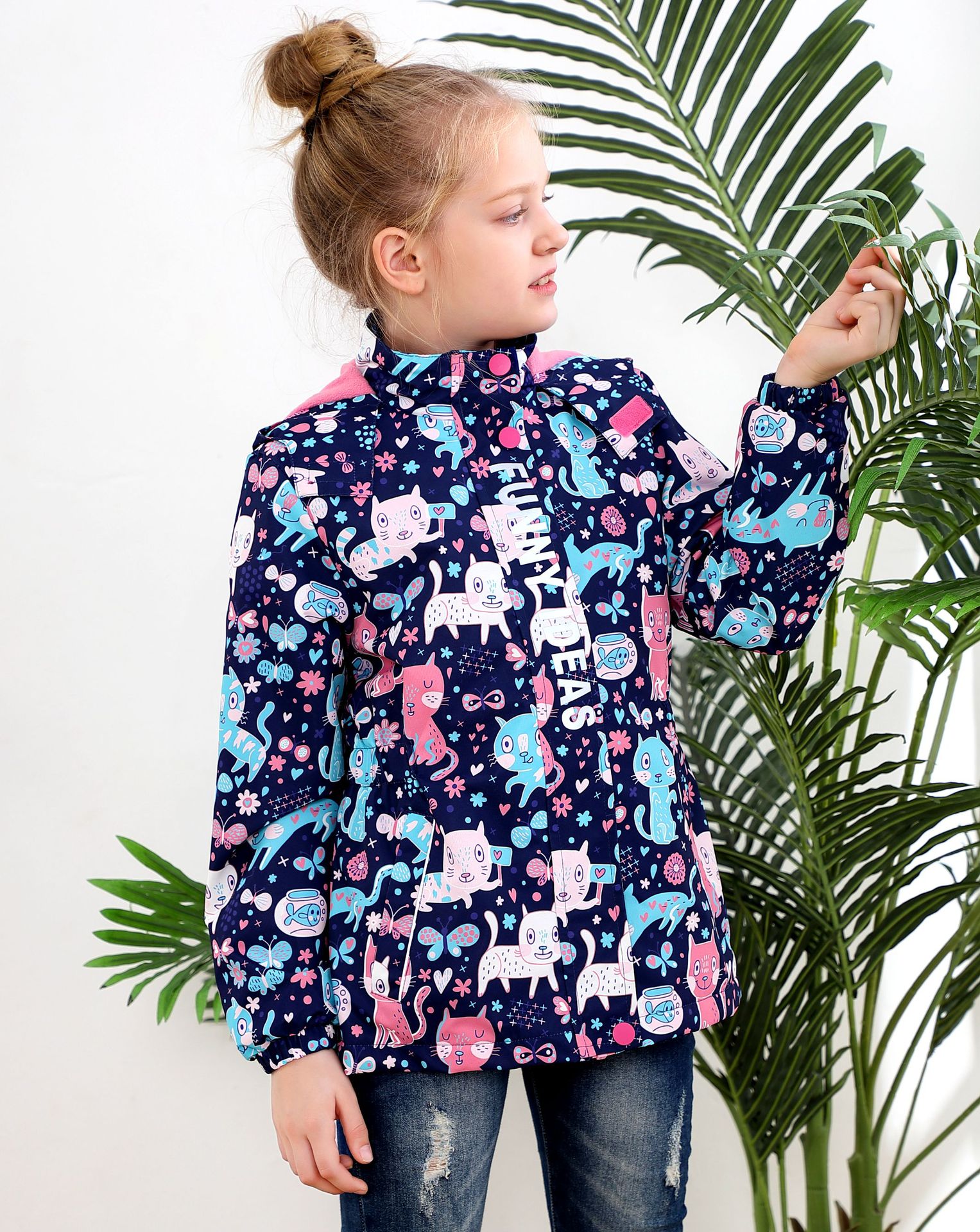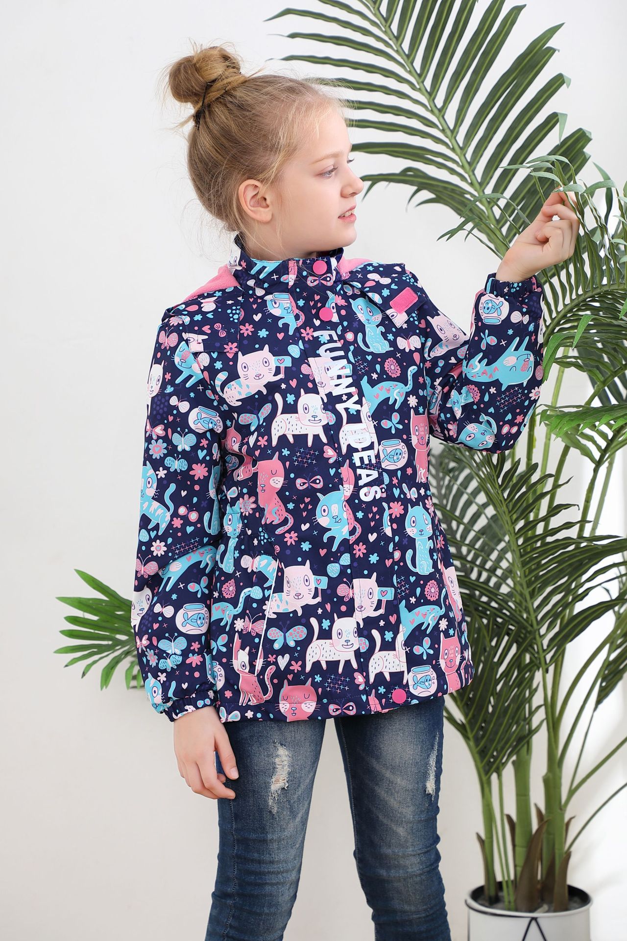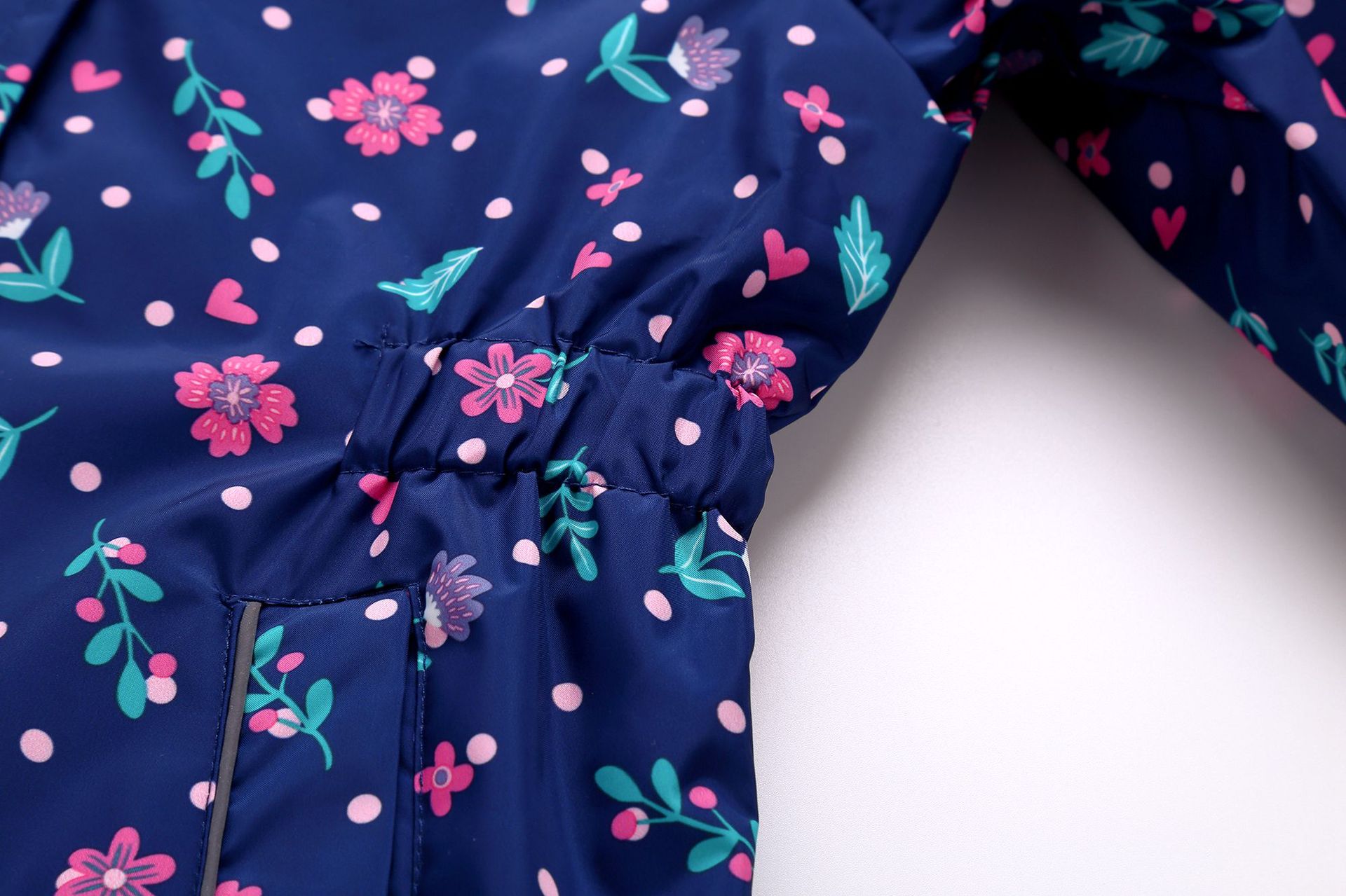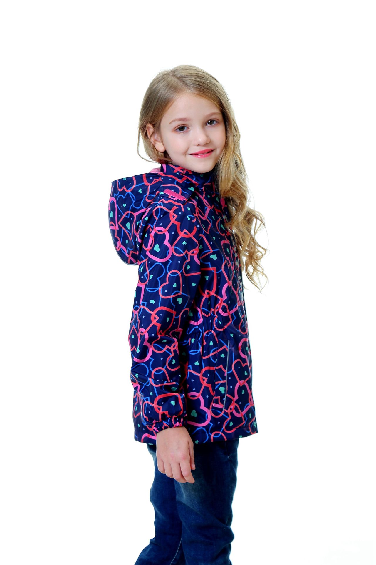 面料欧美外贸标准的防风防水厚实中带点柔软,不起球,易清洗。细节增加了很多亮点,后片是可以反光的可爱的小马,门襟是扣子和魔术贴相结合,美观又实用。门襟的英文字母也是可以反光的,衣身亮银色反光条。这些都能给宝宝在夜晚增加安全系数。女童稍微收腰。本厂都是做外贸出口订单的老工人,有着十几年的制衣经验,所以质量请放心。关键是价格是实惠,建议零售价169以上。尺寸是国内标准的,模特1.25米,穿的是122-128码。