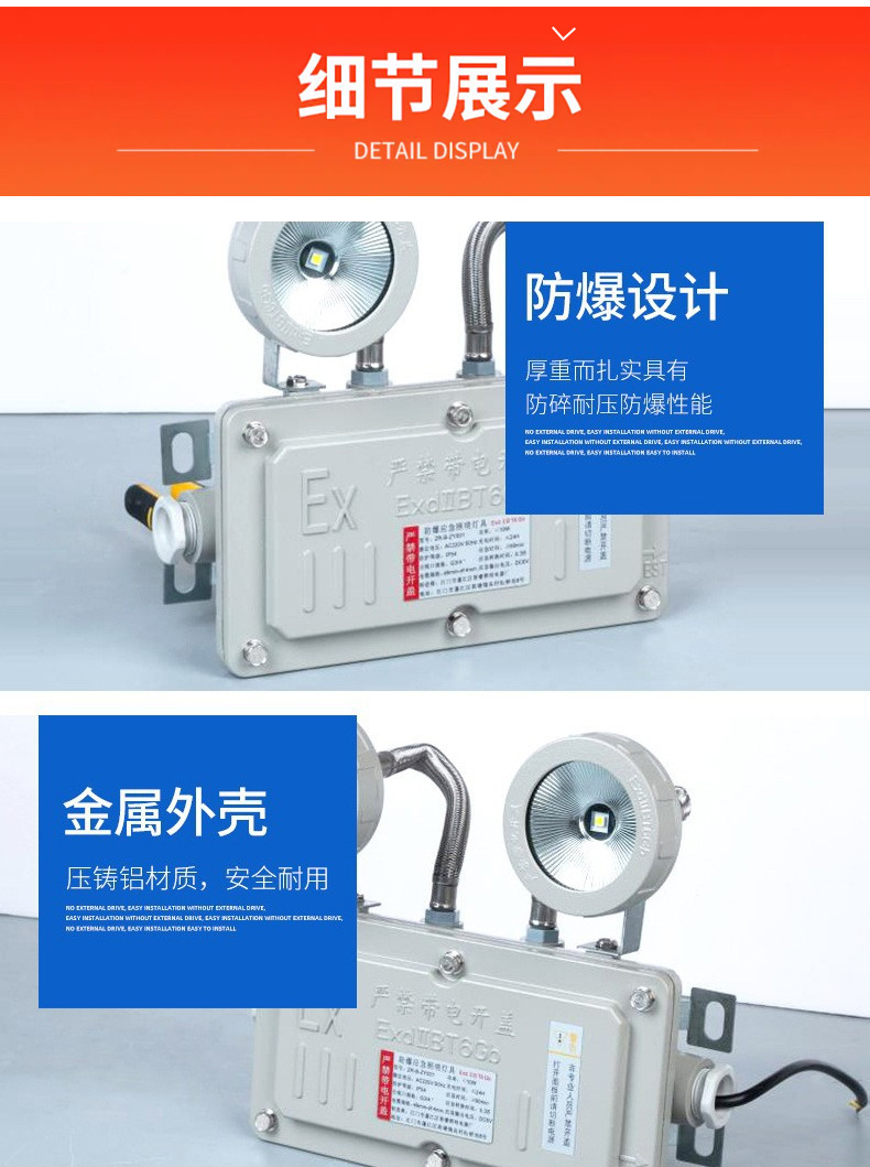 폭발 방지 화재 비상 조명 주유소 공장 작업장 LED 조명 안전 출구 표시기 폭발 방지 비상