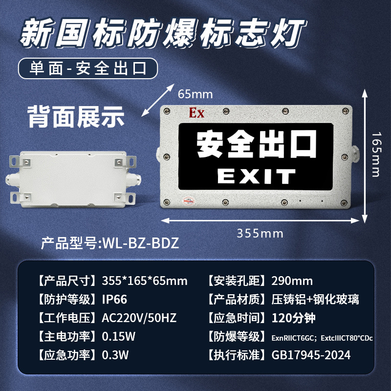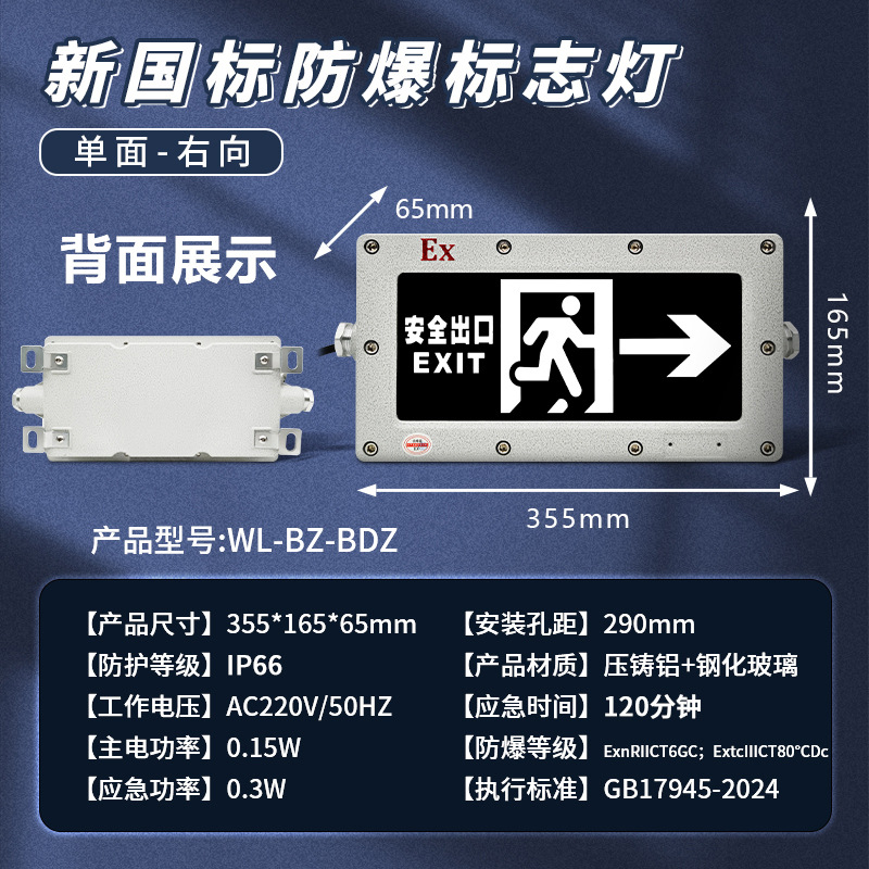 • 신국가표준 방폭형 안전 표지등 [단면 안전 출구] 소방 인증 + 방폭 인증