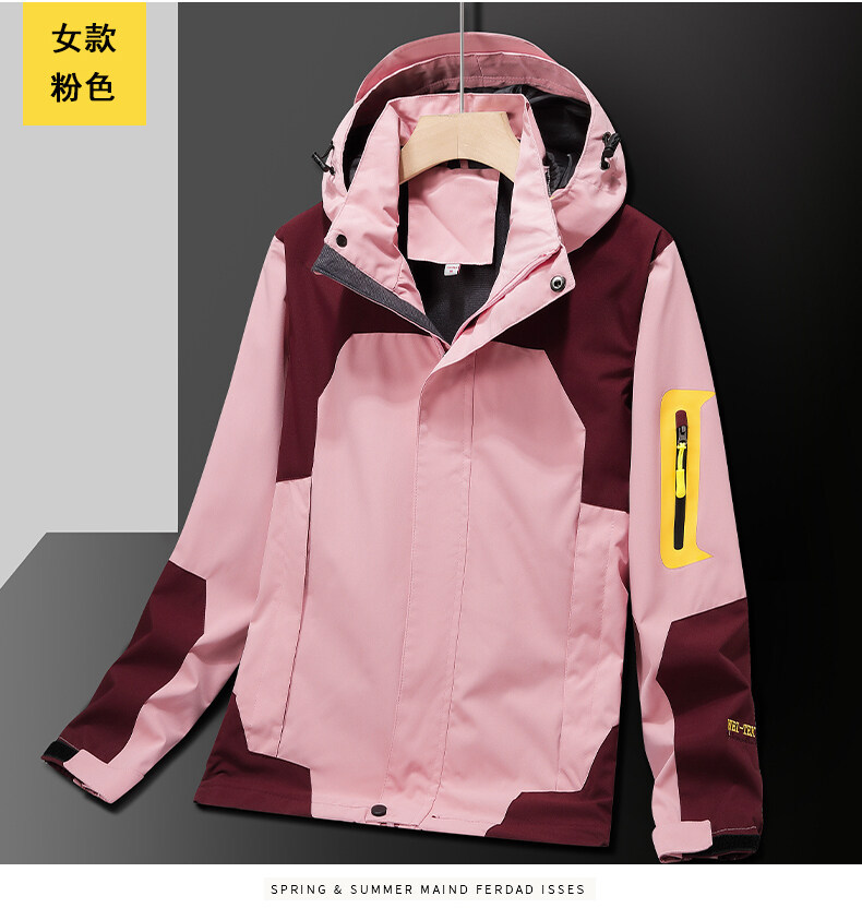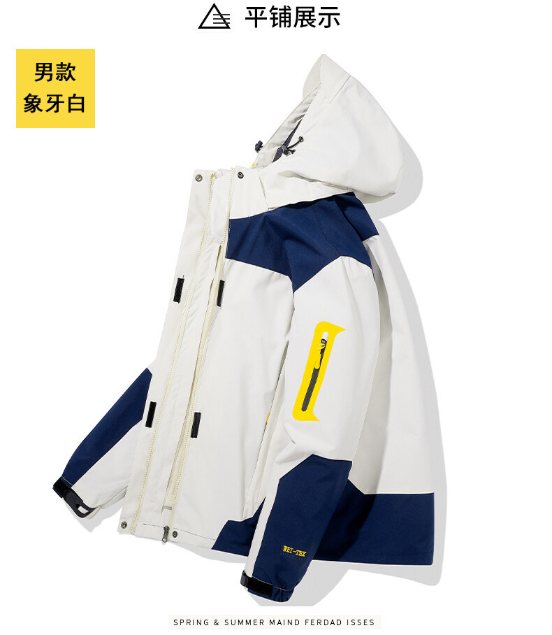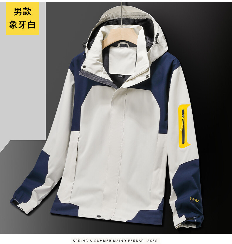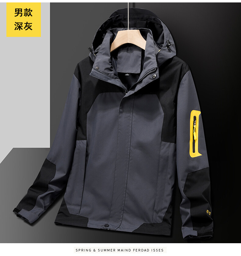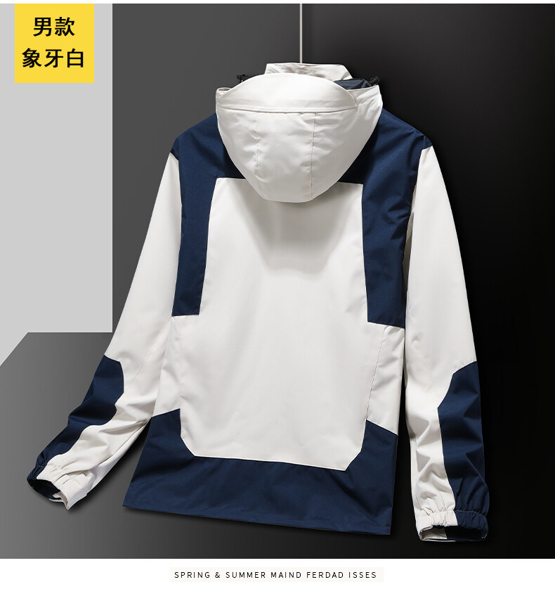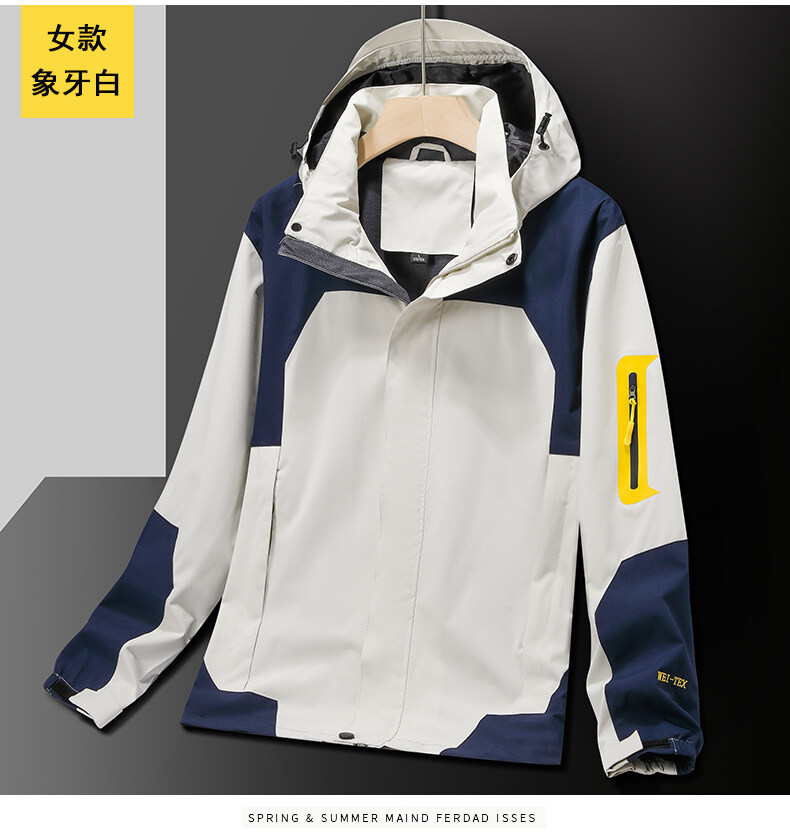 2023 새로운 봄 커플 싱글 레이어 충전 의류 남성 및 여성 후드 가디건 분리형 컬러 블록 재킷 야외 등산