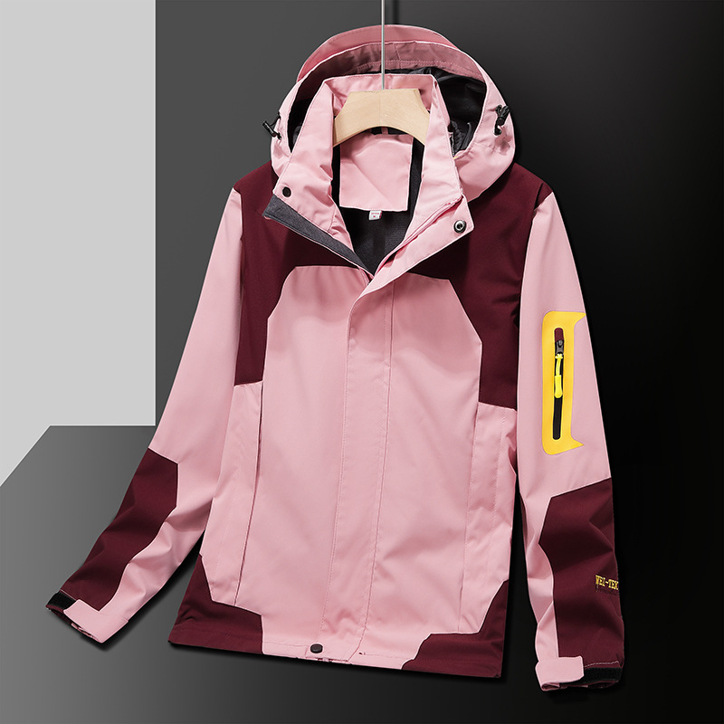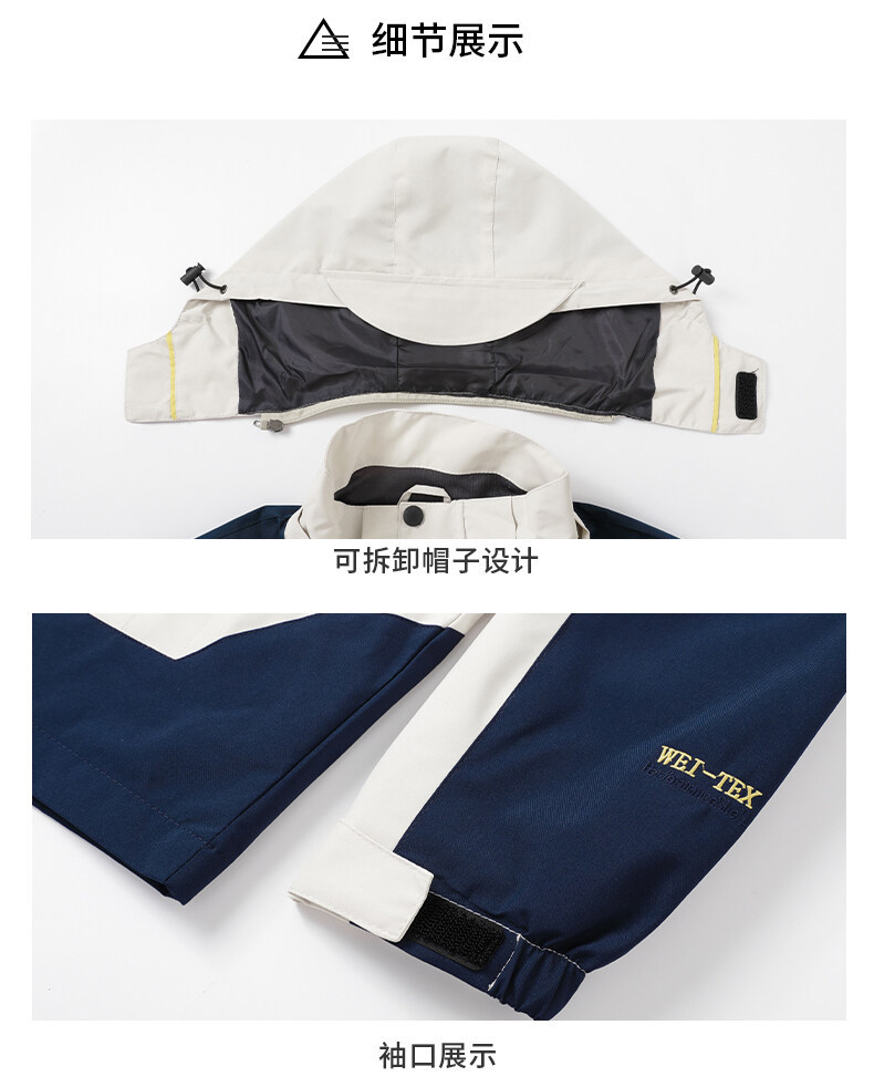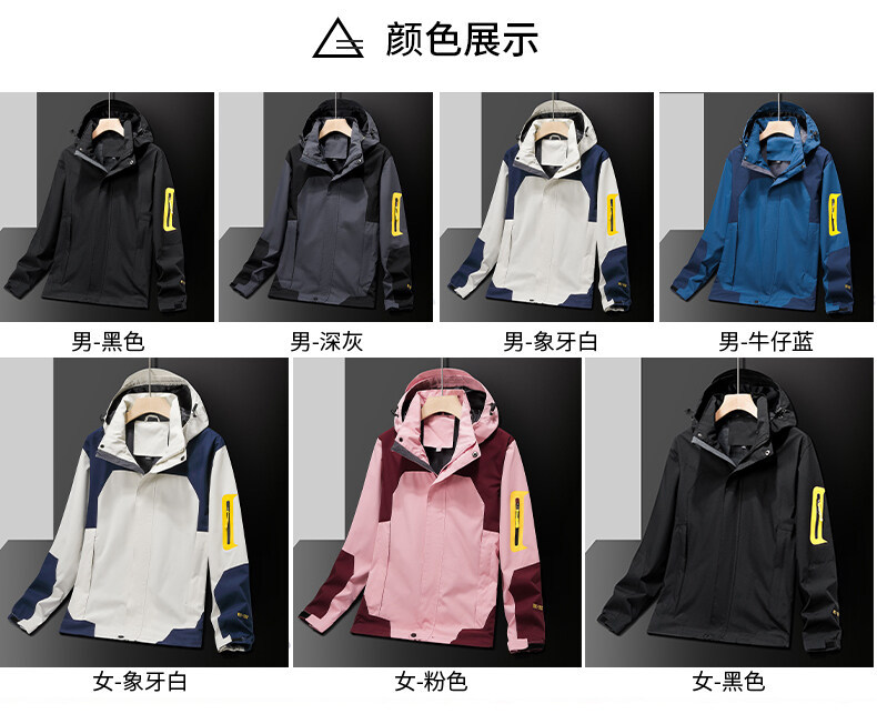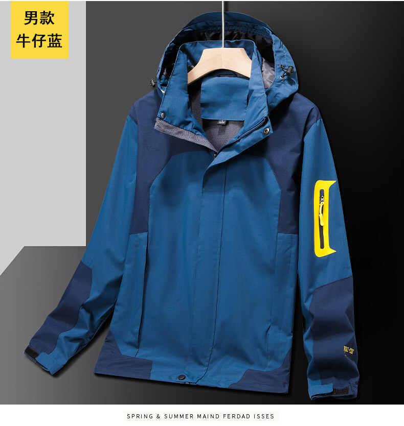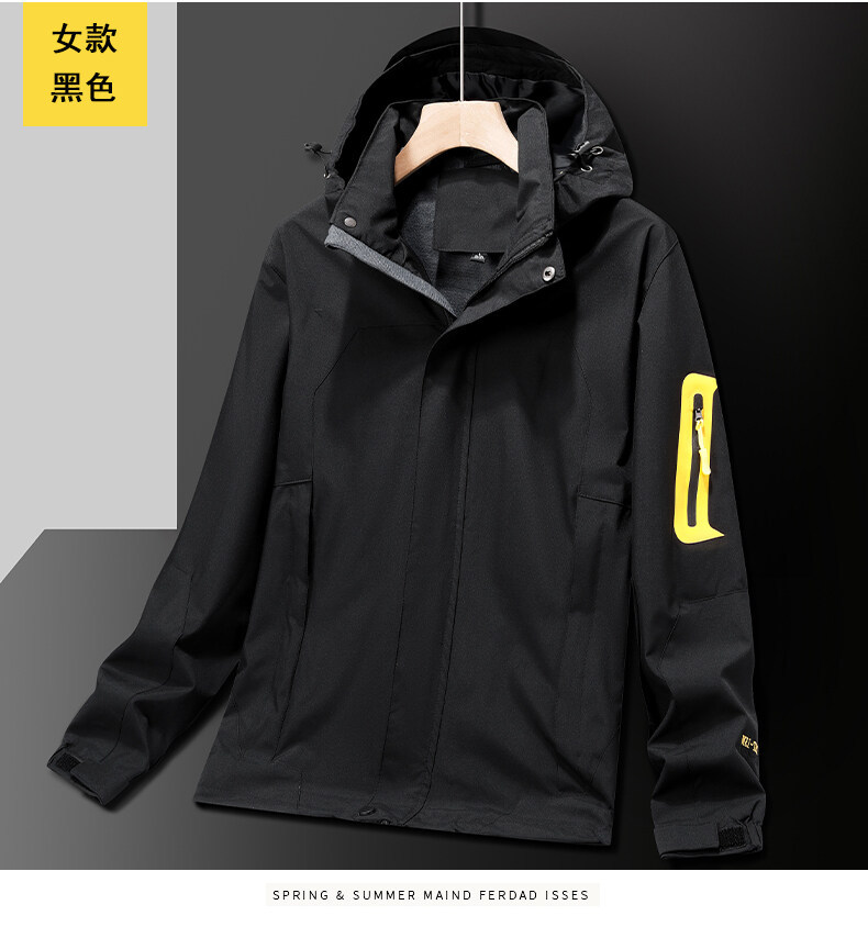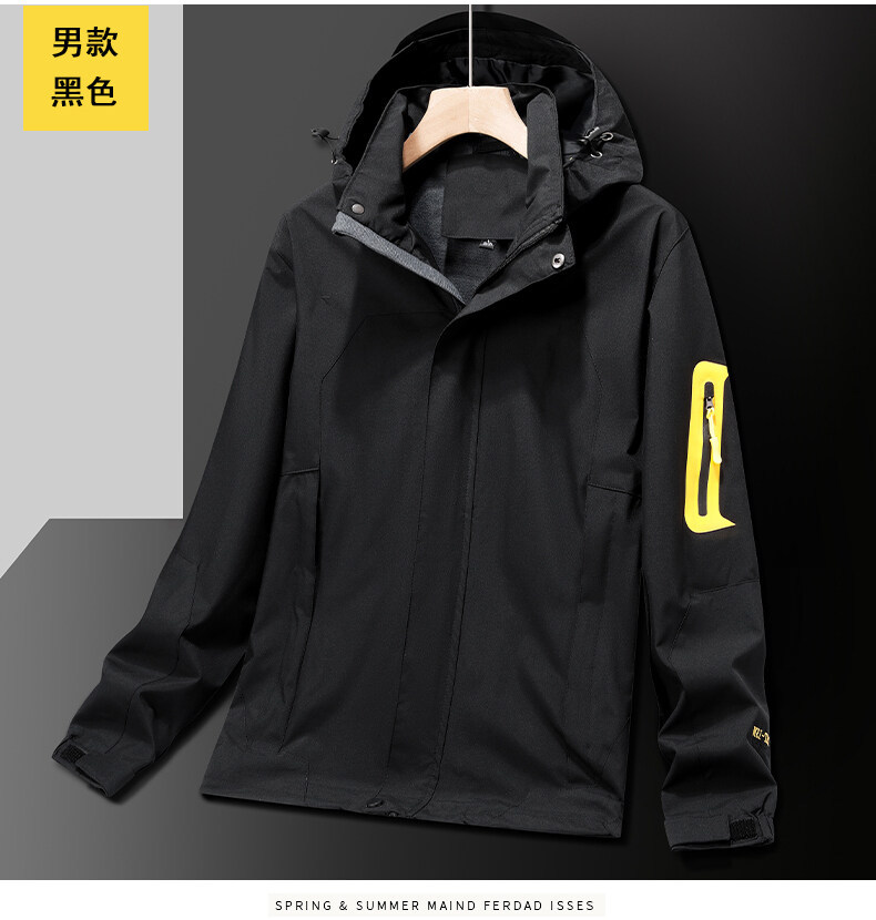 2023 새로운 봄 커플 싱글 레이어 충전 의류 남성 및 여성 후드 가디건 분리형 컬러 블록 재킷 야외 등산