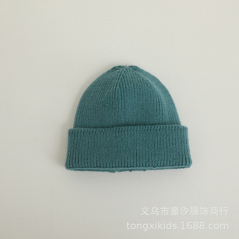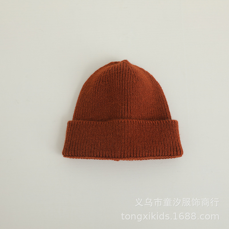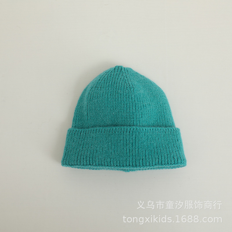 한국 스타일 어린이 니트 모자 패션 단색 간단한 유행 어린이 아기 단색 도파민 착용 양모 모자