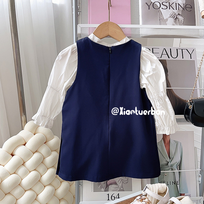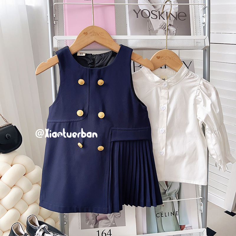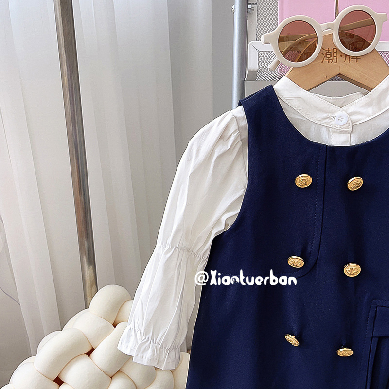 여아 아카데믹 스타일 원피스 2025 봄 가을 신상 여아 한국 스타일 민소매 원피스 레이스 셔츠 투피스 세트스토어 가기