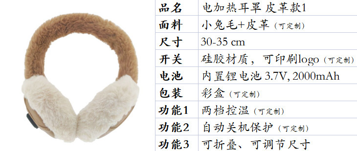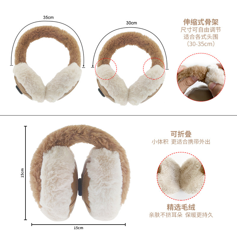 충전식 가열 귀마개, 접이식 겨울 따뜻한 귀마개, 가열 귀마개, 토끼털 사이클링 방한 및 동결 방지 귀마개