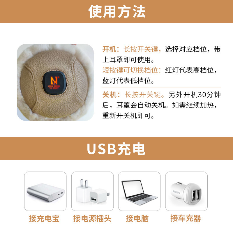 충전식 가열 귀마개, 접이식 겨울 따뜻한 귀마개, 가열 귀마개, 토끼털 사이클링 방한 및 동결 방지 귀마개스토어 가기