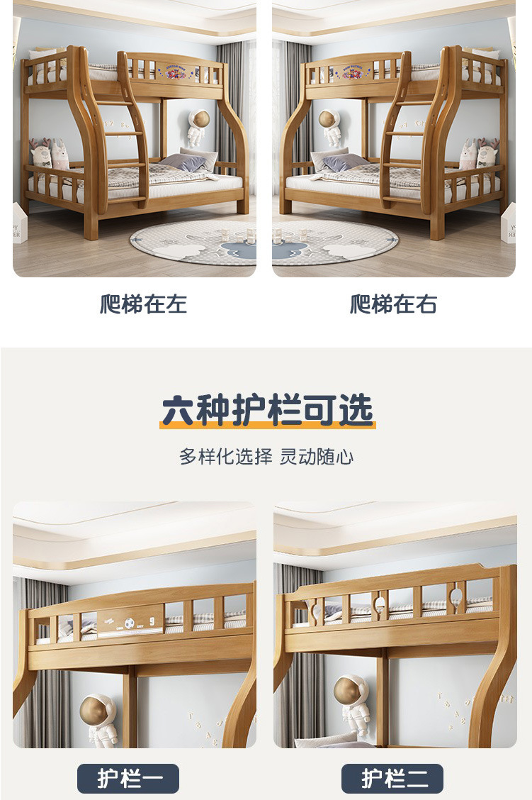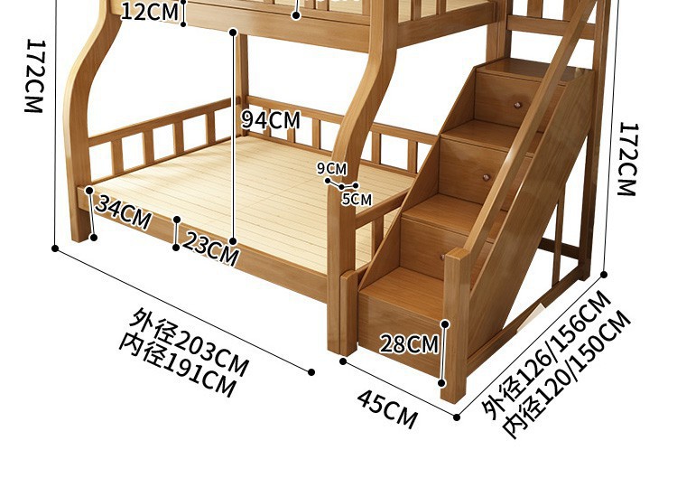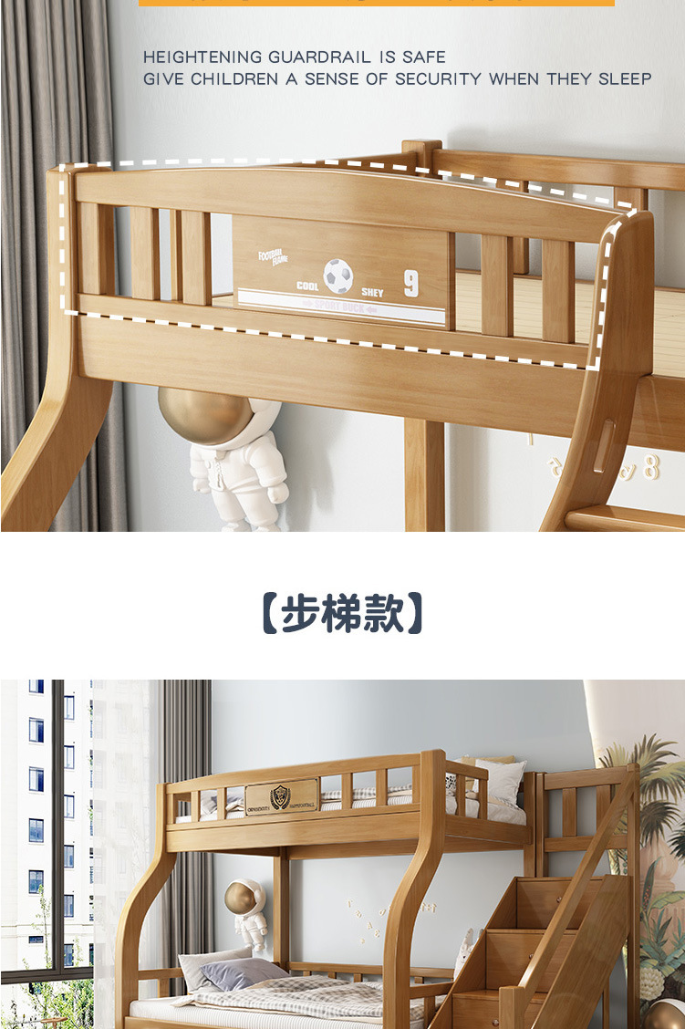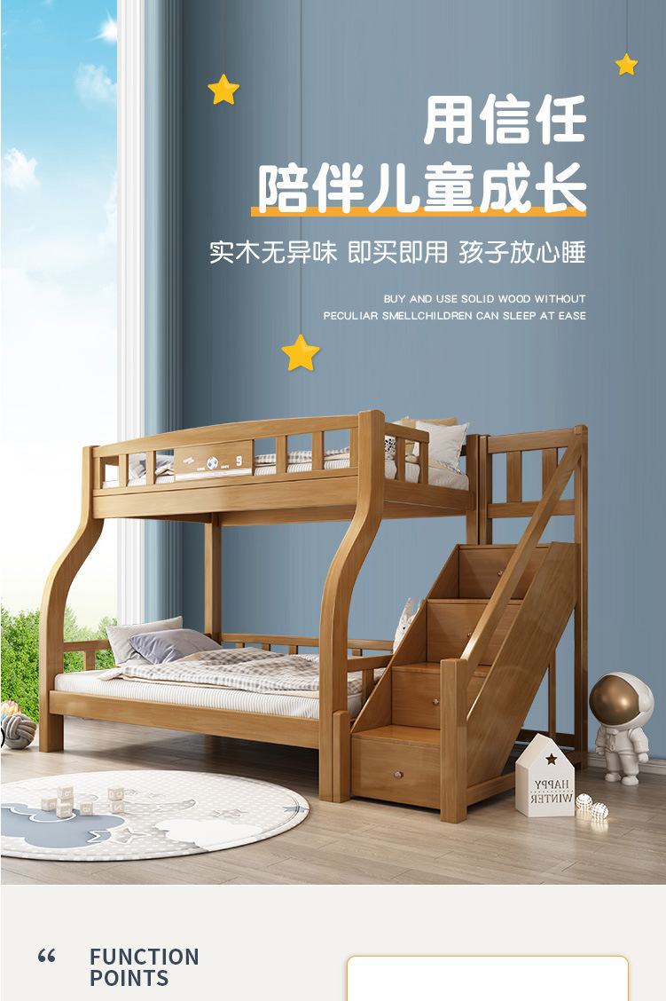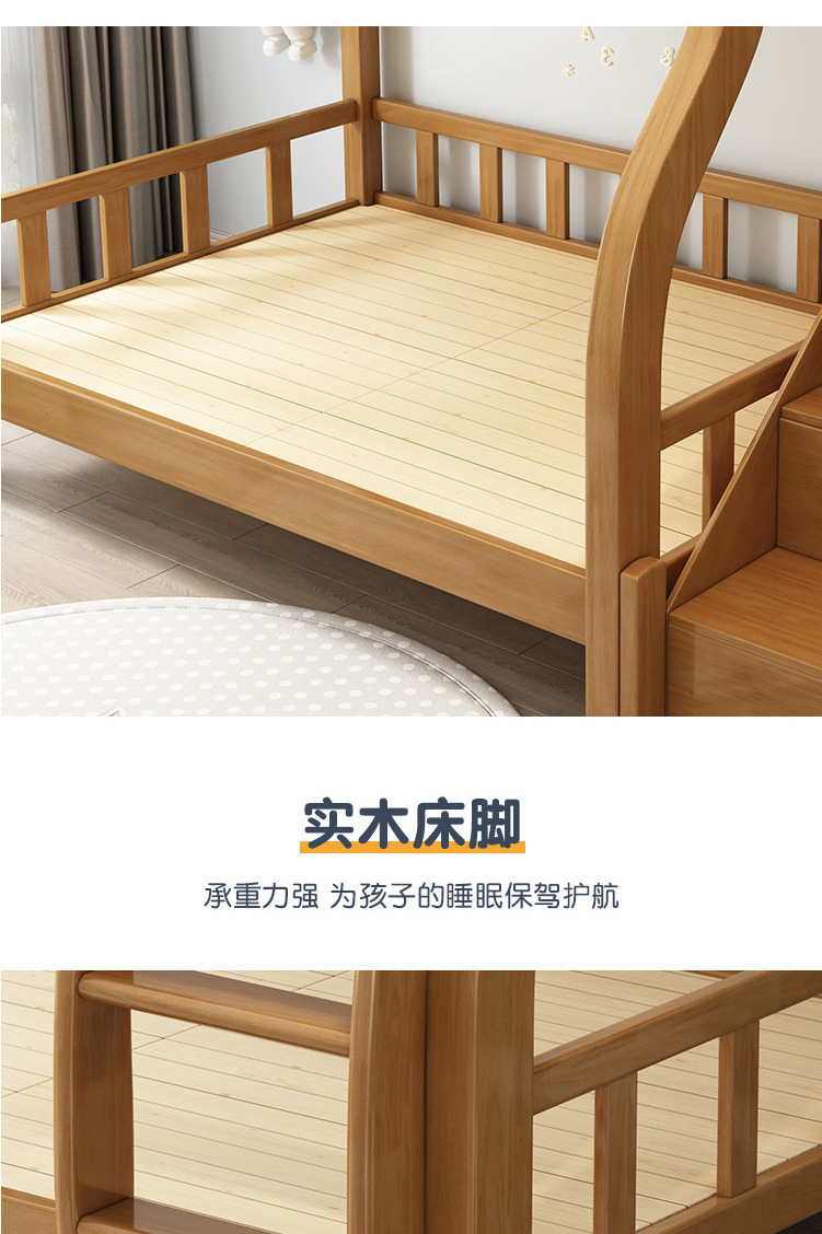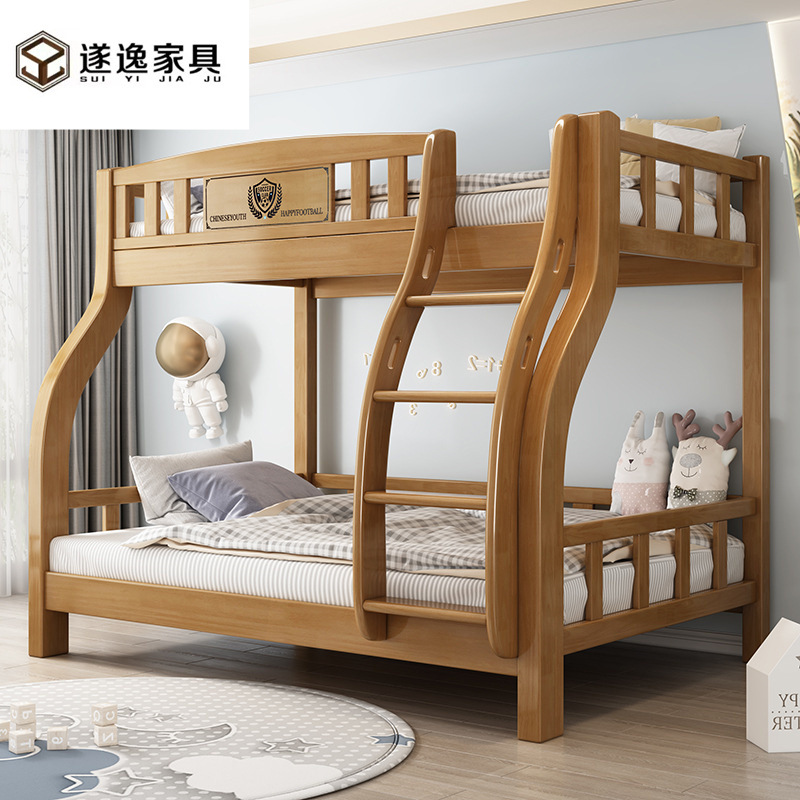 전체 단단한 나무 어린이 침대 더블 레이어 상단 및 하단 침대 현대 간단한 상단 및 하단 침대 조합 소형 아파트 높고 낮은 침대 어머니 침대