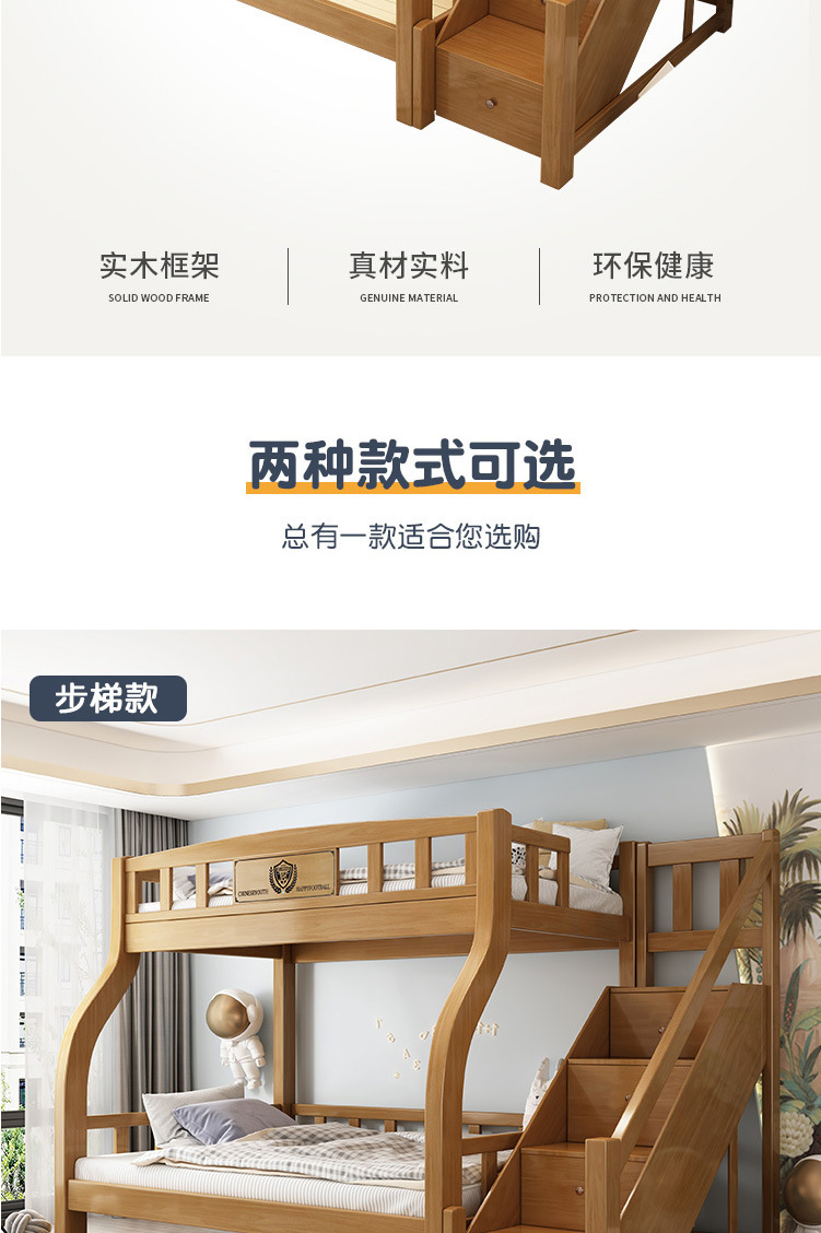 전체 단단한 나무 어린이 침대 더블 레이어 상단 및 하단 침대 현대 간단한 상단 및 하단 침대 조합 소형 아파트 높고 낮은 침대 어머니 침대스토어 가기
