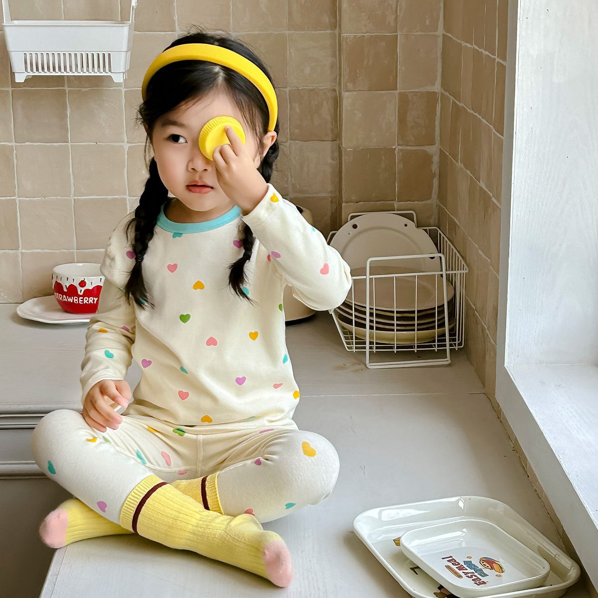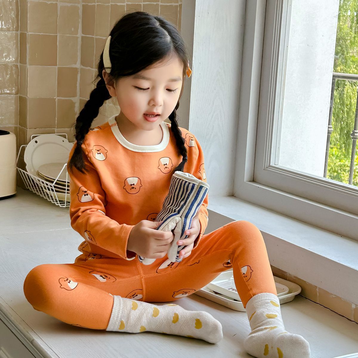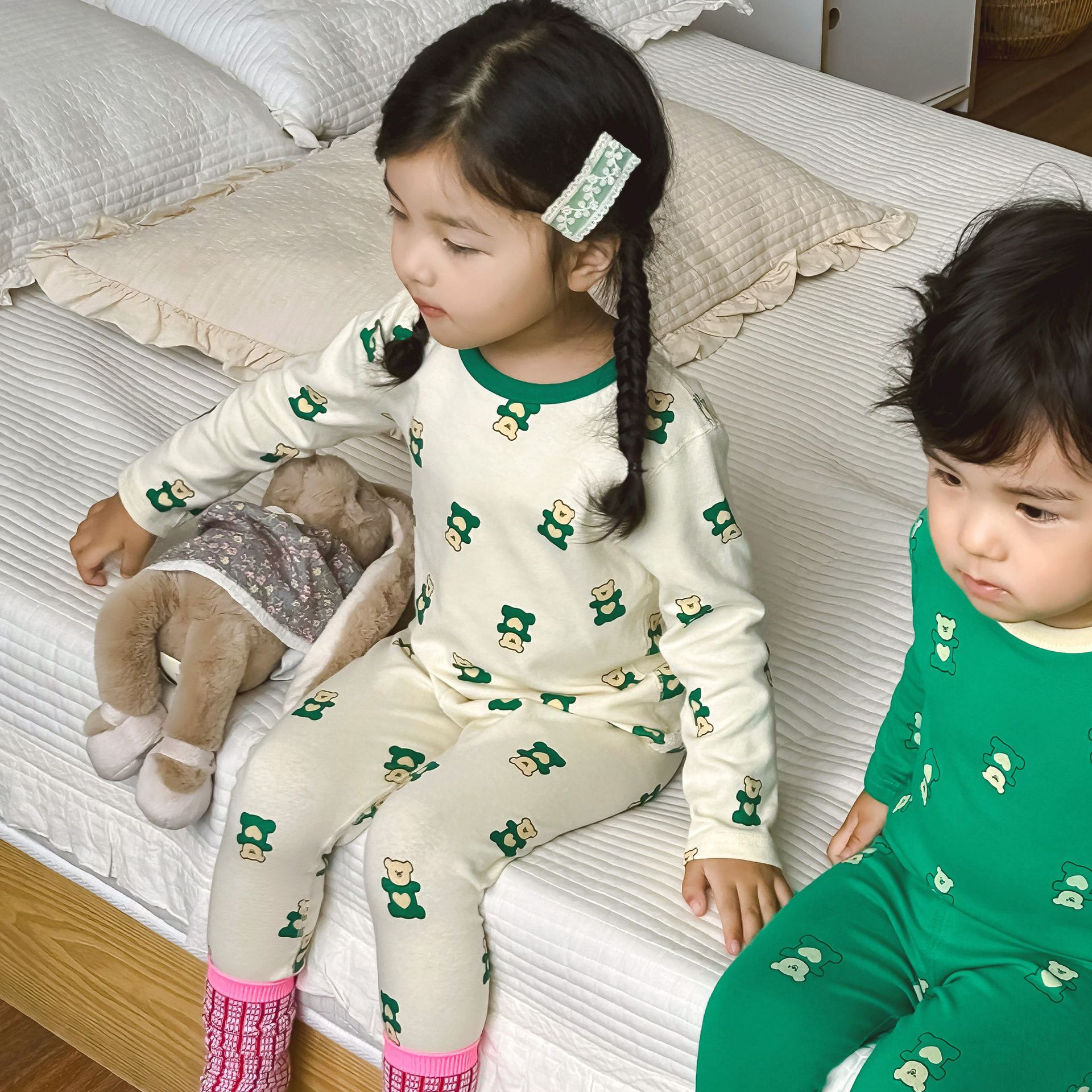 어린이 가을과 겨울 열 속옷 소년과 소녀 중소 어린이와 아기를위한 면화 잠옷 한국 뼈없는 가정 옷 세트