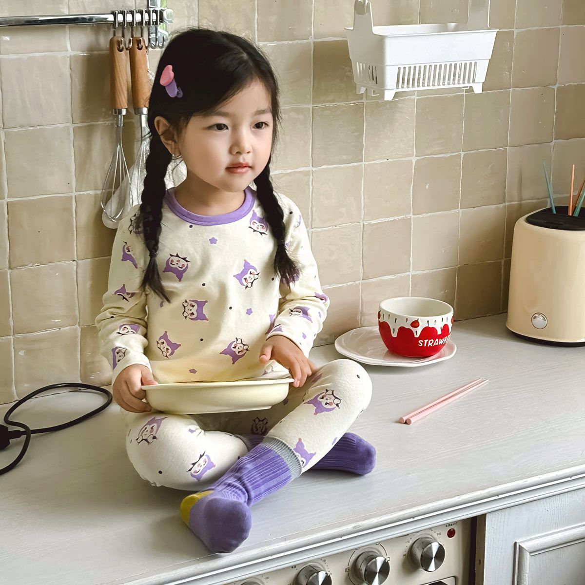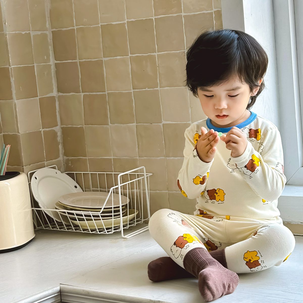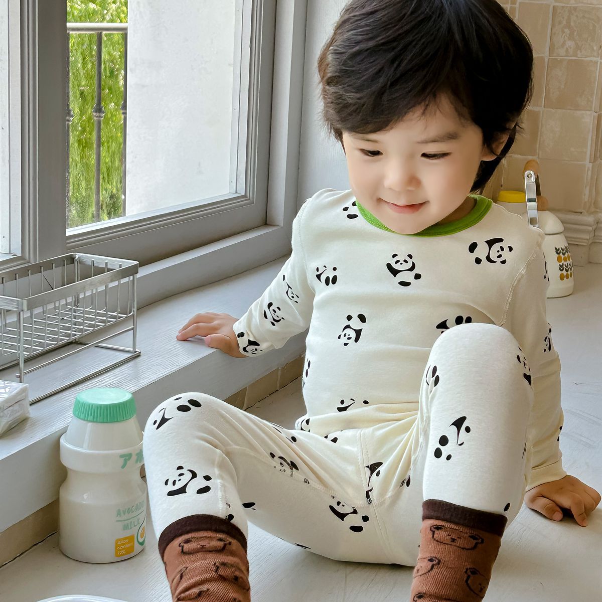어린이 가을과 겨울 열 속옷 소년과 소녀 중소 어린이와 아기를위한 면화 잠옷 한국 뼈없는 가정 옷 세트
