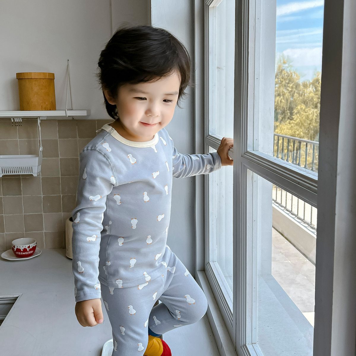 어린이 가을과 겨울 열 속옷 소년과 소녀 중소 어린이와 아기를위한 면화 잠옷 한국 뼈없는 가정 옷 세트스토어 가기