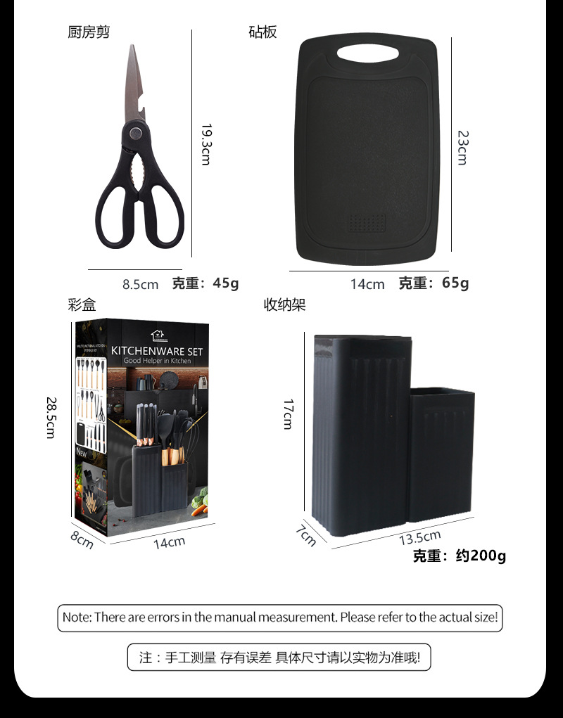 • 업그레이드된 주방용품 및 칼 19개 세트 1900g(이중 보관통 포함)