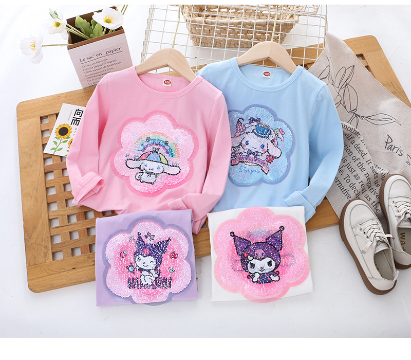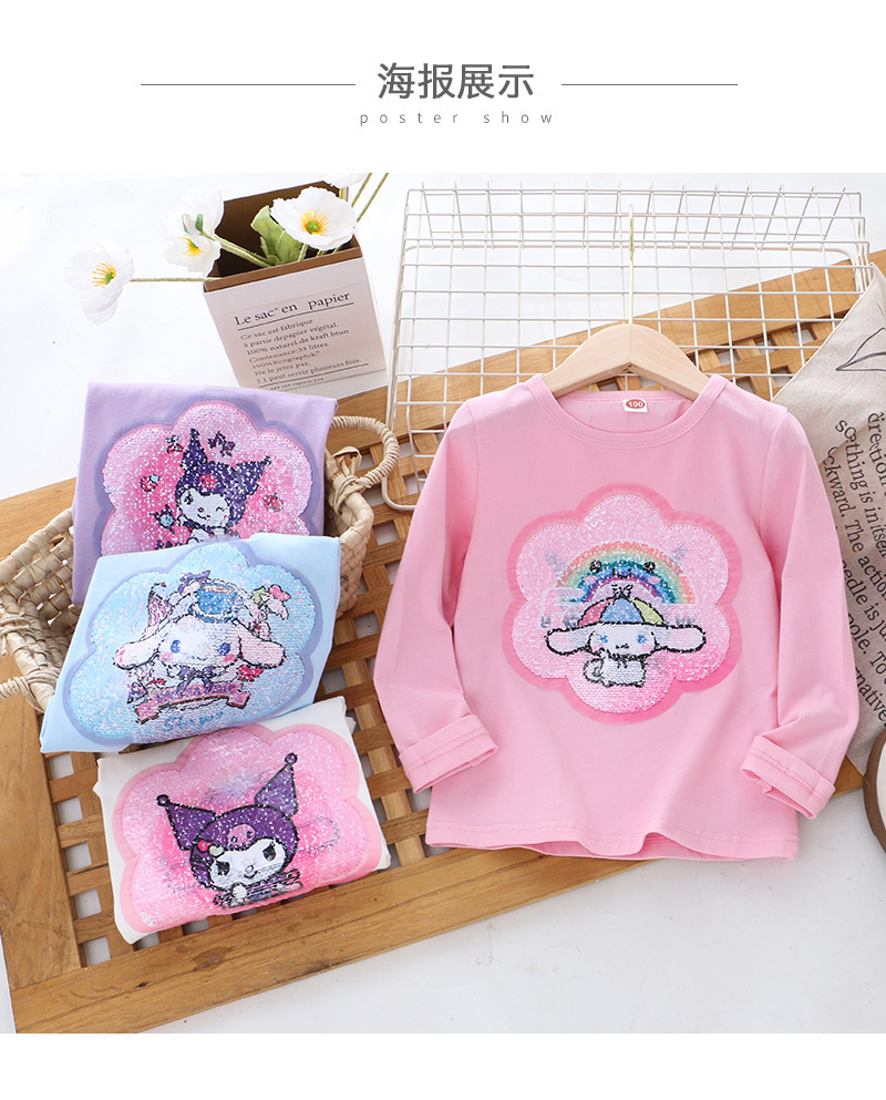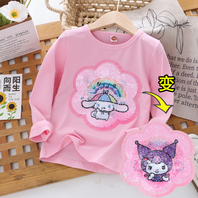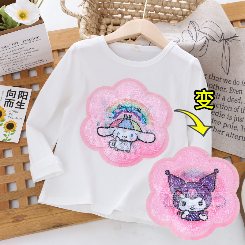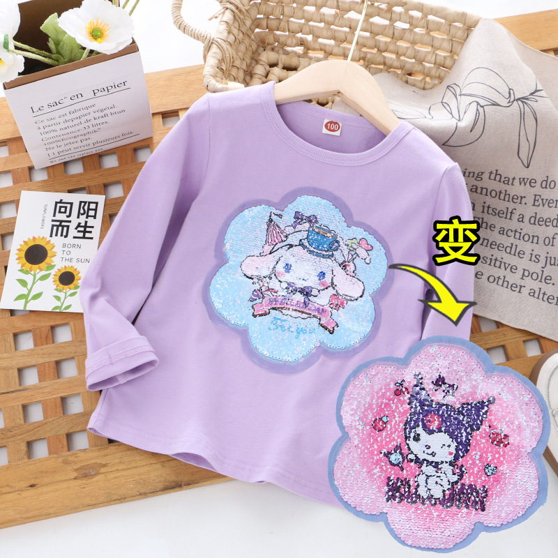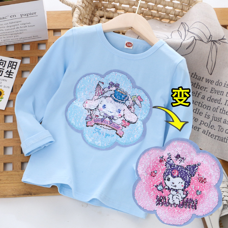 여아 반팔 티셔츠 2025 여름 신상 아동복 면 상의 여아 변색 스팽글 반팔 티셔츠