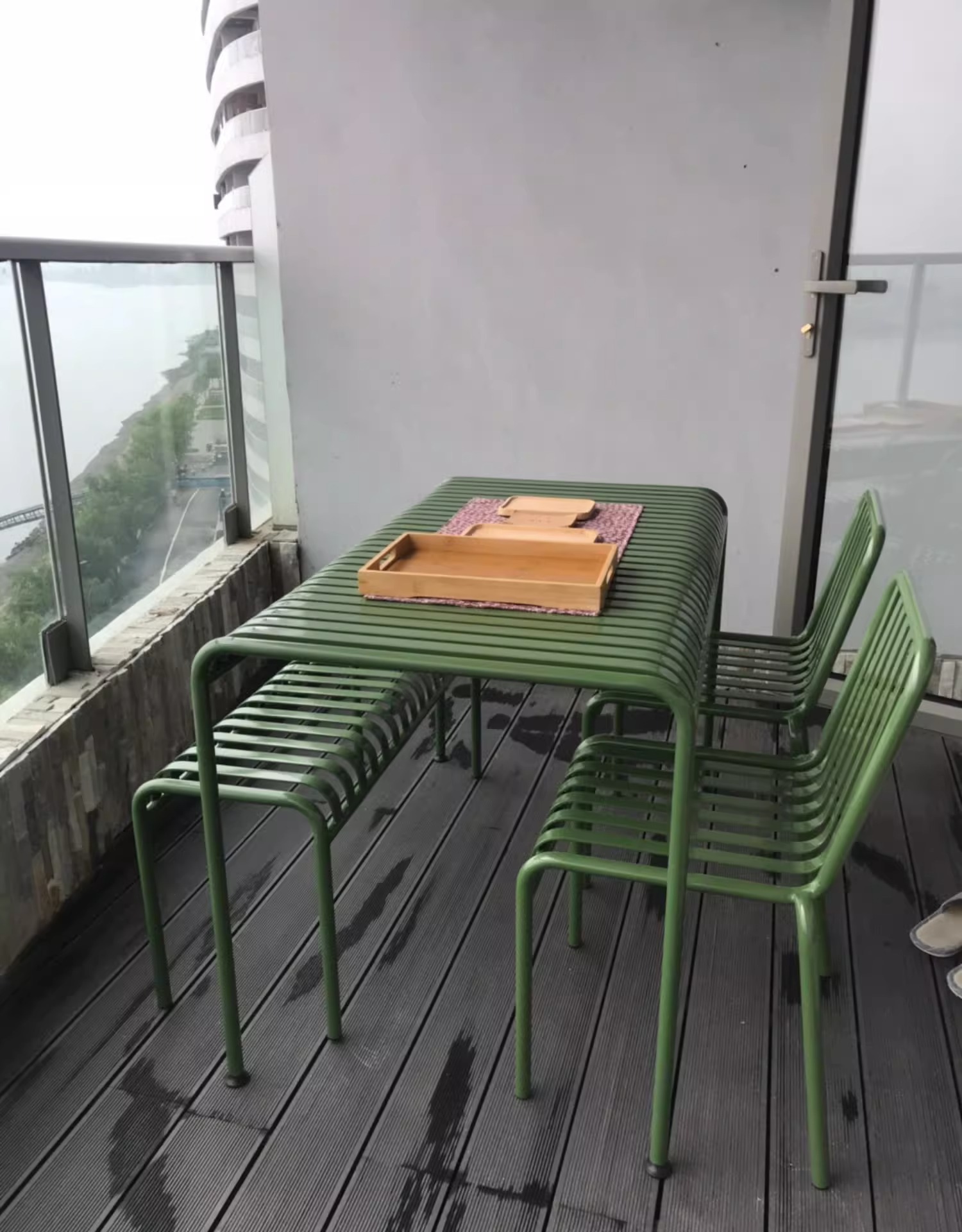 야외 테이블과 의자 세트 야외 안뜰 연철 레저 좌석 발코니 바베큐 테이블 식탁 공원 철 테이블 티 테이블