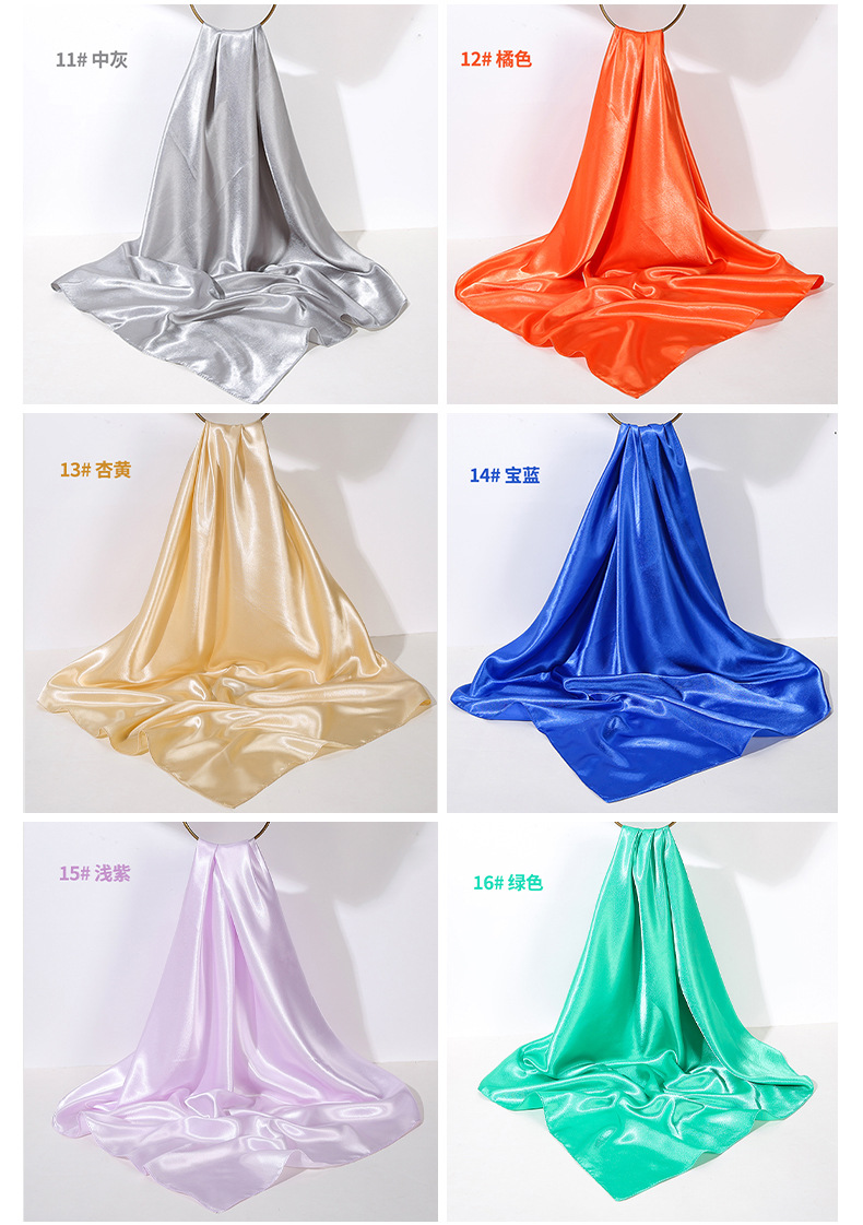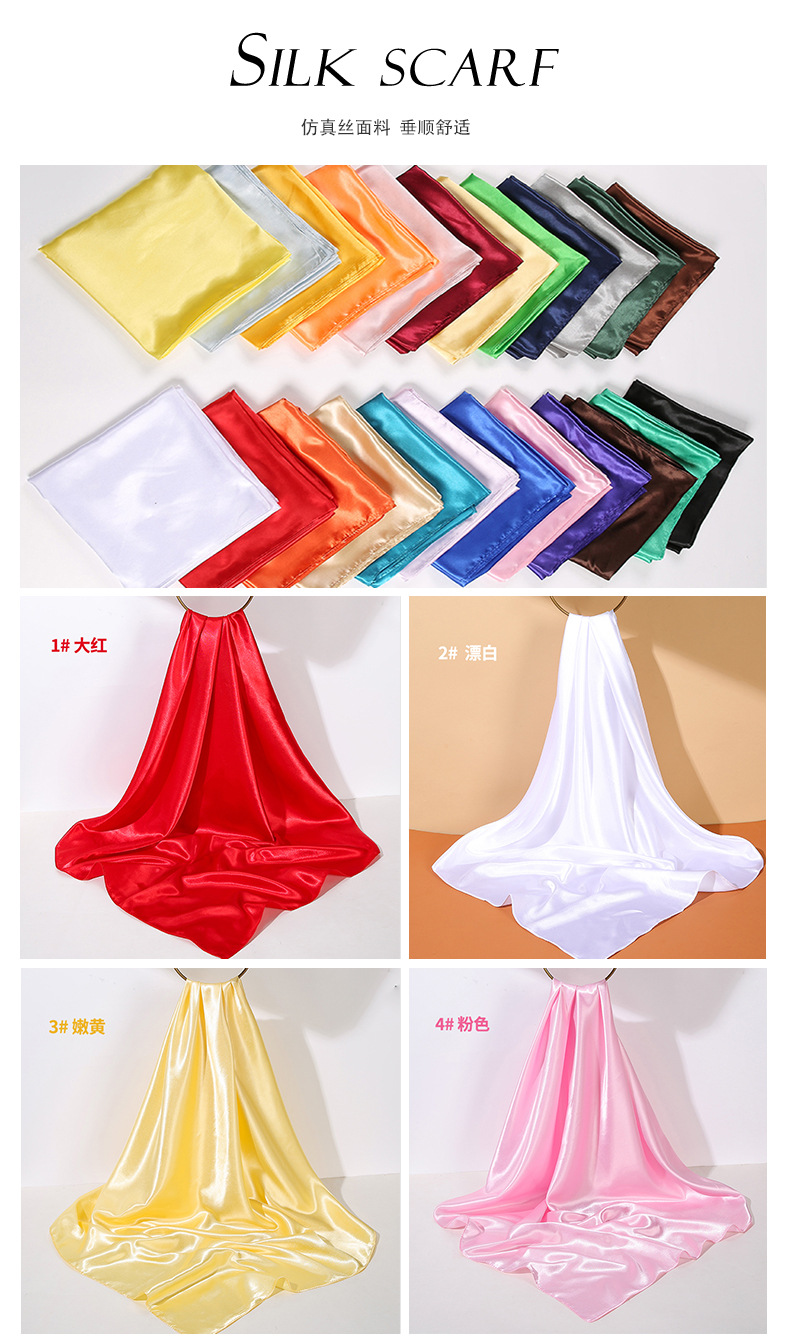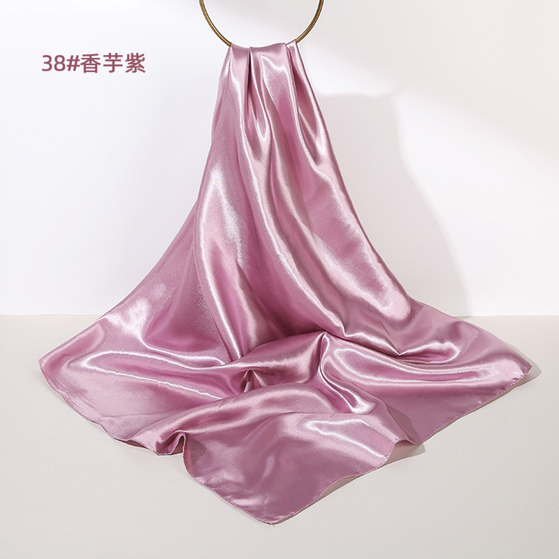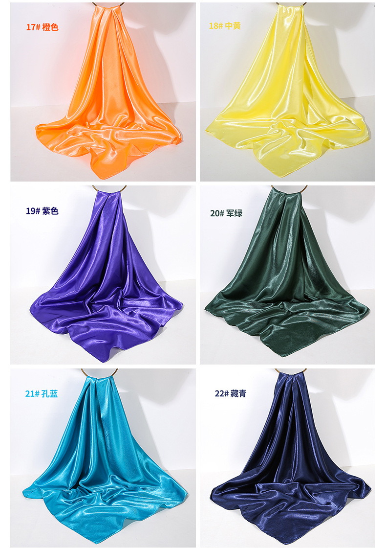 90cm 솔리드 컬러 실크 스카프 단색 대형 사각형 스카프 모조 실크 차양 밝은 새틴 새틴 스퀘어 스카프 목도리 재고 있음